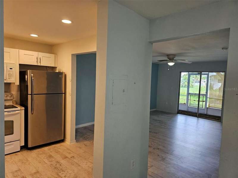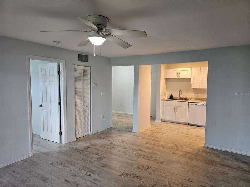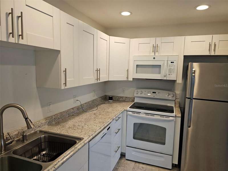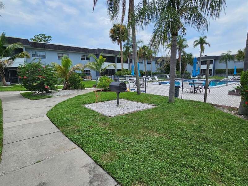 Welcome to this updated first-floor 1 bedroom, 1 bath condo that's ready for you to move right in! Inside, you'll find modern vinyl plank flooring throughout and a beautifully refreshed kitchen with soft-close drawers, refrigerator, range, microwave, and dishwasher. The spacious bedroom offers a walk-in closet, and the bathroom features a convenient shower. At the front entrance, a versatile bonus space can serve as a home office, dining room, den, or even a cozy guest room. Out back, relax on the small screened patio that overlooks a bit of green space. This friendly community offers a sparkling swimming pool just steps from the building, plus a basketball hoop for outdoor fun. Shopping, dining, and everyday conveniences are right around the corner, and the area's beautiful beaches are just a short drive away.