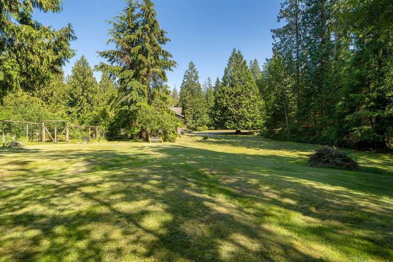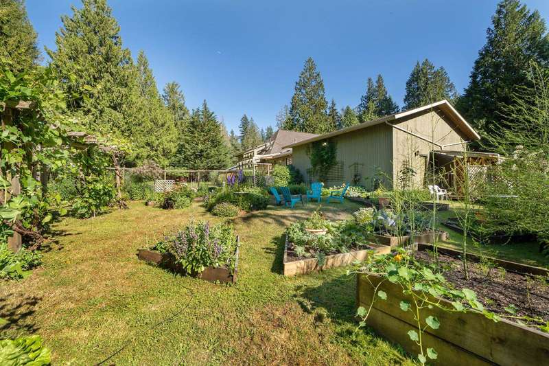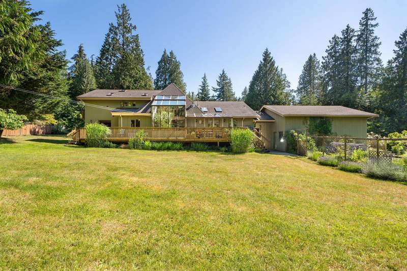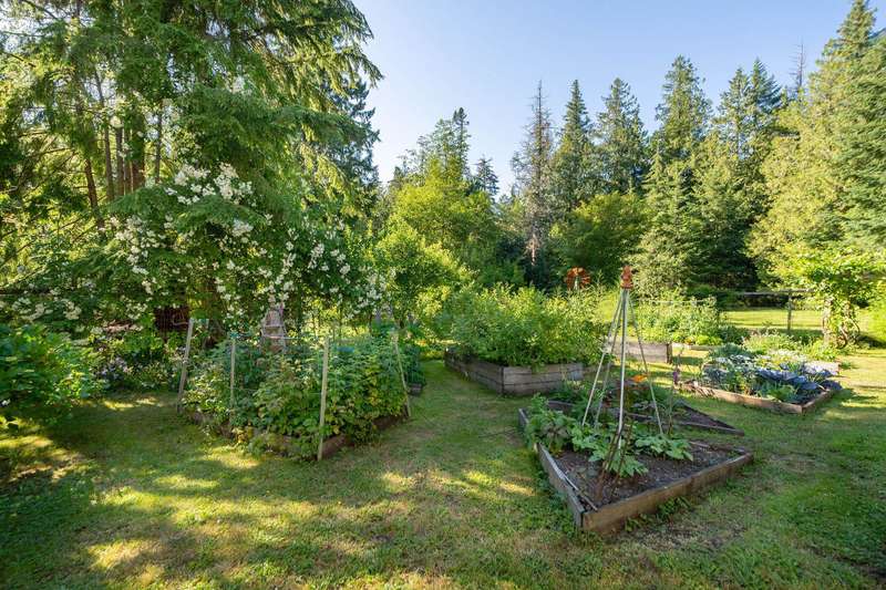 These 3.24 FLAT ACRES offer a RARE OPPORTUNITY to live your dream rural Bowen Island lifestyle with a beautiful family home, expansive garden, and oversize 2-car garage. If good sun exposure is at the top of your list you’ll love living here. Fruit trees, berries, flowering shrubs, and more, thrive in the garden. The meticulously maintained home features a 22’ wall of south-facing, triple pane windows, plus a family room w/ solarium glass. The upper floor is devoted to the primary suite with a loft open to below. Enhancing the indoor/outdoor lifestyle are sizable decks front & rear, with pastoral views of the land & surrounding forest. This property offers functionality for those seeking a serene country retreat with flexible options including ample space for a detached secondary dwelling.