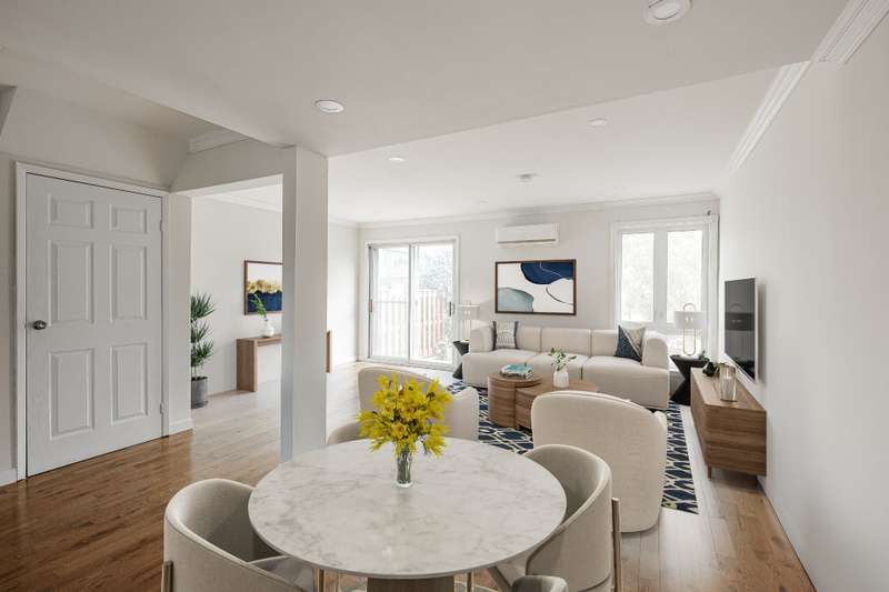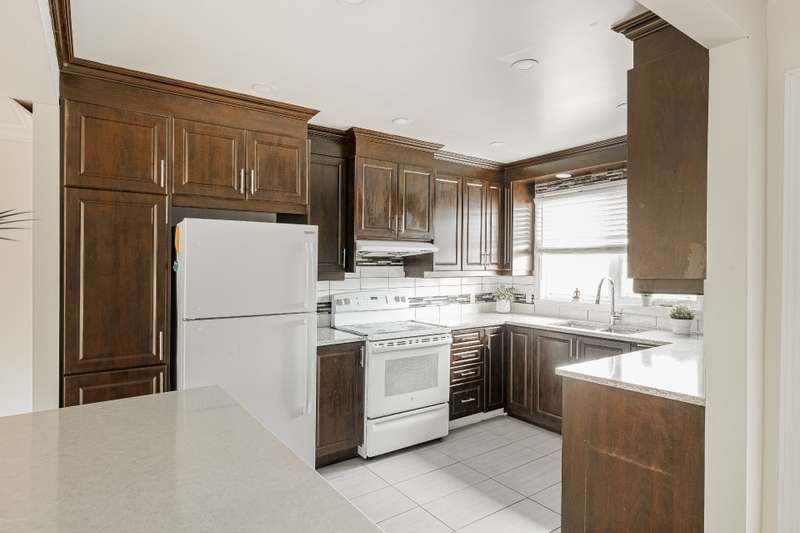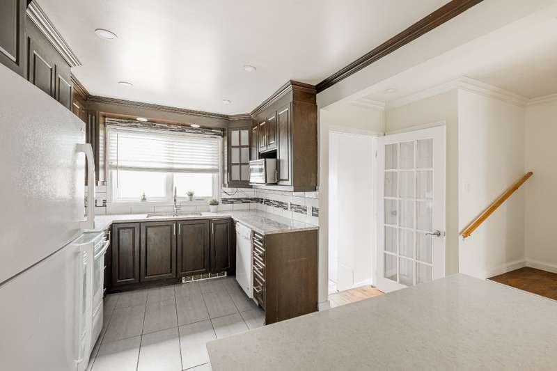 Beautifully maintained 4-bedroom, 3 full-bath home in desirable DDO East! Enjoy an open-concept, renovated kitchen with quartz countertops, hardwood floors on the main level, and two updated full bathrooms--plus a third full bath conveniently located on the main floor. The finished basement includes a practical kitchenette. Private driveway for 2 cars plus garage. Low condo fees and a well-managed syndicate. Prime location near the REM, highways 13 & 40, schools, shops, and restaurants--ideal for families and commuters!