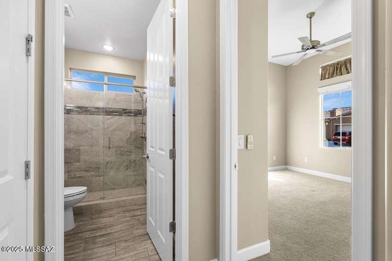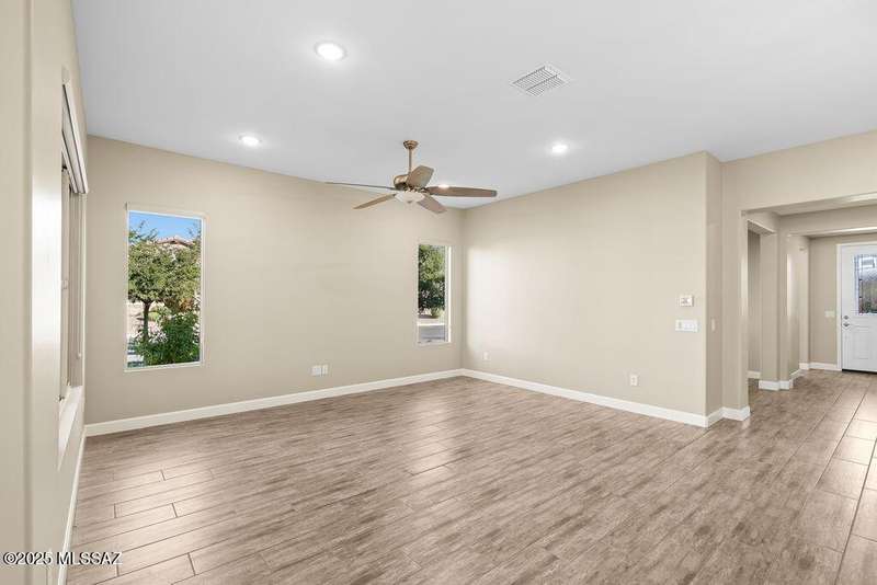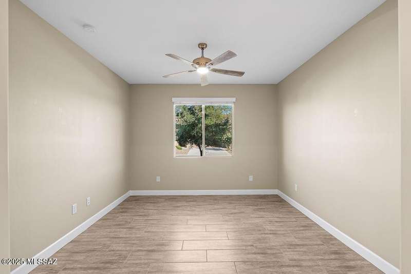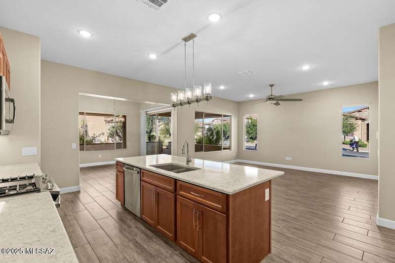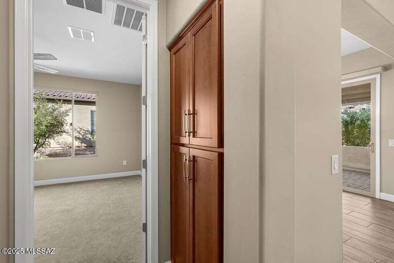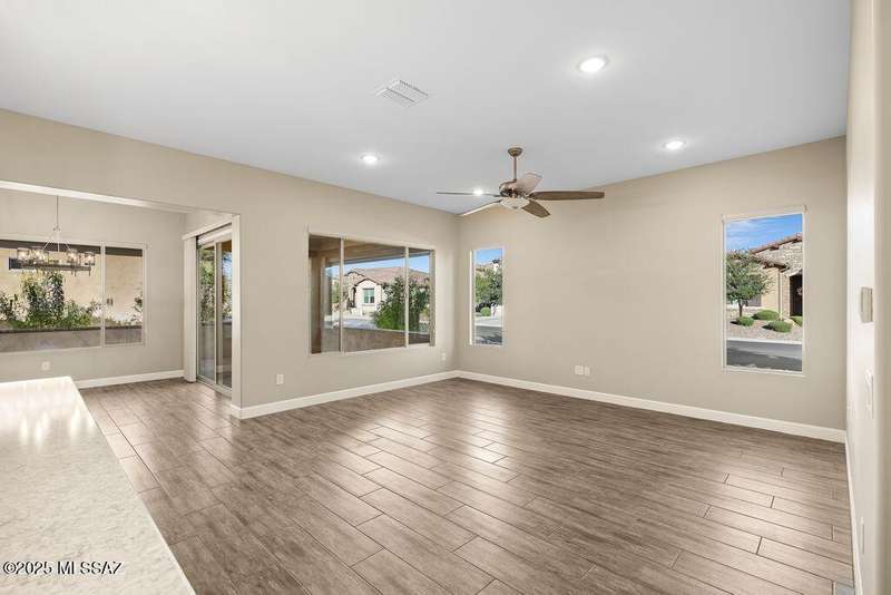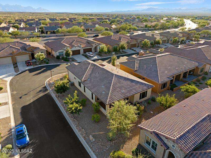 Exceptionally Rare Opportunity to own 1 of only 4 detached Single Family Villas in Saddlebrooke Ranch. No shared walls, while enjoying all of the convenience and luxury of the Villas with all landscaping, irrigation, and all exterior maintenance, including the roof, maintained by the HOA. This beautiful 2020 built, 2bedroom 2bathroom+large Den, 1,808 sq ft home per Assessor (Builder shows 1,776) includes gorgeous quartz countertops throughout, Alder wood cabinetry, pull-out shelving, beautiful porcelain wood-like tile flooring, luxurious epoxy finished garage, covered patio upgraded with pavers and partial screening, Rinnai Tankless Water Heater, water softener and Ultima treated water system. Too many upgrades to list, see documents. Make this sought after home your own before it's gone.