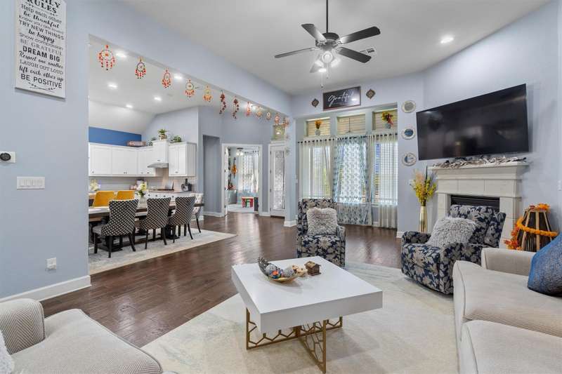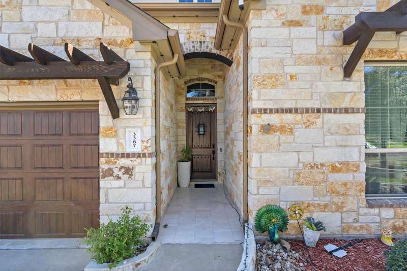 Welcome to 3367 Vazquez Place, a stunning and impeccably maintained home in the sought-after Paloma Lake community! Built in 2018 and barely lived in, this single-story home feels like new with soaring ceilings, abundant natural light, and a flowing open floor plan that’s perfect for entertaining or everyday family life. The chef’s kitchen features quartz counters, a large island, stainless-steel appliances, and crisp white cabinetry—all open to a spacious living area with high coffered ceilings and a cozy gas-log fireplace. The primary suite offers a peaceful retreat with a luxurious spa-style bathroom featuring a walk-in shower with dual showerheads, a soaking tub, and an oversized walk-in closet. Each secondary bedroom is generously sized, and the home also includes a flexible bonus room ideal for a home office or playroom. Step outside to the screened-in back porch, a perfect spot for relaxing or entertaining year-round, overlooking a private fenced backyard with no rear neighbors. Enjoy Paloma Lake’s resort-style amenities—including walking trails, fishing lake, pool, parks, and playgrounds—all within minutes of top-rated Round Rock ISD schools, major employers, and shopping.
