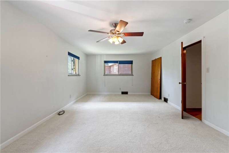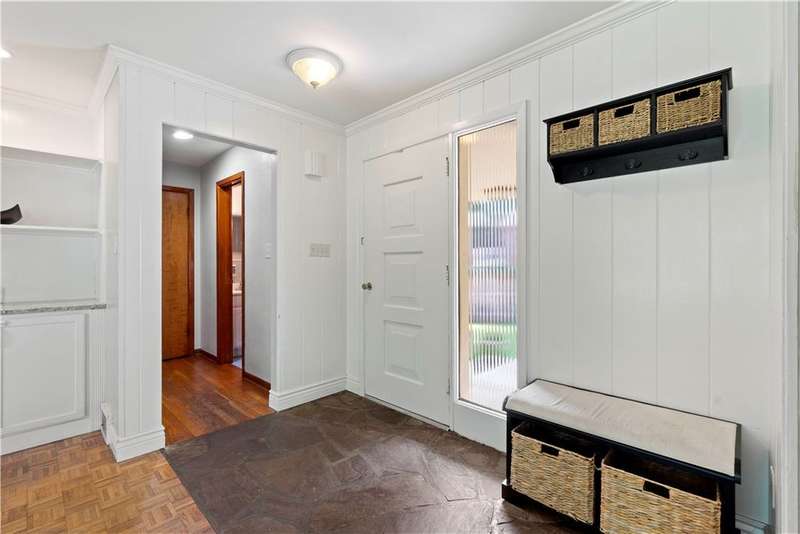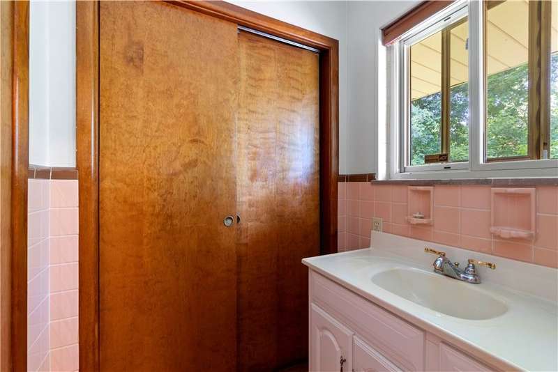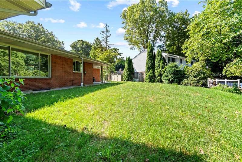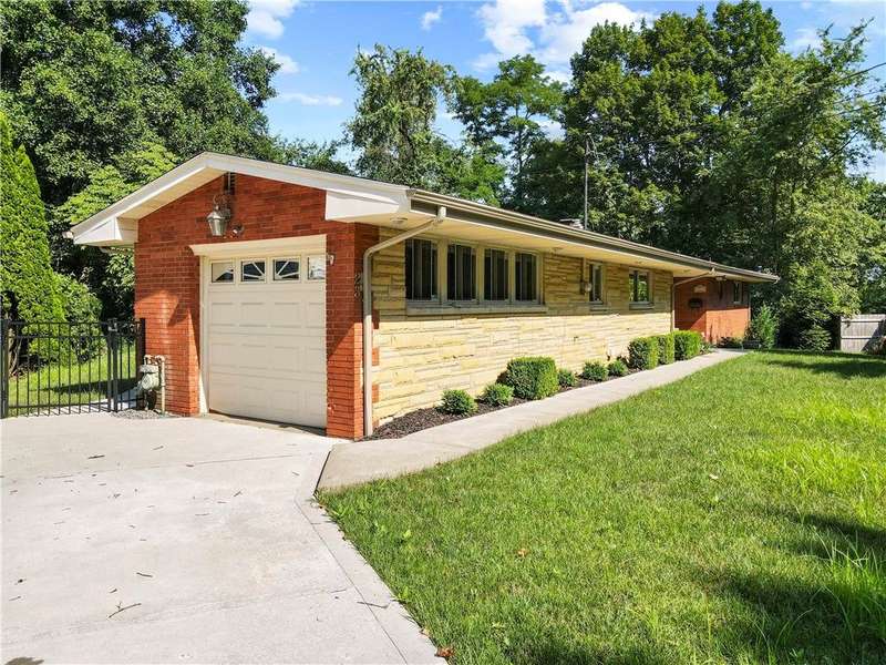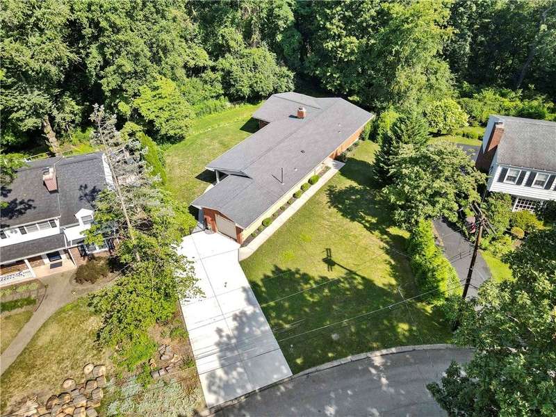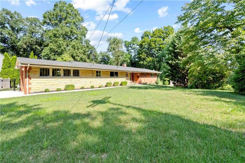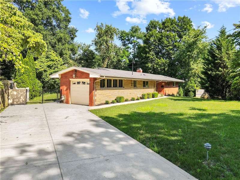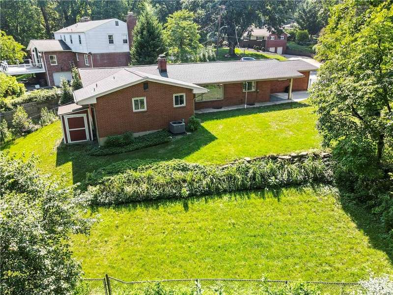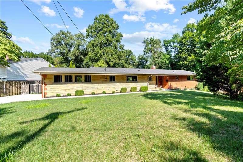 Brick & Stone Ranch offering true 1 level living with 2 spacious bedrooms & 2 full baths, nestled in a sought-after neighborhood enclave. Don't miss the chance to own this rare gem blending location, privacy & potential, a ranch home like this doesn't come around often! Set on a lush-sprawling lawn backing to Falling Springs Nature Park, you'll enjoy privacy, tranquility & wooded views. Inside open concept living & dining area is filled with natural light from a large picture window overlooking the the patio & yard, featuring a stone fireplace w/gas logs, flanked by built-in bookcases & classic wood parquet floors. This home has been updated with new concrete driveway & walkway, new HVAC, hot water tank & roof, ensuring peace of mind for years to come. These major updates give you the opportunity to add your personal touch to the retro kitchen & baths. Equipped laundry/mudroom area with storage next to the kitchen. Basement access from the garage has room for workshop, gym or storage.