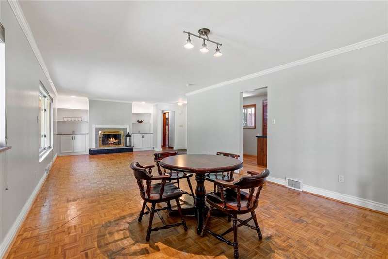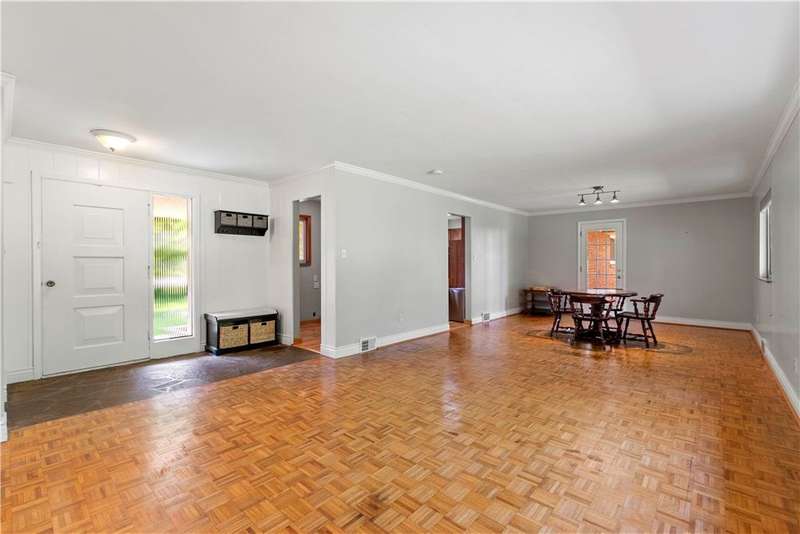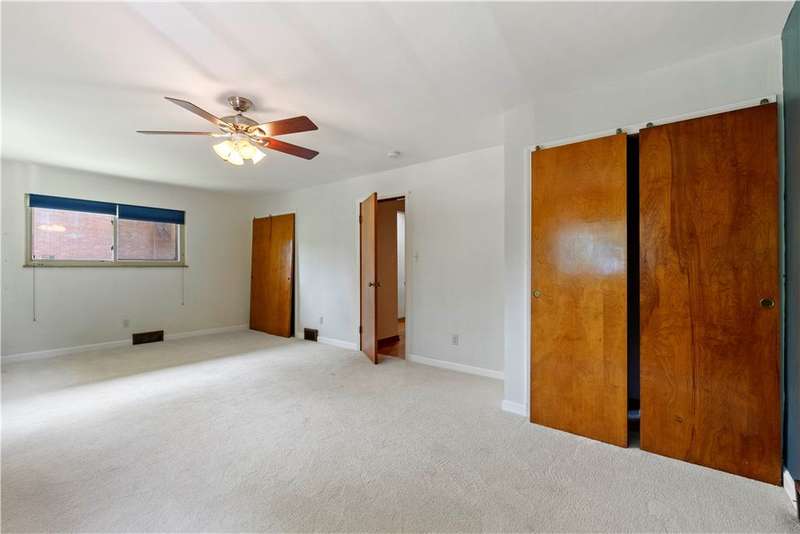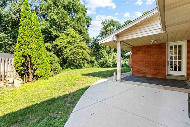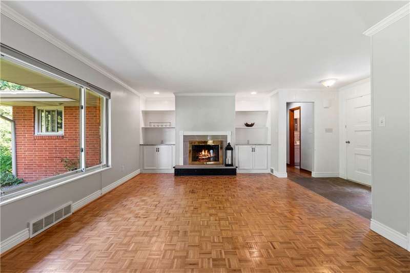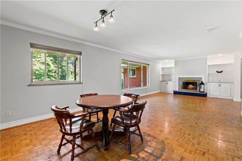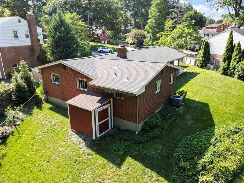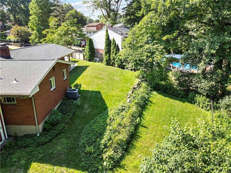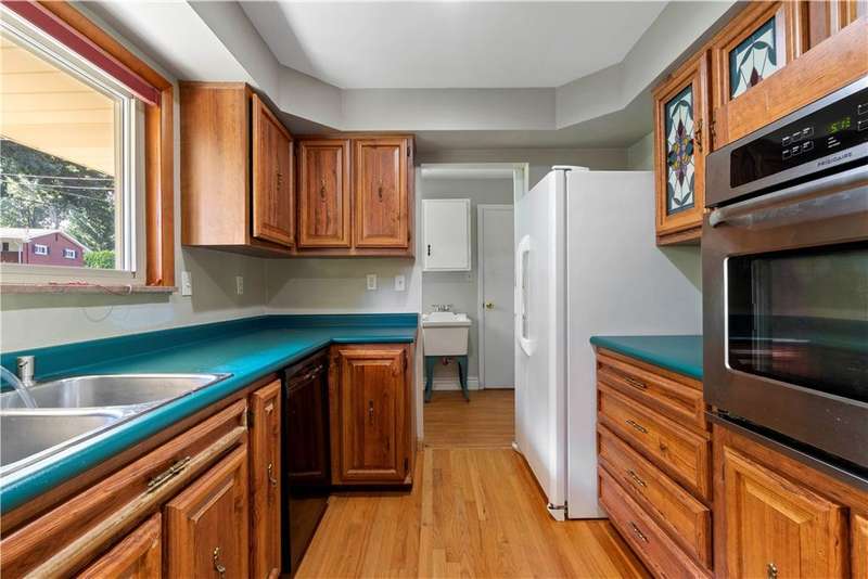 Brick & Stone Ranch offering true 1 level living with 2 spacious bedrooms & 2 full baths, nestled in a sought-after neighborhood enclave. Don't miss the chance to own this rare gem blending location, privacy & potential, a ranch home like this doesn't come around often! Set on a lush-sprawling lawn backing to Falling Springs Nature Park, you'll enjoy privacy, tranquility & wooded views. Inside open concept living & dining area is filled with natural light from a large picture window overlooking the the patio & yard, featuring a stone fireplace w/gas logs, flanked by built-in bookcases & classic wood parquet floors. This home has been updated with new concrete driveway & walkway, new HVAC, hot water tank & roof, ensuring peace of mind for years to come. These major updates give you the opportunity to add your personal touch to the retro kitchen & baths. Equipped laundry/mudroom area with storage next to the kitchen. Basement access from the garage has room for workshop, gym or storage.