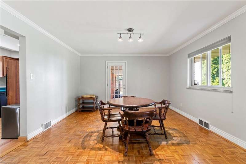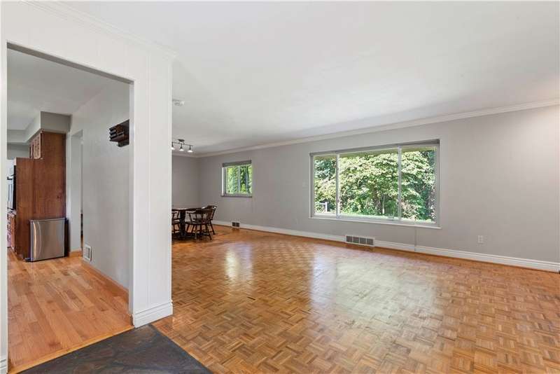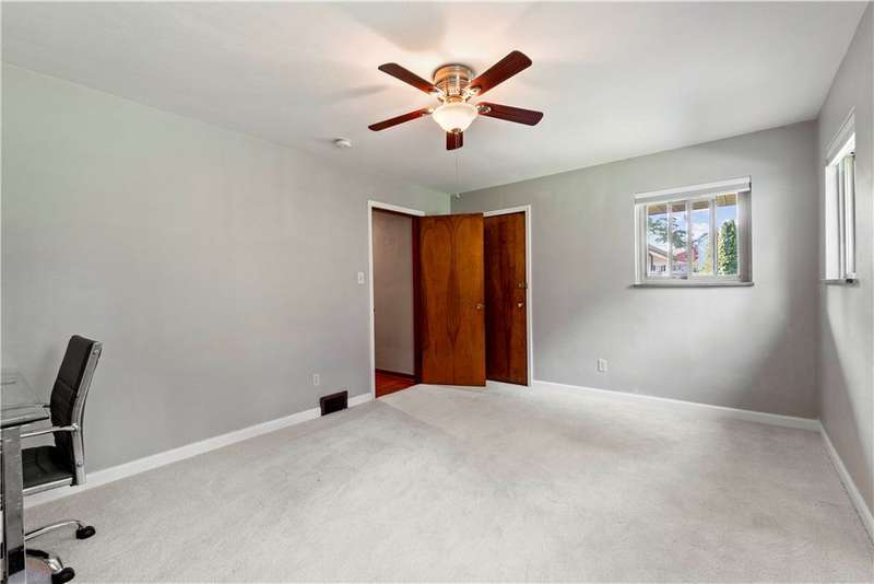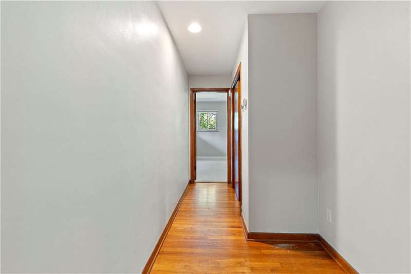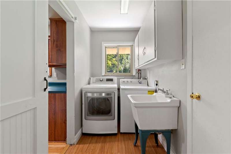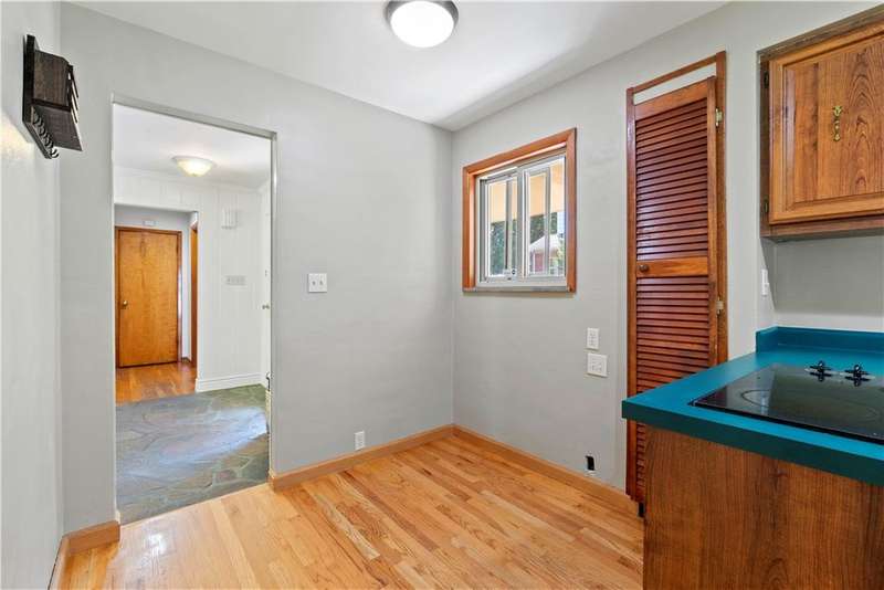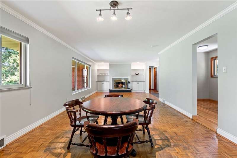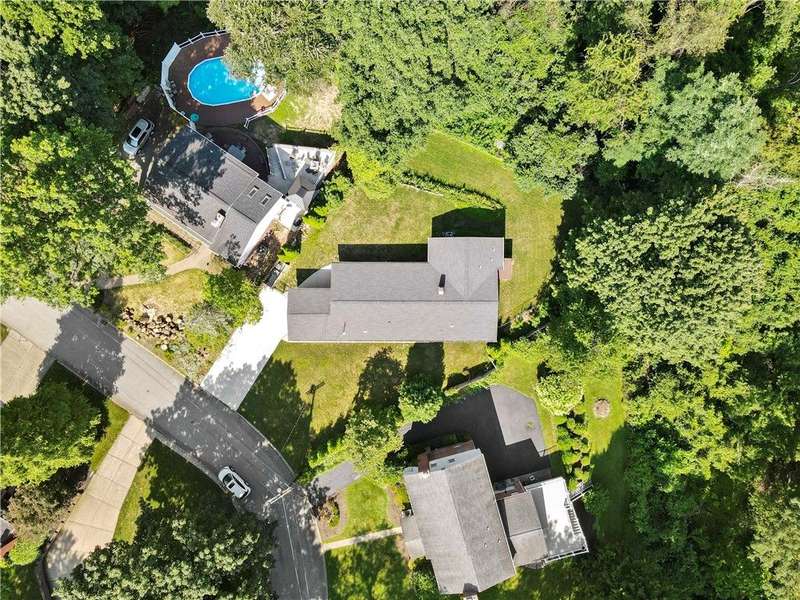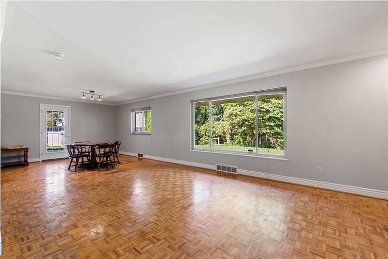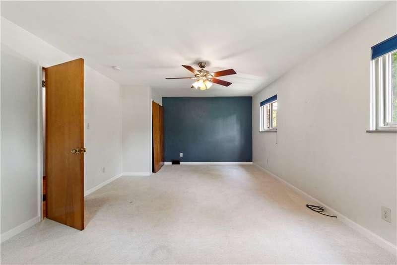 Brick & Stone Ranch offering true 1 level living with 2 spacious bedrooms & 2 full baths, nestled in a sought-after neighborhood enclave. Don't miss the chance to own this rare gem blending location, privacy & potential, a ranch home like this doesn't come around often! Set on a lush-sprawling lawn backing to Falling Springs Nature Park, you'll enjoy privacy, tranquility & wooded views. Inside open concept living & dining area is filled with natural light from a large picture window overlooking the the patio & yard, featuring a stone fireplace w/gas logs, flanked by built-in bookcases & classic wood parquet floors. This home has been updated with new concrete driveway & walkway, new HVAC, hot water tank & roof, ensuring peace of mind for years to come. These major updates give you the opportunity to add your personal touch to the retro kitchen & baths. Equipped laundry/mudroom area with storage next to the kitchen. Basement access from the garage has room for workshop, gym or storage.