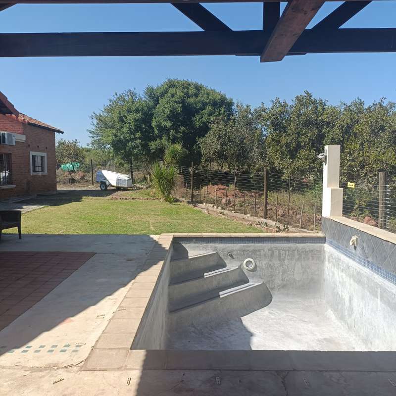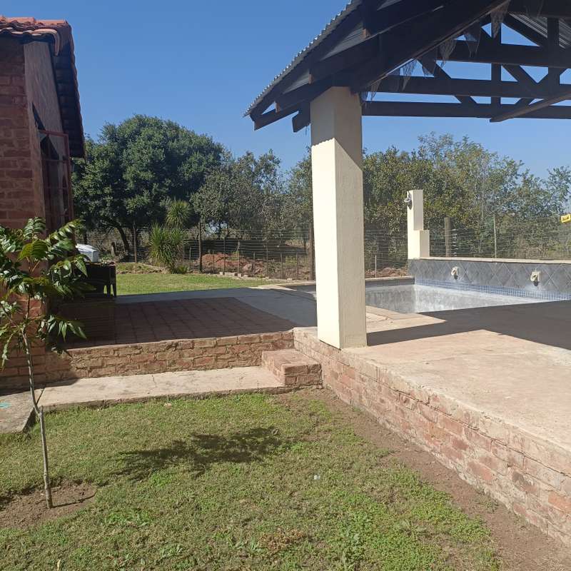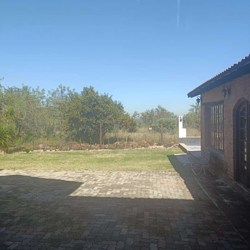 This magnificent 5.5-hectare property is offering a magic country living environment. This property is situated next to lodges, wedding venues, close to Kameelfontein Primary School and Curro College Roodeplaat. Take a little walk down the property for stunning views all around! The farm is ideally suited for bushveld living and farming with goats, sheep ect. The property got a unequipped borehole but is connected to Municipality water and Escom Power. On the property you will find the main dwelling which consists of 5 bedrooms, 4-bathrooms, open plan kitchen, lounge / dining room, second dining room for entertainment purposes, covered patio with swimming pool, double garage and outbuildings / barn / workshop.