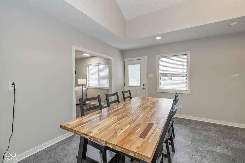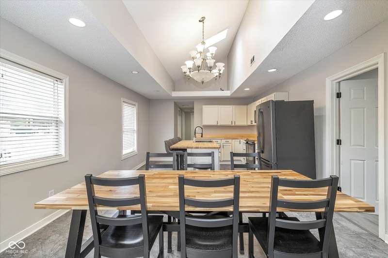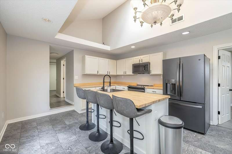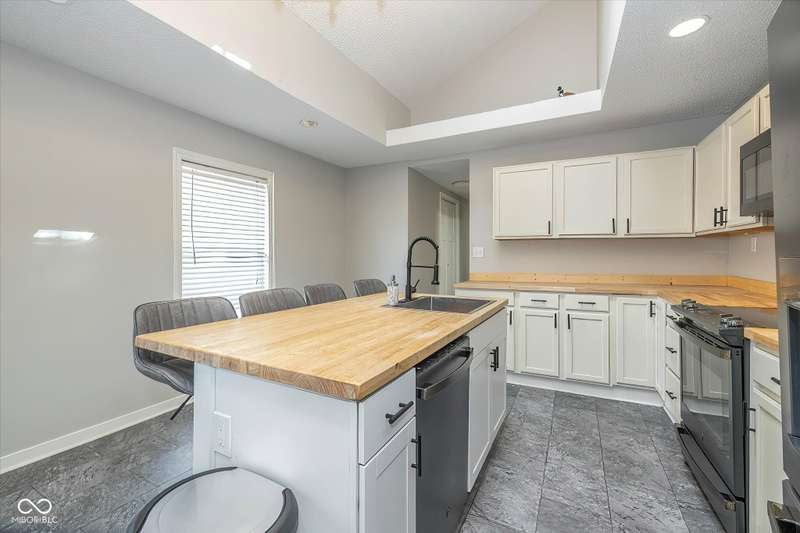 Bungalow style home built in the 1920's! Single story, with over 1,722 sq. ft. Fully updated w/3 Bedrooms, 2 Full baths. Move in ready, easy access to Downtown Indy. $5.00 Uber to Mass Ave area. Spacious front porch. You'll enter the home into a large Living Room w/tall vaulted ceilings, w/ceiling fan. Vinyl blinds throughout the home. The 1st & 2nd bedrooms are in the front of home w/nice size closets. Great separation to the primary bedroom suite off the back of the home w/office space + full bathroom & walk in closet. Updated kitchen w/double skylights & vaulted ceiling letting in lots of natural light. Unique butcher block countertops. Lots of cabinets & counter space. New black, matte finish, GE appliances. Eat in bar area & a full eat in dining space. Large laundry room off of kitchen w/new water heater & newer furnace. Lots of storage space. An extra side street 2nd entrance into Kitchen area, along with a 2 Car attached Garage w/Keyless entry. All appliances remain with home!