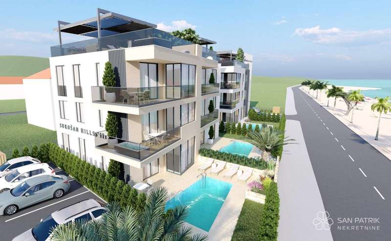 Introducing a new modern project in Sukosan - your oasis of peace and comfort on the beautiful coast of the Adriatic Sea. This luxurious complex consists of three residential buildings located in a prime location, first row to the sea, just 10 meters from the beautiful beach and crystal-clear sea. The apartments in this complex are a blend of elegant design, spectacular views, and top-notch amenities.