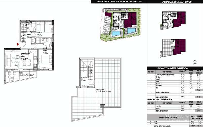 Apartment C-S06 - 2nd floor - living area 62.80 m2 (2 bedrooms + 2 bathrooms) + loggia (12 m2) + rooftop terrace (73 m2) + outdoor parking space; total net calculation area 104.04 m2 = €489,000