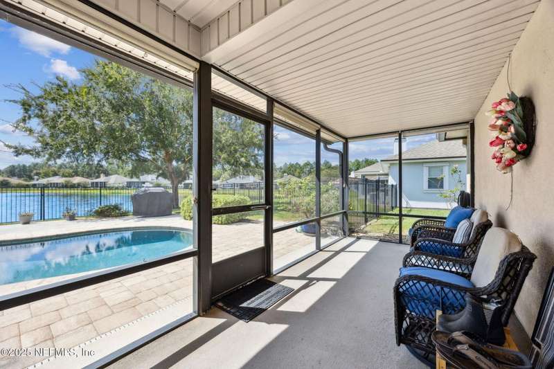 Peaceful Pondside Living in Flora Parke. Discover the perfect blend of comfort and style in this 3-bedroom, 2-bath pool home, ideally situated on a quiet pond in the sought-after Flora Parke. Designed for both relaxation and versatility, the flexible layout includes a bonus room that can easily serve as a formal dining area, home office, or cozy retreat. The spacious primary suite offers a private ensuite bath, while the open-concept kitchen features elegant 42'' upper cabinets, sleek solid surface countertops, and a bright breakfast nook filled with natural light. Two additional bedrooms and a full guest bath provide plenty of space for family and visitors. Step outside to your own private oasis-an inviting screened porch overlooks the sparkling saltwater pool & tranquil pond, perfect for year-round enjoyment. The expansive patio is ideal for entertaining or simply soaking up the Florida sunshine. Located in a top-rated school district just minutes from shopping, dining & beaches.