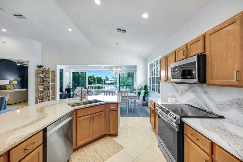 Seller Says "Make Us An Offer!" Welcome to 26914 Montego Pointe Ct. #202 a spectacular view awaits you! Nestled in the serene embrace of Bonita Springs, this exquisite lakefront residence is a true sanctuary amidst nature's finest artistry, where the gentle ripples of the water whisper tales of tranquility and promise. Stepping inside, you're greeted by new flooring that leads the way into a remodeled kitchen, showcasing pristine countertops and revitalized bathrooms, each space echoing elegance and modern sophistication. The enchantment continues with a glassed-in lanai, offering an uninterrupted canvas of the mesmerizing lake, a perfect setting for morning musings or evening reflections. Venture outdoors to discover the community's luxurious tapestry of amenities-tennis, pickleball, bocce, kayaking, canoeing, and walking trails that beckon the adventurous spirit. With playgrounds echoing children's laughter and a private beach club offering a slice of paradise, it's a haven for families and individuals alike. A golfer's dream with splendid courses and club dining, along with a full-service marina for those drawn to the water's call. Convenience is paramount as it resides near the vibrant pulse of Coconut Point Mall, The Promenade, RSW International Airport, thrilling theaters, and lively downtown Bonita Springs, presenting a delightful blend of tranquil retreat and city life excitement. The attached one-car garage provides practicality, while the neighborhood swimming pool, spa, fitness room, and pavilion extend an invite to relax and rejuvenate. A testament to graceful living, this property is not merely a home; it's a lifestyle poised between the quietude of nature and the vibrant hum of community life.