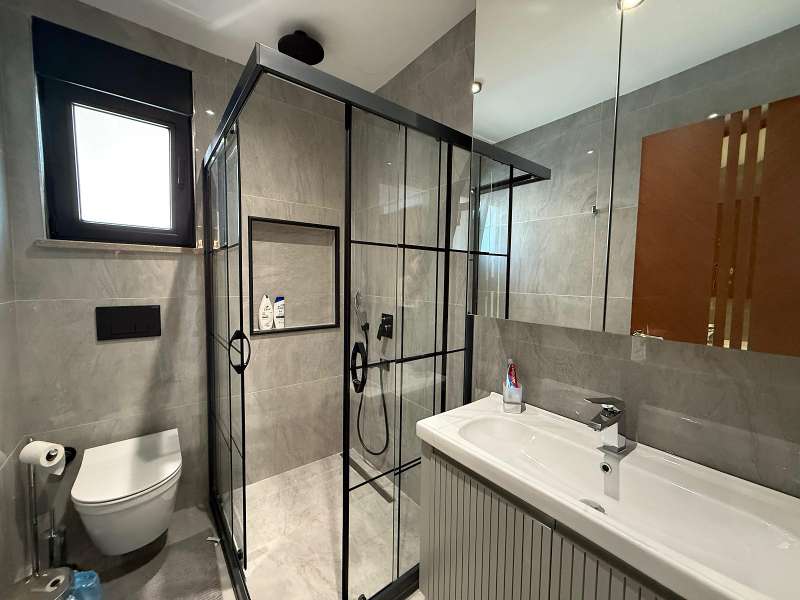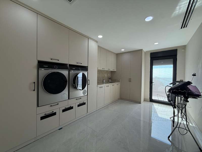 The villa with a chic design is located in Bektas, Alanya. As one of the most popular districts of Antalya, Alanya offers a lively nightlife, a developed economy, a colorful socio-economic structure, natural beauty, and blue flag beaches. Bestas is situated in an ideal location with panoramic Alanya and Mediterranean Sea views. The neighborhood offers easy access to social amenities.