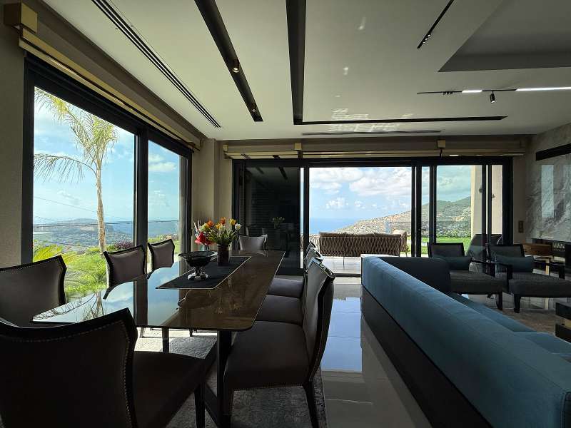 The villa is enriched with a large landscaped garden, a private infinity pool, sauna, jacuzzi, fitness, fireplace, electrical blinds, barbeque area, and a parking space for 2 vehicles. The villa is equipped with a lift, generator, water tank, satellite TV with internet connection, and 24/7 security camera system.