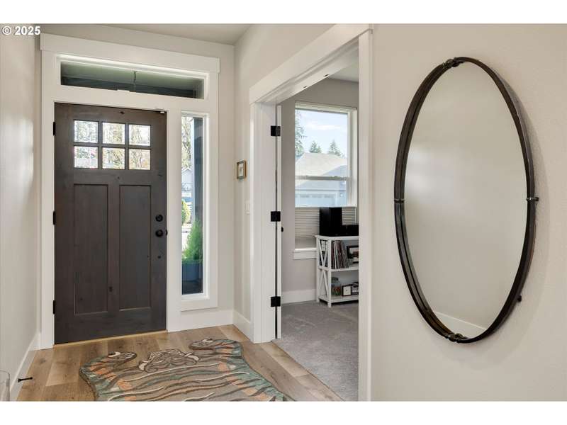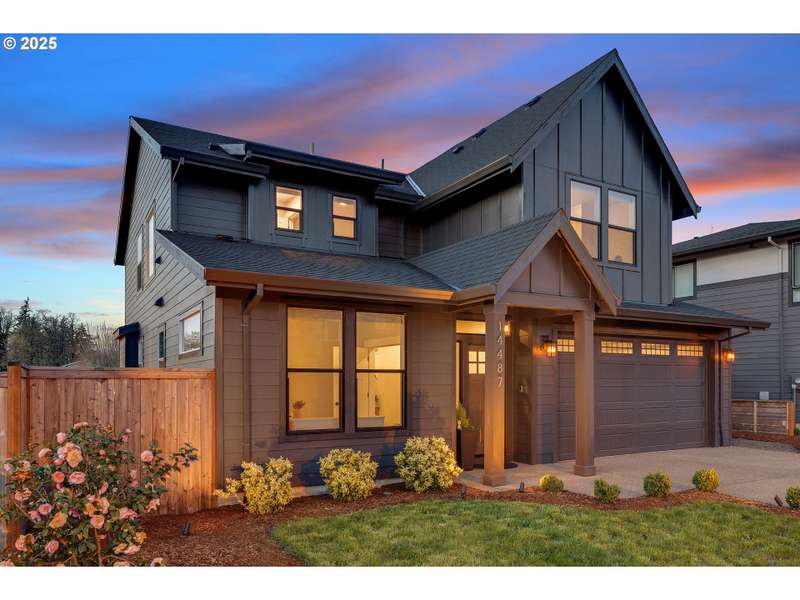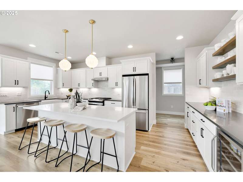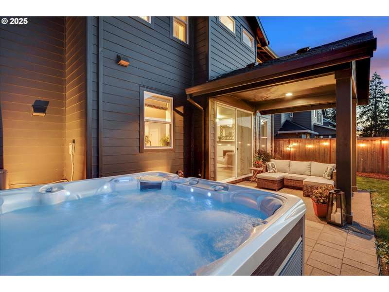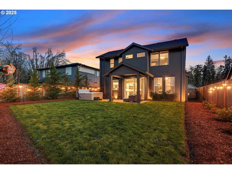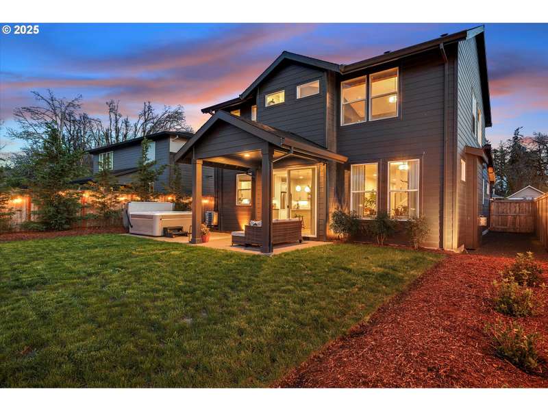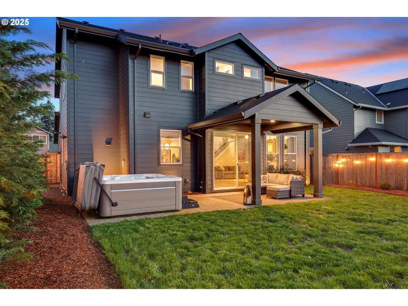 OPEN HOUSE Sunday 9/7 from 1-3pm. $79,000 Price reduction in total! Must see turn key Modern Farmhouse built in 2022 and immaculately maintained! This lightly lived-in home lives like new construction, showcasing thoughtful upgrades throughout. Soaring 9-foot ceilings enhance the sense of space, while wide plank luxury flooring adds warmth and style to every room. The open-concept kitchen is as functional as it is beautiful, featuring a walk-in pantry, butler’s counter, apron-front sink, and a built-in wine fridge is perfect for effortless entertaining. The vaulted primary suite offers a peaceful retreat, complete with a spacious walk-in closet, double sink vanity, and a custom walk-in shower with a built-in shaving bench.. Central air conditioning and on-demand hot water provide year-round comfort. A main floor office offers flexible space for work or study. On the exterior enjoy the covered back patio—accessed through an oversized 8x8 sliding door, which opens to a fully fenced yard which has been enlarged approximately 250 SQ FT! A brand new hot tub valued at approximately $15,000 which comes with the home! Built by an Earth Advantage-certified builder and Energy Star qualified, this home blends quality craftsmanship with modern efficiency.