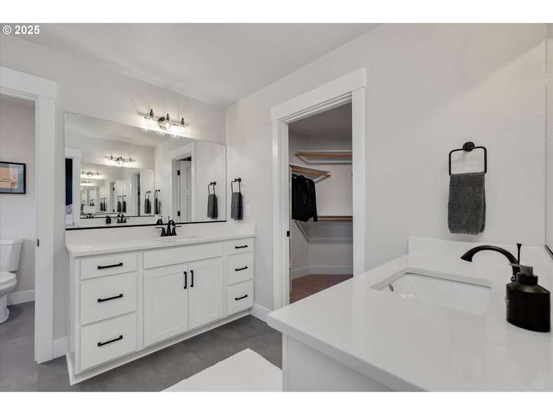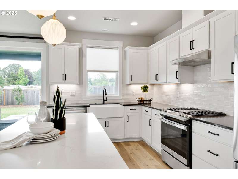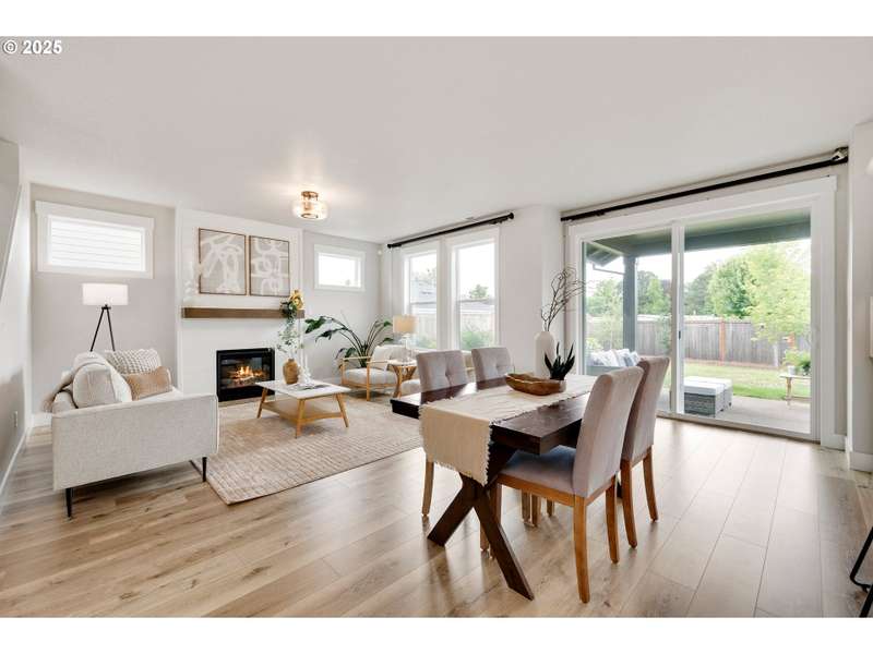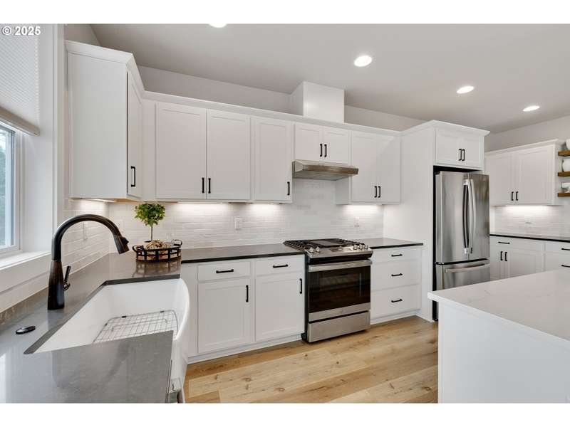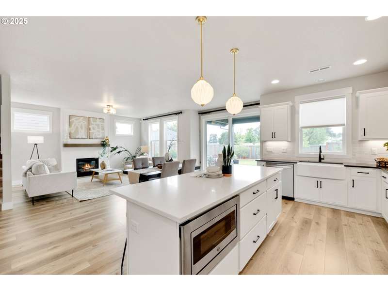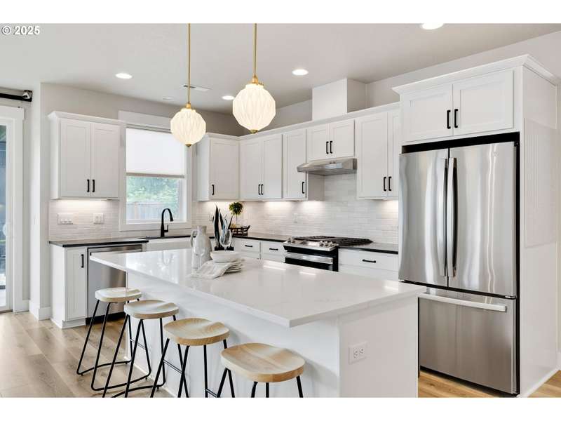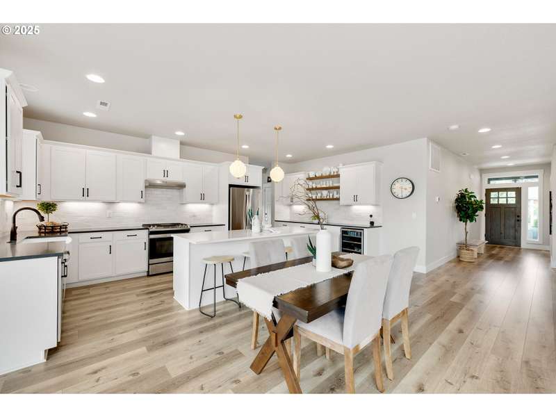 OPEN HOUSE Sunday 9/7 from 1-3pm. $79,000 Price reduction in total! Must see turn key Modern Farmhouse built in 2022 and immaculately maintained! This lightly lived-in home lives like new construction, showcasing thoughtful upgrades throughout. Soaring 9-foot ceilings enhance the sense of space, while wide plank luxury flooring adds warmth and style to every room. The open-concept kitchen is as functional as it is beautiful, featuring a walk-in pantry, butler’s counter, apron-front sink, and a built-in wine fridge is perfect for effortless entertaining. The vaulted primary suite offers a peaceful retreat, complete with a spacious walk-in closet, double sink vanity, and a custom walk-in shower with a built-in shaving bench.. Central air conditioning and on-demand hot water provide year-round comfort. A main floor office offers flexible space for work or study. On the exterior enjoy the covered back patio—accessed through an oversized 8x8 sliding door, which opens to a fully fenced yard which has been enlarged approximately 250 SQ FT! A brand new hot tub valued at approximately $15,000 which comes with the home! Built by an Earth Advantage-certified builder and Energy Star qualified, this home blends quality craftsmanship with modern efficiency.