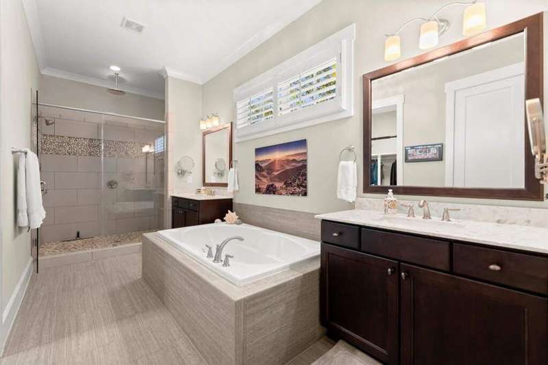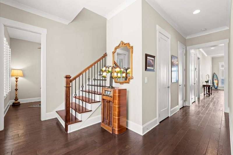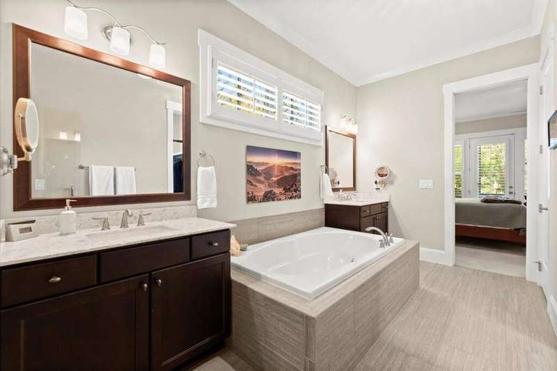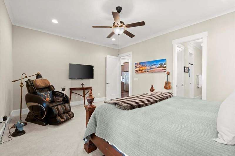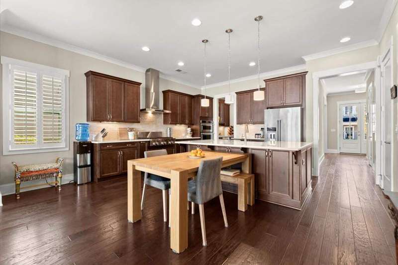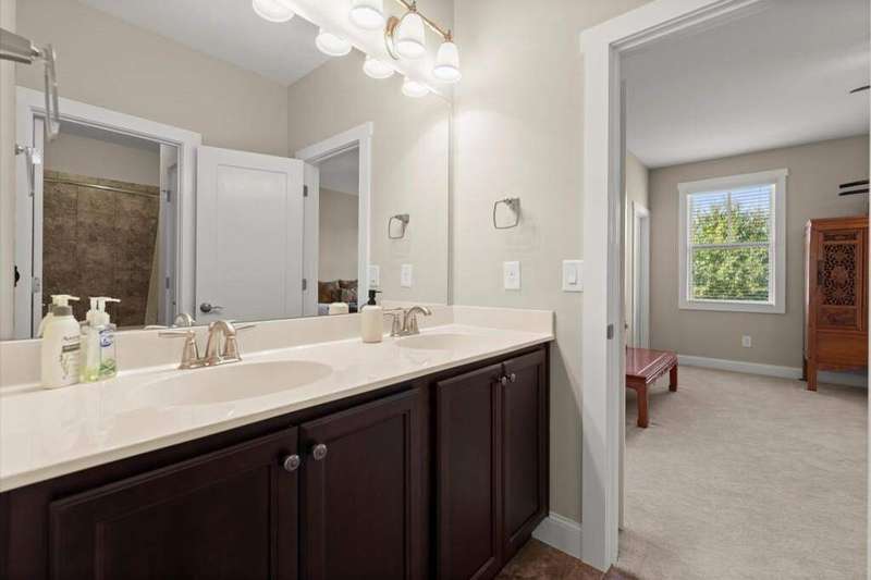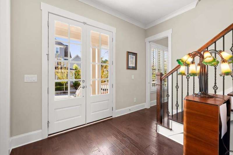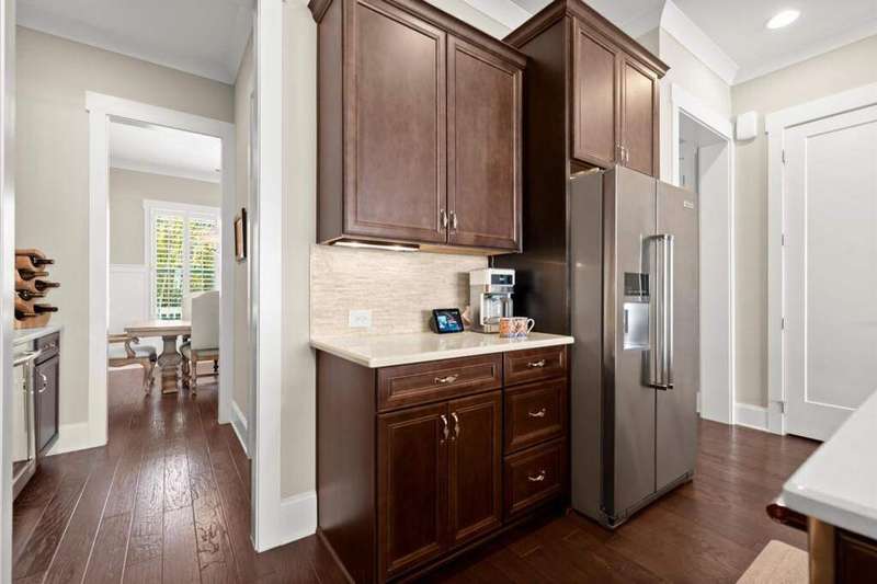 Welcome to this charming yet spacious cottage-style home by John Wieland, perfectly nestled on a premium corner lot in Alstead, overlooking a protected wooded area. Featuring a rare PRIMARY SUITE ON MAIN level, this home offers both style and convenience in an unbeatable location. From the moment you arrive, the inviting covered front porch sets the tone-with French doors, a custom-built swing, and plenty of room for relaxing or entertaining. Enter the foyer to discover an open-concept kitchen designed for both everyday living and elevated entertaining. A large center island, stone countertops, and a Kohler farmhouse sink combine with KitchenAid appliances and a Jenn-Air 6-burner cooktop to create a true chef's kitchen. A butler's pantry with a wine fridge and additional cabinetry connects seamlessly to the formal dining room. The fireside living room offers a cozy space to unwind, while a dedicated office provides the ideal work-from-home environment. Retreat to the main-level primary suite, complete with private access to the screened-in back porch-perfect for morning coffee or evening sunsets. The luxurious ensuite bath includes a soaking tub, separate shower, dual vanities, and a walk-in closet. Throughout the main level, plantation shutters and hardwood floors add timeless elegance. Upstairs, a spacious loft with built-in shelving offers flexible space for a media room, playroom, or reading nook. Two generous bedrooms share a well-appointed Jack and Jill bathroom. Unique to this property is a SEPARATE CARRIAGE HOUSE, featuring a two-car garage with a fully finished apartment above-including a bedroom, full bath, and private entrance-ideal for guests, in-laws, or private office. Additional highlights include: recently painted exterior, Instant hot water system (recirculating pump), Mudroom and main-level laundry room, and fully fenced backyard. Alstead is a sought-after community with low HOA dues, offering full landscaping, a pool and clubhouse, hilltop park, and a vibrant social scene. Enjoy walking distance to nearby restaurants, coffee shops, East Roswell Park, and local schools. Just 1.5 miles to GA 400, and minutes from Canton Street, Avalon, and the Chattahoochee River parks, this is truly a "lock and go" lifestyle in a move-in ready home!