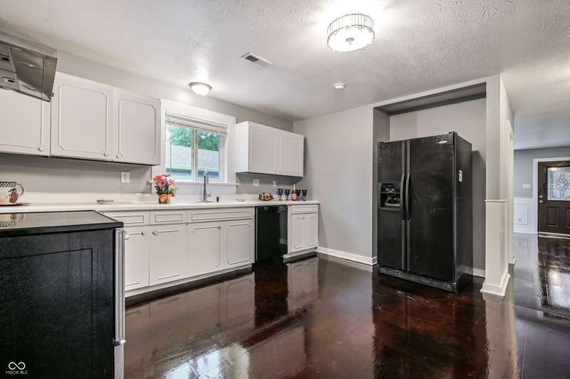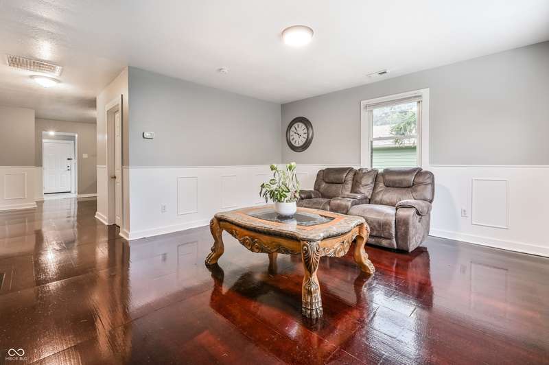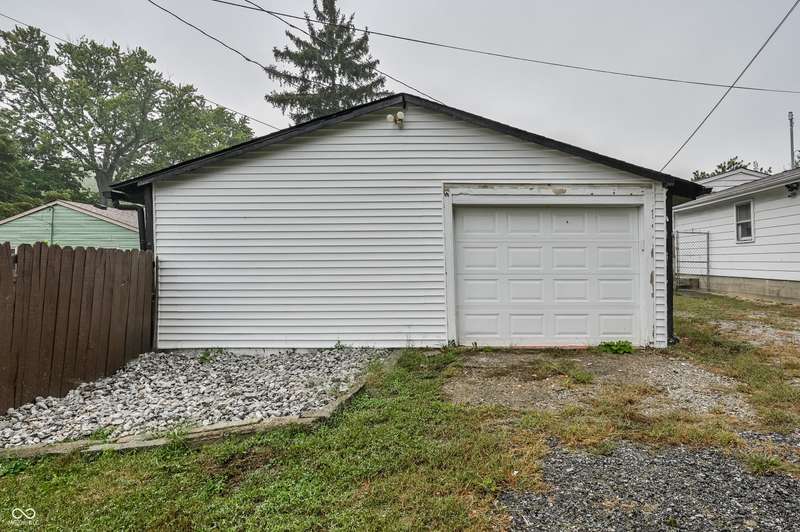 Enter this beautiful updated ranch with gleaming hardwood floors. Living room offers plenty of sunlight leading to large kitchen and dining combo with plenty of cabinet space, counter space and appliances. Gorgeous bathroom completely update offering tile floors and new vanity and light fixture. This home offers oversized 2 car detached garage-ideal for workshop, storage or even an additional hang out area. Home also boasts a full rear privacy fence and plenty of parking in front. Seller has recently made new updates including: Garage door opener, epoxy garage floor, painting of garage and interior of home, new bathroom, new glass door, new sink, dishwasher, stainless steel hood fan, interior lights, and refinished all the beautiful hardwood floors. There is nothing left for you to do except move in and bring your decorating ideas. Conveniently located near I465, Krannert Park and Indy Park Trails