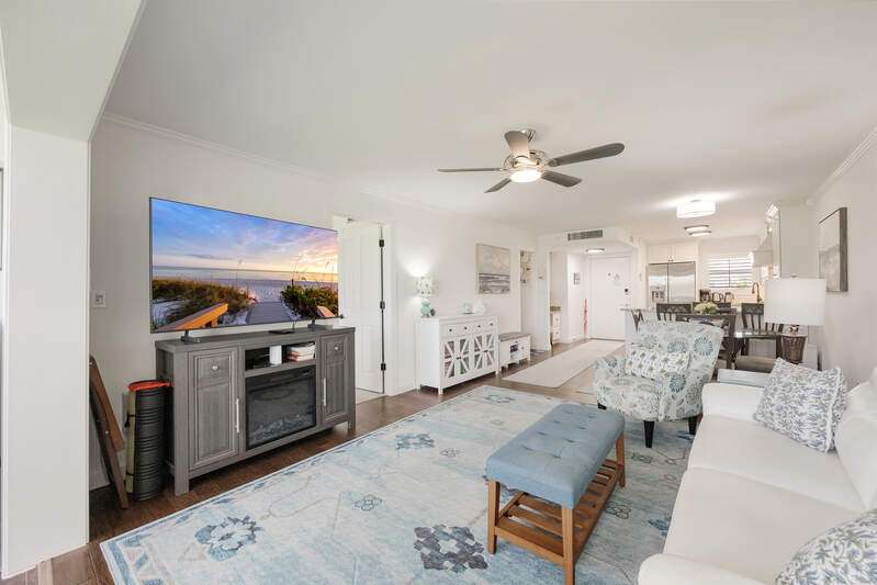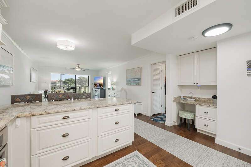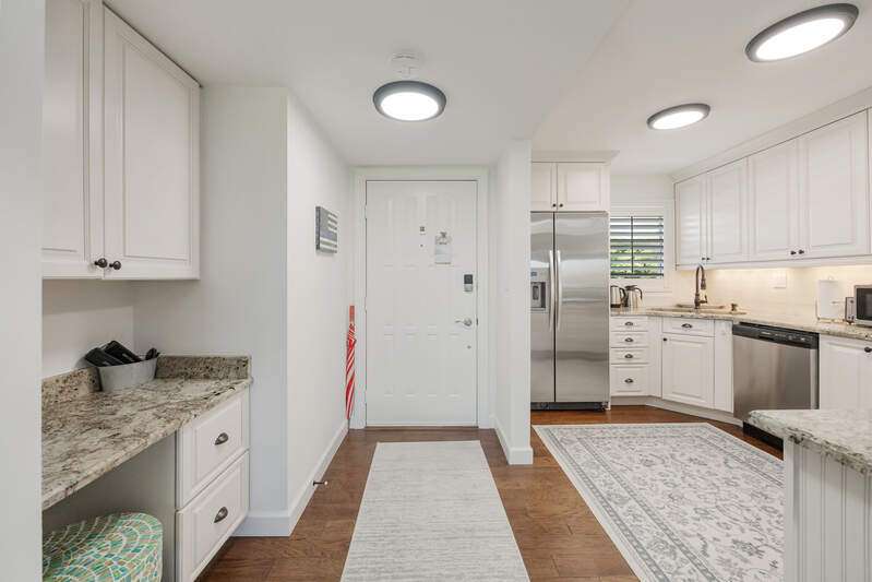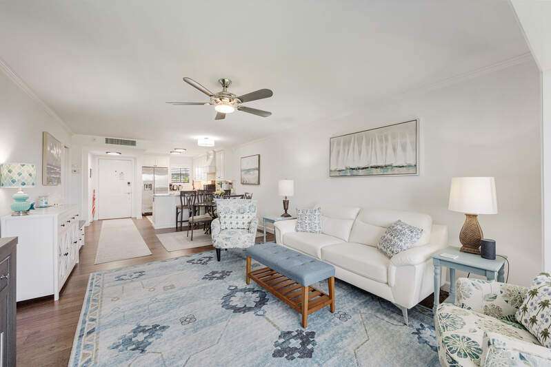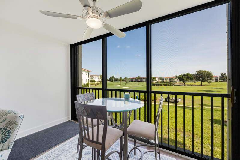 Looking for a place to have FUN, RELAX & ENJOY LIFE! Discover High Point Country Club! This beautifully updated 2 bedroom/2 bath awaits YOU! Feel welcome the moment you arrive with natural light in every room. Kitchen is a chef's delight with granite counter tops, white shaker cabinets w/soft close drawers. Newer S/S appliances and glass top range. Special features include lovely Laminate vinyl plank flooring through out living area and lanai w/carpet in bedrooms, tile in bathrooms. Plantation shutters give an extra appeal to the bedrooms! Showers beautifully designed with framed glass enclosures, new commodes, updated stylish lights and fans, walk in closet in primary suite. Feel at ease knowing you have Impact Glass Windows throughout with exception to lanai sliding doors, screen front door to open and let the fresh breeze through. Extra storage on unit floor. There is a venue of amenities to meet your lifestyle, Bundled Golf includes 9 challenging Holes, 6 heated pools, during season enjoy casual dining for breakfast/lunch. Fitness room complete with weights, aerobic machines, Tennis, Pickle Ball. Seasonal activity calendar is full of things to do. Cards, Bingo, Yoga Classes, Domino's, Board Games, Dancing, Holiday Celebrations, Dinner Dances & even entertainment events. Expansive Club House with 9.700 sq. ft. This is a 55+ building. Stop in and start making new memories today!