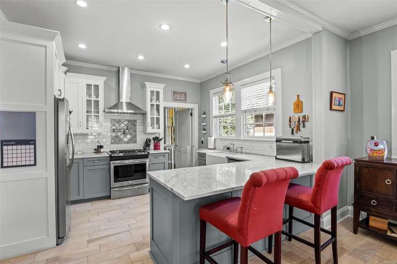 VA ASSUMABLE LOAN AVAILABLE FOR ELIGIBLE AND QUALIFIED BUYERS - 2.375% interest rate! Charming updated 5 bedroom, 3 bath Cloverdale home that blends timeless character with thoughtful modern updates. The inviting main level features a light-filled great room with a fireplace, a cozy sunroom, a dining room, and a stunning renovated kitchen complete with Carrera marble countertops, stainless appliances, farmhouse sink, gas range with pot-filler, custom cabinetry, and the original butler’s pantry for added charm and storage. The spacious pantry and laundry room offer custom shelving and a convenient folding counter.The first-floor main suite is a true retreat, boasting French doors to the back deck, a massive walk-in closet with custom shelving, and a luxurious en-suite bath with Carrera counters, double vanities, and a frameless walk-in shower with Carrera tile flooring and niche. Two additional bedrooms and a beautifully restored original bathroom complete the first floor. Upstairs, you’ll find two more bedrooms, a full bath, a large playroom, and an expansive walk-in attic for incredible storage. Step outside to enjoy the oversized deck all overlooking the fenced backyard—perfect for gatherings. Recent updates include a new downstairs HVAC (2025), two hot water heaters (2019), and a new deck and fence (2020). Ideally located near Cloverdale’s favorite shops and restaurants, this historic home is a perfect blend of charm, space, and modern convenience. Make your appointment today!