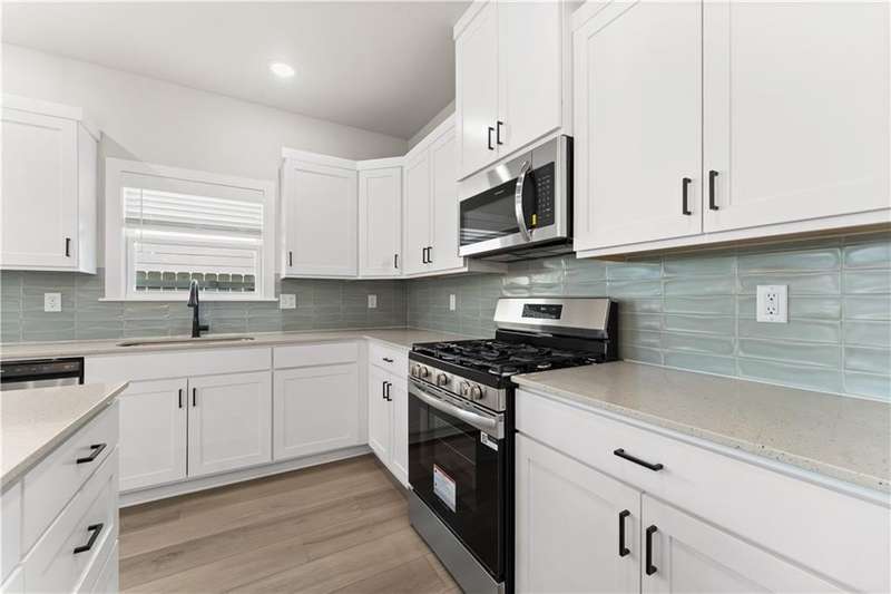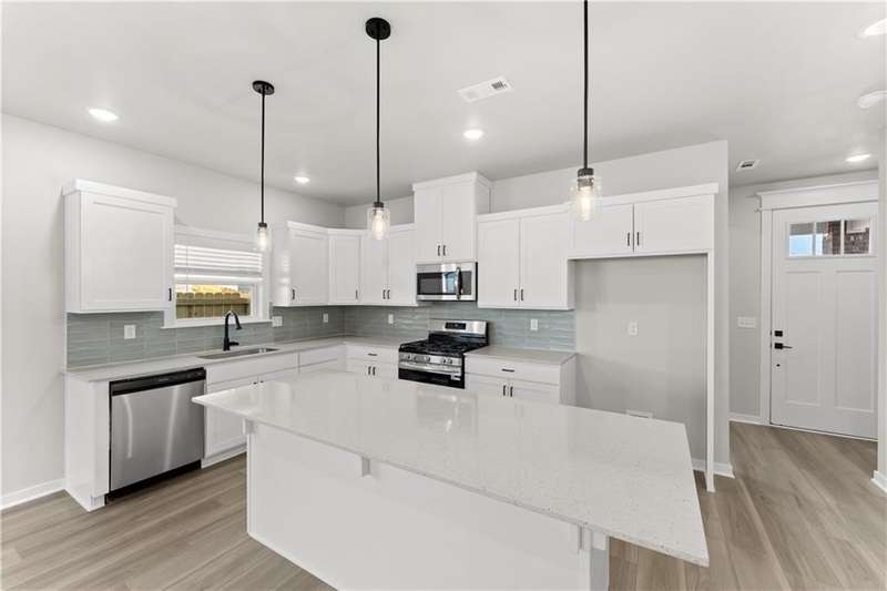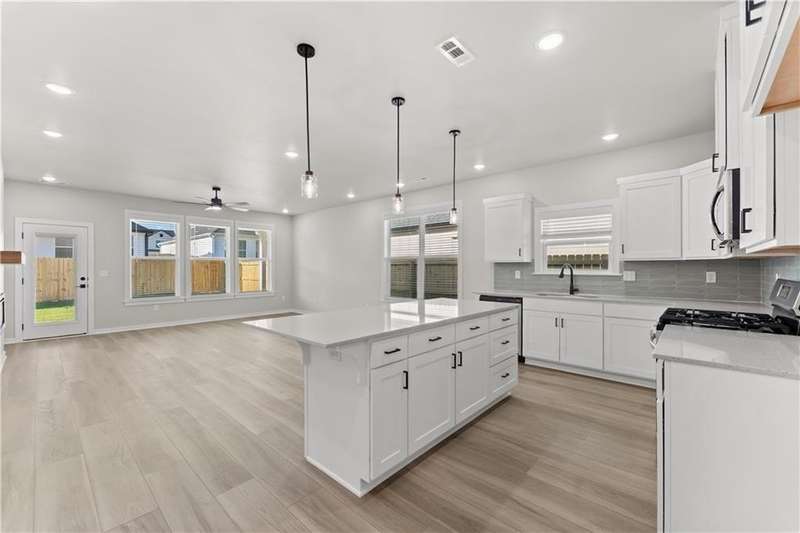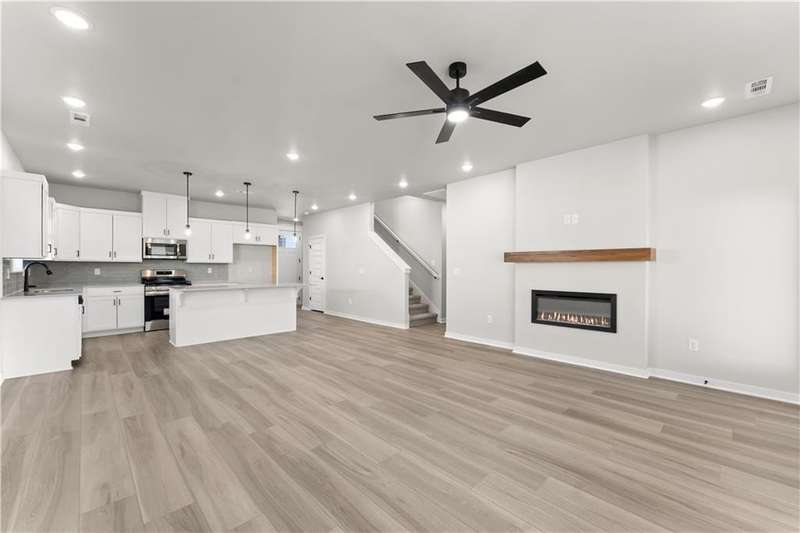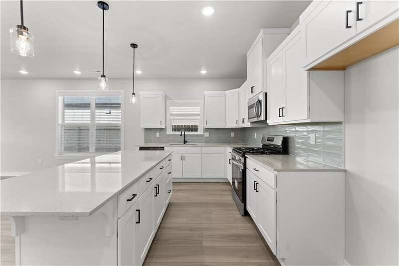Fence, blinds and gutters included! Discover your dream home in the sought-after Osage Hills neighborhood. Delta plan with garage on the left and North facing! 9 ft ceilings, linear electric fireplace in the living room, LVP flooring throughout the main living areas and primary bedroom, quartz countertops and more. Chef's kitchen boasting frigidaire stainless steel appliances, gas range, pantry, quartz countertops, bar pull handles, large island and gorgeous backsplash. Luxurious primary bedroom features abundant natural light, while the spa-like primary bathroom offers a walk-in shower, tub, double sinks, and spacious walk-in closets. Additional features include a study on the main level, two large secondary bedrooms upstairs and a separate laundry room. Nestled on a generous lot with covered patio that overlooks the serene sodded, fully fenced backyard. Sturdy concrete siding & brick! Model home located at 6008 SW Coywolf St- Lot 122.