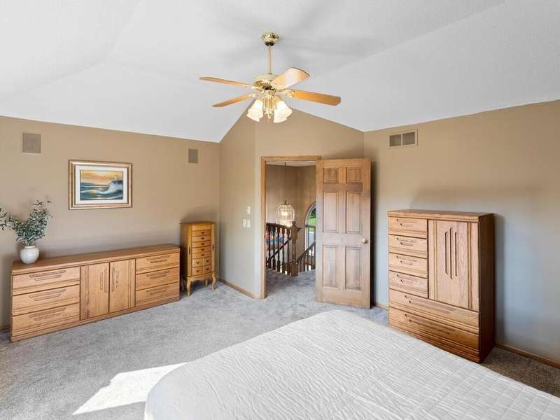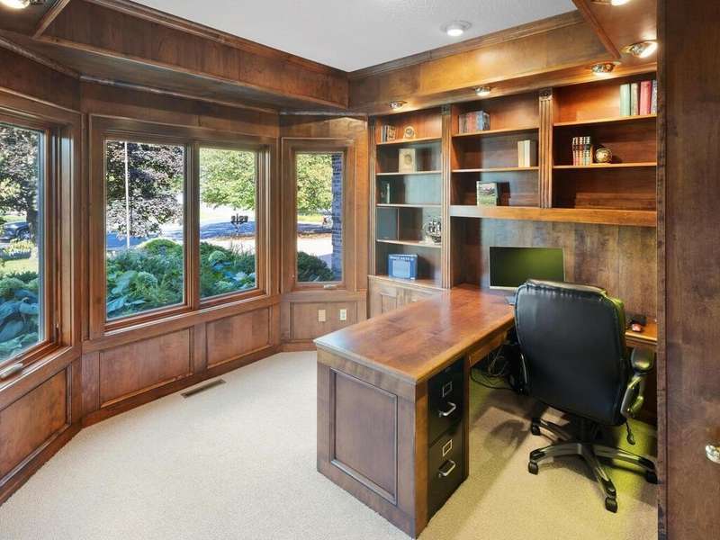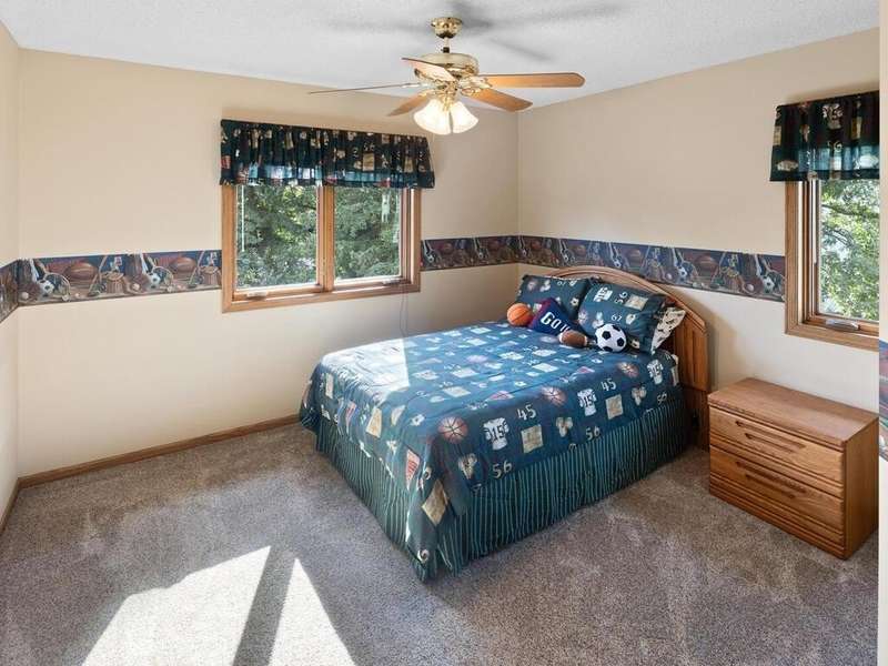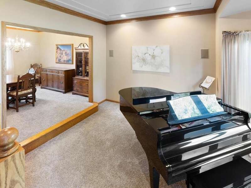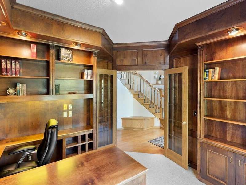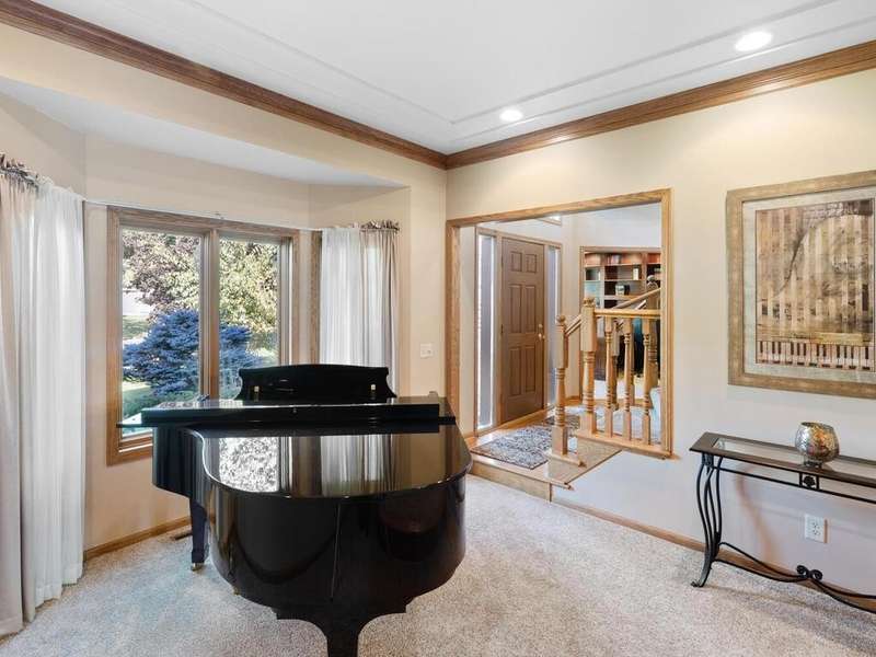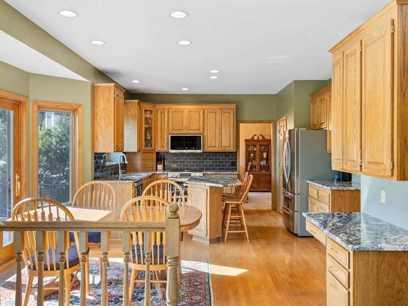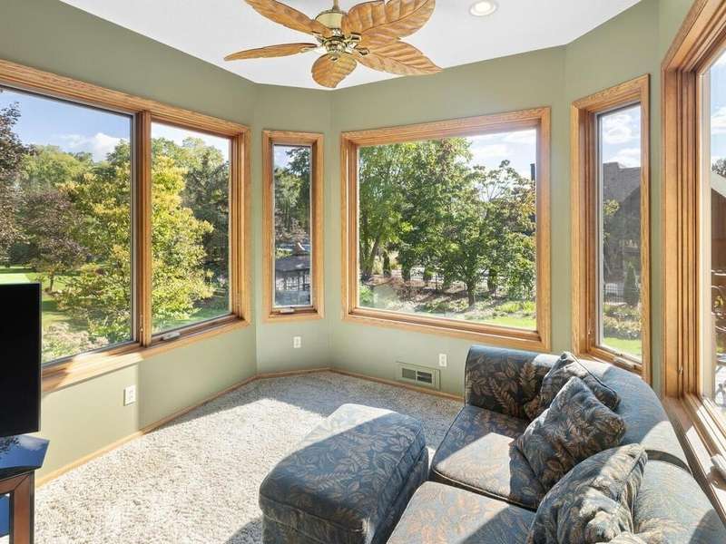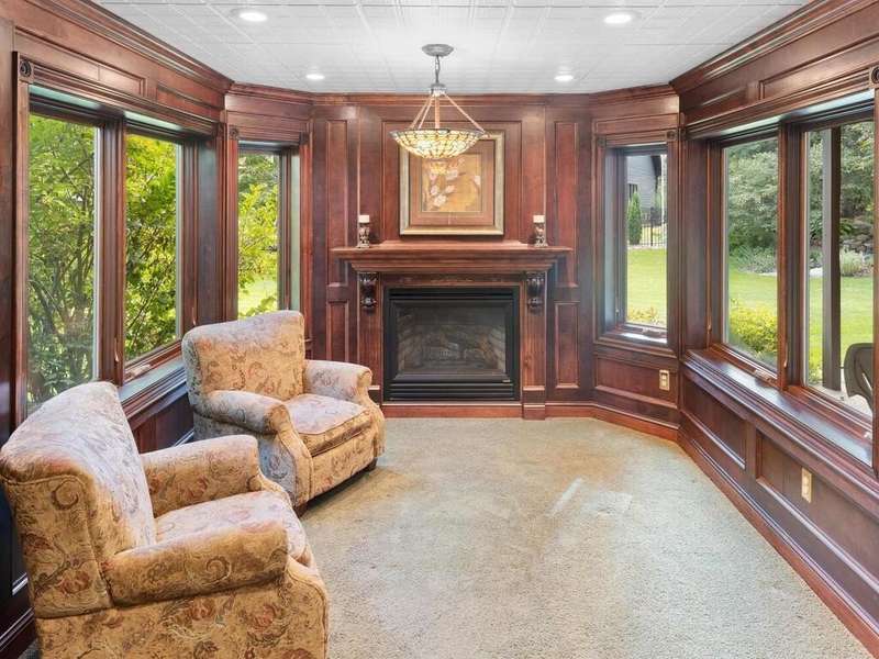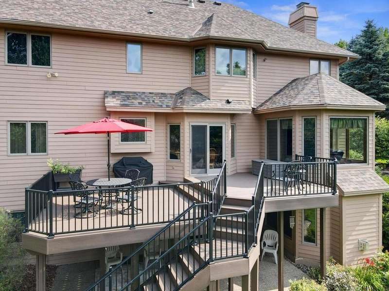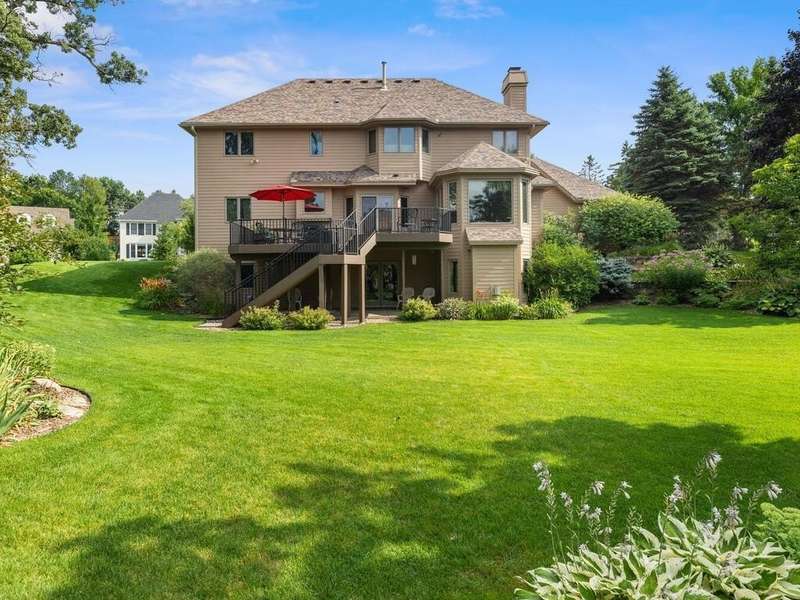 Beautifully maintained 5-bed, 4-bath home on a cul-de-sac with scenic garden views! Enjoy your morning coffee from the sunroom or maintenance-free deck. The main floor features a large dining room, custom-built office, sunroom, oversized living room, and separate formal living room. Open-concept kitchen features granite countertops and stainless-steel appliances. The upper level has four bedrooms, including a spacious primary suite with walk-in closet, double vanity, and separate tub & shower. The walkout lower level offers a large family room, fifth bedroom, bathroom, sitting room with gas fireplace, and a stunning British-inspired bar. Recent improvements include new water heater, maintenance-free deck, concrete driveway, garbage disposal, and main-level paint. Located close to beautiful parks, walking trails, and schools, as well as nearby shopping, dining, and major highways.