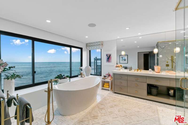 Available June through August. This prestigious Malibu Road property is a breathtaking coastal sanctuary, offering sweeping ocean views stretching from Santa Monica and Palos Verdes to Catalina and Point Dume. From the moment you enter, the dramatic and jaw-dropping entryway sets the tone, framed by thoughtfully and lushly landscaped front and back courtyards. Towering two-story ceilings and complete privacy elevate the living experience, while expansive outdoor spaces invite both serenity and entertaining. Inside, rich oak hardwood floors flow throughout. The gourmet kitchen stuns with creamy white cabinetry, luxurious finishes, and a layout designed for both beauty and functionality. The oceanfront primary suite is a true retreat, featuring a cozy fireplace, dual walk-in closets, and the most captivating panoramic ocean and coastline views. The spa-like primary bath offers a freestanding soaking tub, oversized steam shower, and direct ocean views for a resort-level experience. Upstairs, two guest bedrooms with a dual bathroom, offering guests or family both comfort and privacy. Outdoor living is unparalleled, with a rare and expansive entertaining area complete with a built-in BBQ and private spa. The main house includes four bedrooms plus an office/den. There is a completely separate, one-bedroom guest house with its own ocean views, that sits across the courtyard. This iconic and exquisitely designed property is truly one of Malibu's finest.