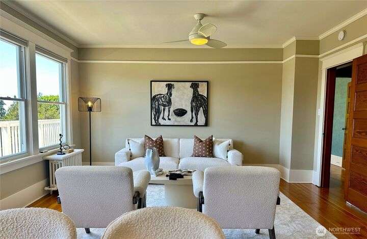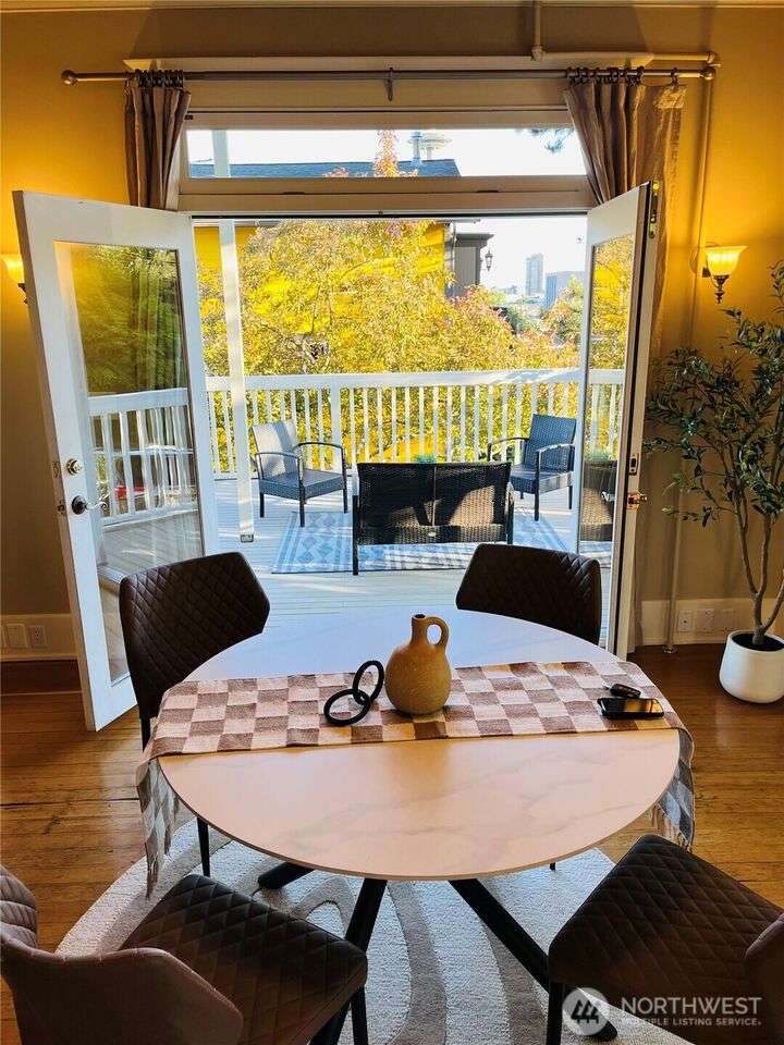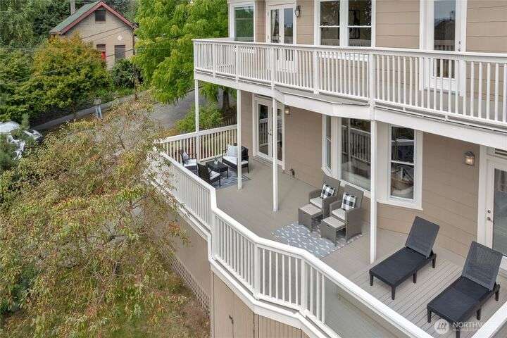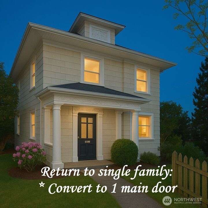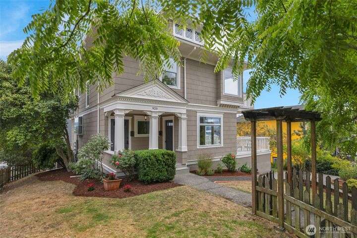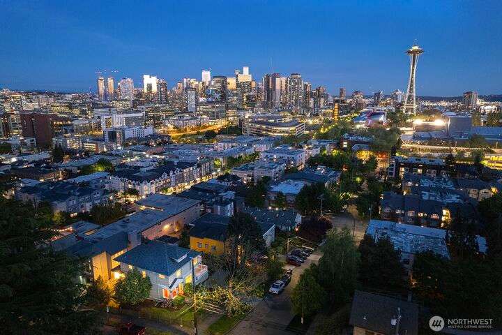 A rare offering in Queen Anne, this charming 1904 duplex captures stunning Seattle skyline views from its perch on an expansive 5,000+ SF corner lot. Fresh paint inside and out. Newer roof, refinished wood floors (up), and all systems inspected. Inspections and receipts available. Potential 3rd floor suite in walk-up attic. 500+ SF decks extend living space. This home offers flexibility — live in one unit and rent the other or restore it to its roots as a single-family residence. Fully rented for 15 years; see related multi-family listing for financials. Maintained by meticulous homeowner. Just steps to Seattle Center, shops, dining, and SLU tech. This property combines location, views, and history in one of Seattle’s premier neighborhoods!