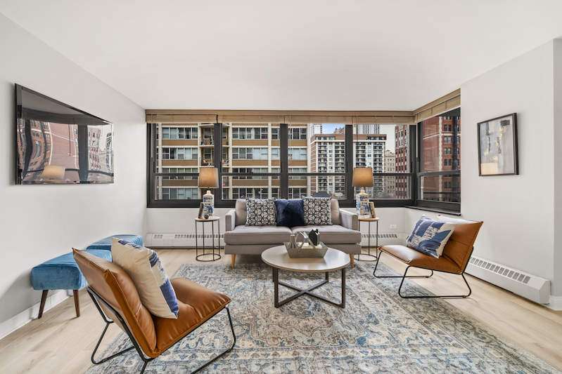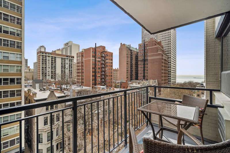 HIDDEN GEM, QUIET BLOCK BETWEEN THE LAKE AND RUSH STREET. THIS BEAUTIFULLY REHABBED CORNER HOME OFFERS CITY AND LAKE VIEWS FROM A COMFY PRIVATE BALCONY. PERCHED ABOVE THE TREETOPS THIS BEAUTIFUL GOLD COAST CONDO OFFERS ABUNDANT LIGHT AND GRACIOUS AMENITIES. KITCHEN FEATURES WHITE SHAKER CABINETRY, STAINLESS STEEL APPLIANCES, LARGE BREAKFAST BAR AND QUARTZ COUNTERS. MODERN BATH, CUSTOM SHADES AND AIR CONDITIONERS. EVERYTHING IS A FEW YEARS NEW. KITCHEN OPENS TO GENEROUS LIVING/DINING ROOM COMBO. FULL AMENITY BOUTIQUE BUILDING BOASTS SUNDECK ROOFTOP, PARTY ROOM, FITNESS ROOM, BIKE ROOM, VALET PARKING AND 24 HOUR DOORMAN. MONTHLY ASSESSMENT FEE INCLUDES: HEAT, WATER, UPGRADED TV/CABLE PACKAGE, EXERCISE ROOM, HIGH SPEED Wi-Fi AND INTERNET. WALKING DISTANCE TO ALL THE GOLD COAST HAS TO OFFER! BEACHES, LAKEFRONT, PARKS & TENNIS, SHOPPING, RESTAURANTS, MUSEUMS ARE STEPS AWAY. THIS PRIME LOCATION IS THE PERFECT PLACE TO LIVE YEAR ROUND OR AS IN-TOWN RESIDENCE. ATTACHED GARAGE PARKING AVAILABLE FOR PURCHASE AT AN ADDITIONAL $30,000 OR LEASE OPTIONS ARE AVAILABLE THROUGH THE BUILDING.