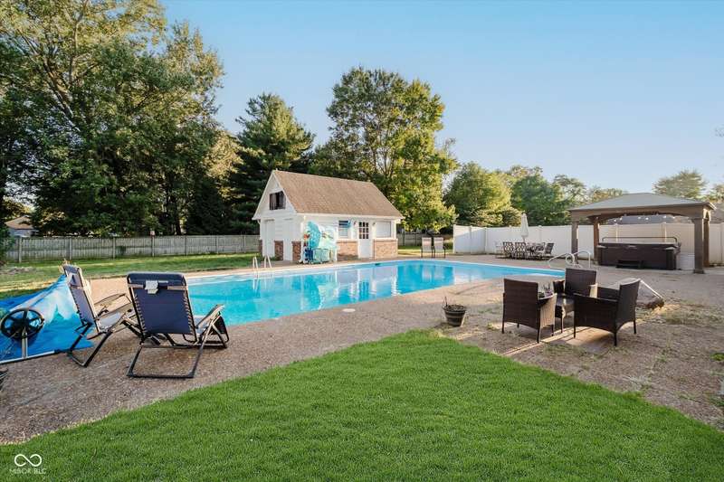 Nestled on a sprawling lot at 7067 E County Road 200 N, AVON, IN, this single-family residence in Avon presents an attractive property in updated condition. The living room provides a central gathering space, featuring a fireplace that promises warmth and ambiance during cozy evenings. Imagine relaxing in this inviting atmosphere. The kitchen is a culinary dream, complete with a backsplash that adds a touch of elegance, a kitchen bar perfect for casual dining, a kitchen peninsula offering ample counter space, and a skylight that bathes the area in natural light. This space is sure to inspire culinary creativity. The primary bedroom offers a private retreat with an ensuite bathroom, ensuring a personal sanctuary for relaxation and rejuvenation, and a skylight that allows for stargazing from the comfort of your bed. The bathrooms offer spa-like experiences, including a double vanity providing ample space for morning routines, a tiled walk-in shower for refreshing starts to the day, and a soaking tub promising peaceful evenings. Beyond the interior, this property offers a porch perfect for enjoying morning coffee, a private pool providing a refreshing escape during warm days, a balcony offering a private spot for relaxation, a patio ideal for outdoor entertaining, a laundry room adding convenience to daily chores. With 3359 square feet of living area and a 1.15 acre lot, this two-story residence, has three full bathrooms and one-half bathroom, offers a unique opportunity to embrace a lifestyle of comfort and leisure.