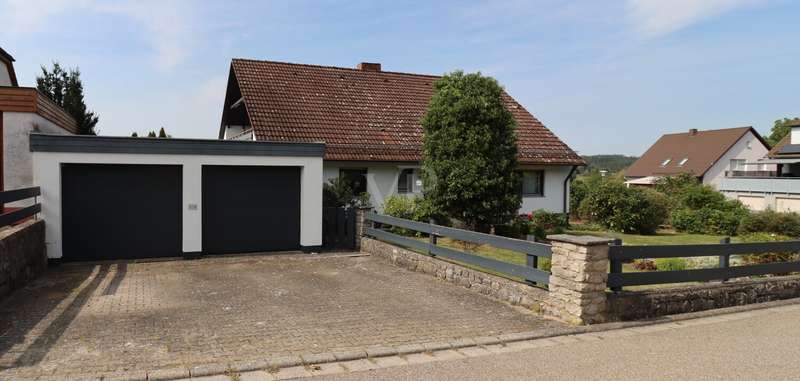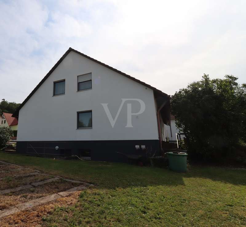 Welcome to your new home: This spacious detached house with granny apartment, built in 1979-1980, impresses with its versatile layout and well-kept condition. With a living space of approx. 161 m² and a plot area of approx. 997 m², the property offers numerous possibilities for individual design and use. The house is located in a quiet residential area, which is particularly appealing due to its green surroundings and plenty of privacy. The property is fenced all around and has a large, ingrown garden that offers plenty of space for relaxation, leisure and family life. The spacious terraces invite you to enjoy the outdoors on sunny days, while the balcony on the top floor offers a pleasant retreat with a view of the greenery. The room layout is well thought-out and family-friendly. A total of 7 bright rooms are spread over two levels, including 4 bedrooms, which offer flexible usage options as children's rooms, study rooms or guest rooms. Two daylight bathrooms provide comfort in everyday life. The fitted kitchen on the first floor is practically equipped and offers sufficient storage space and work surface for various culinary requirements and there is also a small fitted kitchen on the top floor. Thanks to its well-kept condition, the house can be occupied immediately - at the same time, there is room for motivated owners with ideas to modernize the property individually due to its overall condition, which is in need of renovation. A special highlight is the separate granny apartment, which is ideal for intergenerational living, as a separate study or for renting out. The large basement with storage area and separate laundry room, as well as a further guest WC, offers a wide range of storage space and supports an organized household. The heating system meets modern requirements: An efficient pellet heating system supports both sustainable operation and independence from fossil fuels. A spacious double garage with sectional door is available for vehicles. This detached house with granny apartment combines spacious living and a natural environment with an excellent infrastructure. Shopping facilities, schools and public transport links are just a few kilometers away, making the location particularly attractive for families and commuters. Here you benefit from plenty of space, versatile usage options and a pleasant neighborhood. If you value space, privacy and a quiet residential area, this house is an excellent option. Feel free to arrange a viewing and discover the potential of this property - your new home is waiting for you.