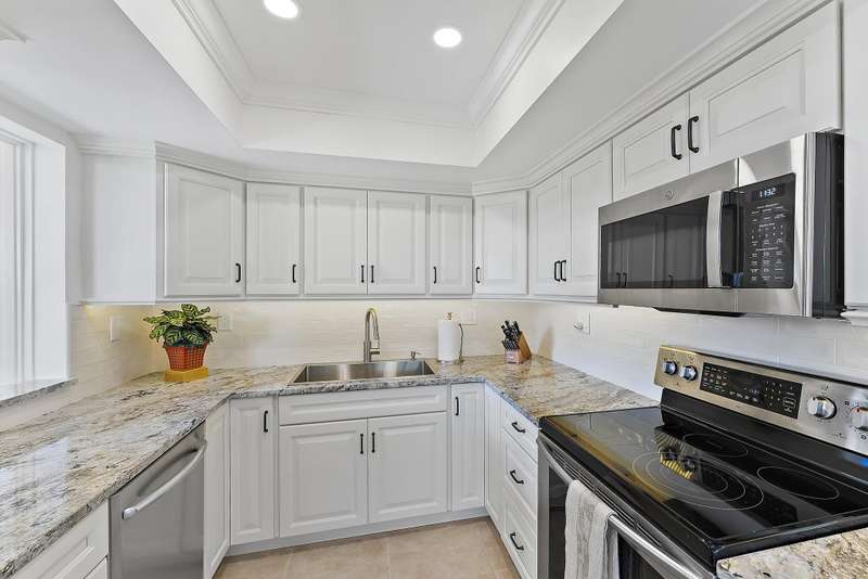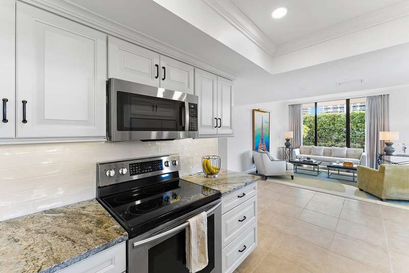 Looking for a condo that feels more like a home? Come see this amazing ground level unit in Cove Tower West at Old Port Cove. Walk directly from your car to the unit, and avoid the elevator. Once inside, floor to ceiling glass offers amazing views and a ''light and bright'' ambience from the southern rear exposure. The kitchen features new cabinets and counter tops. Step onto your private patio and watch the boats sail by across a wide lawn that separates you from the water. Old Port Cove has 24/7 manned and gated security, a private restaurant on-site, and Cove Tower has a community pool, clubhouse over looking the water, and lobby with secure entry.