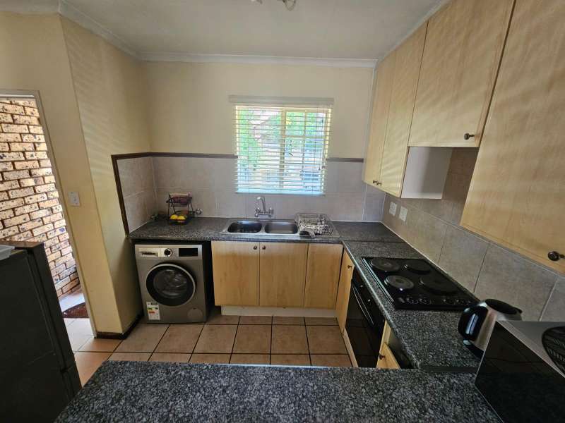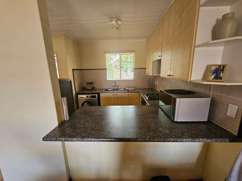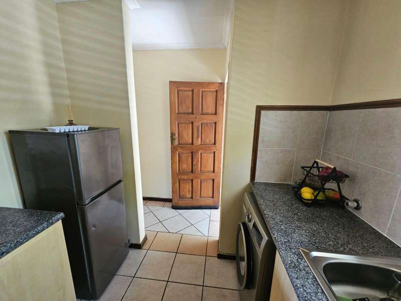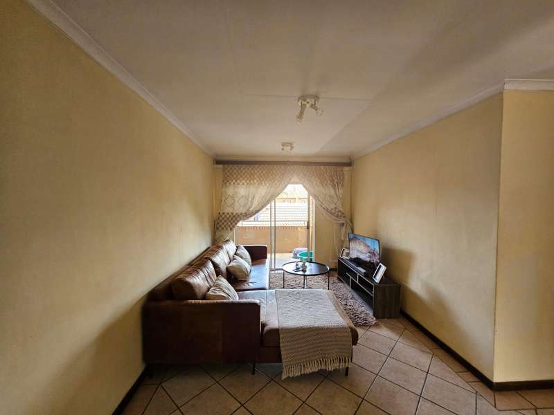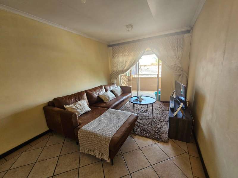 This modern 2-bedroom corner apartment, located on the first floor, is situated in the well-maintained Sand Stone Estate, Monavoni. The unit is in excellent condition, featuring stylish, full tiling throughout. The contemporary kitchen includes a convenient breakfast nook, while the cozy living room opens onto a private balcony. Both bedrooms are equipped with built-in cupboards, and the spacious bathroom offers all the essential amenities. Parking is hassle-free with a single garage and additional visitors' parking available. Whether you're an investor seeking a high-value property or a first-time homebuyer in search of a secure, low-maintenance "lock-up-and-go" unit, this is an opportunity you won't want to miss. The estate offers 24-hour security for peace of mind, and the monthly HOA levy is R700. Electricity is pre-paid for your convenience. Schedule a viewing today to see all that this property has to offer!