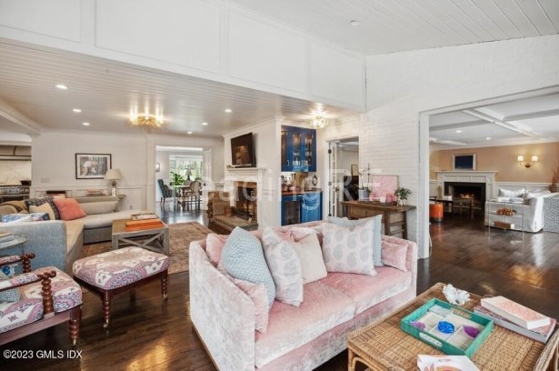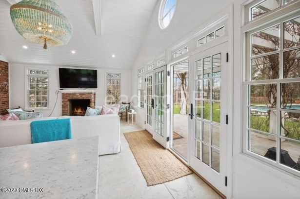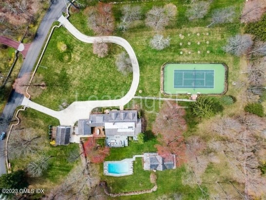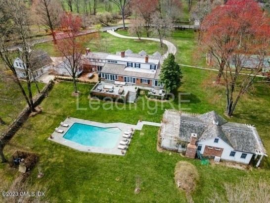 Welcome to your private retreat—an idyllic country oasis set on over 4 lush acres with mature plantings, flowering trees, and serene landscape. This extraordinary property offers a unique blend of luxury, comfort, and versatility, with multiple living spaces designed for both relaxation and entertainment. The main house features a high-end kitchen that seamlessly flows into the family room, complete with a wet bar. French doors open onto the expansive patio and pool area, perfect for indoor-outdoor living. A more formal living room offers a cozy fireplace, breathtaking views, and additional access to the beautifully landscaped yard. The first-floor primary suite is a sanctuary, boasting its own fireplace and French doors leading to the yard. Separate from the main residence, the barn has been thoughtfully designed to serve as a guest suite or a stylish home office. It includes a kitchenette and a full bathroom, offering privacy and flexibility for guests or remote work. The pool house elevates guest accommodations to the next level, functioning as a complete guest home. It features a bedroom, full bathroom, a fully equipped kitchen, a cozy living area with fireplace, a gym, and even a bunk room for additional sleeping space. Whether you're entertaining, hosting guests, or simply enjoying a peaceful lifestyle, this property is the perfect blend of charm, and easy living.
