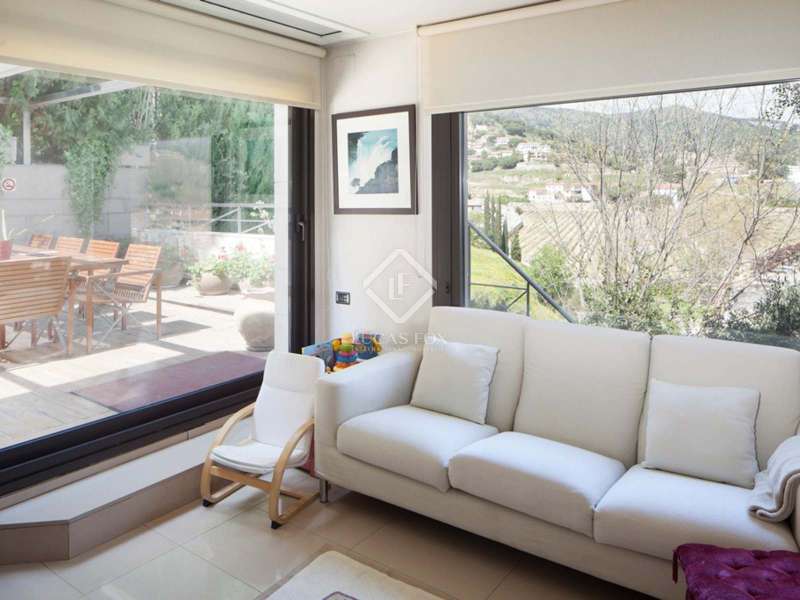 This beautiful designer 7-bedroom home for sale in Maresme is situated in the charming village of Alella - one of the most sought-after areas in the region. It has been constructed using high quality exterior and interior finishes and with top-of-the-range appliances. The house was built and designed by the current owner, with a unique layout. There are large windows which allow plenty of natural light, and which give wonderful views of the surrounding vicinity and sea. The garage is located in the basement with parking for up to 4/5 cars. The outside space includes a fantastic pool, decking and outdoor dining area.