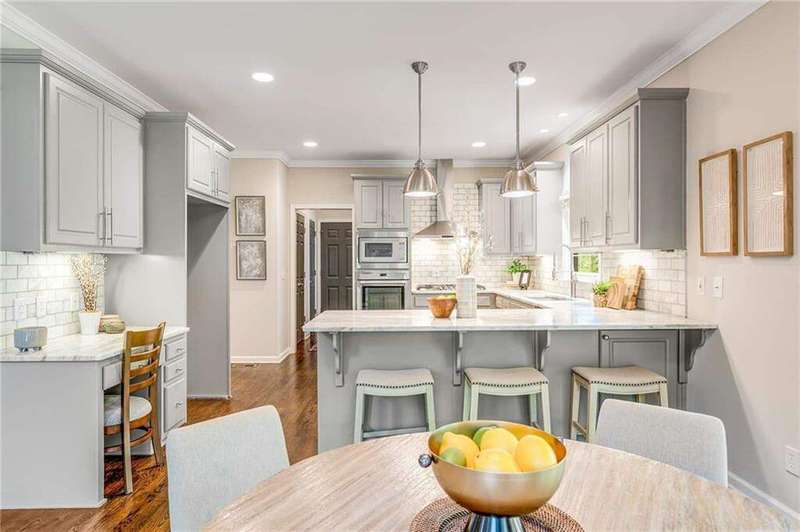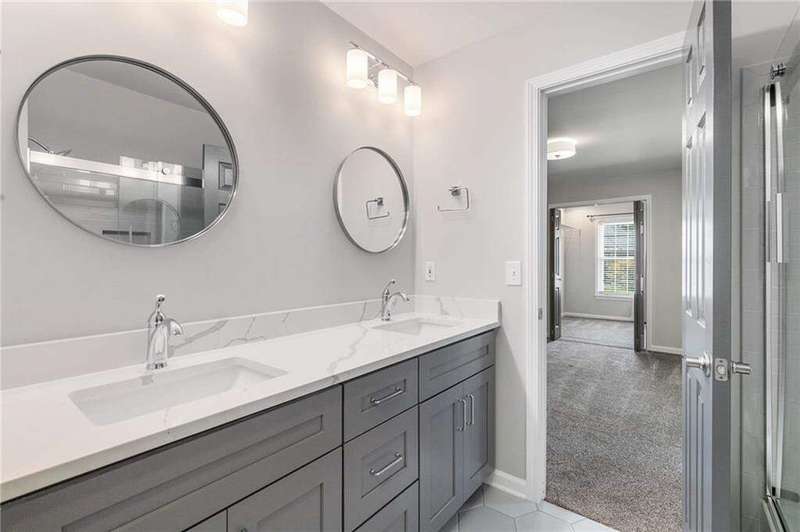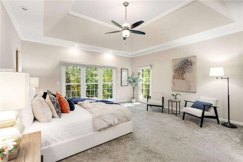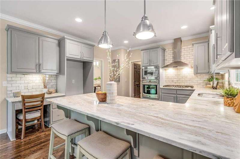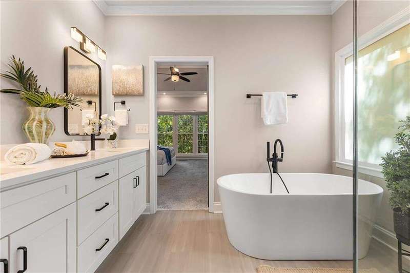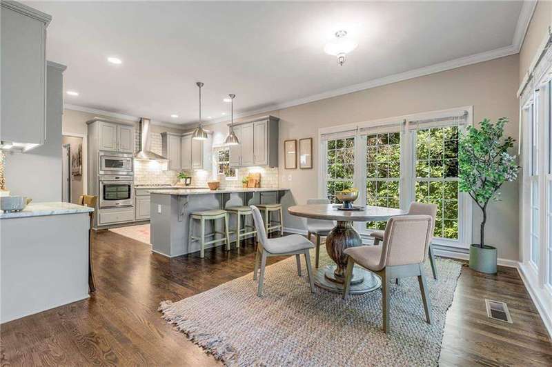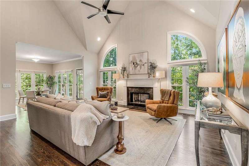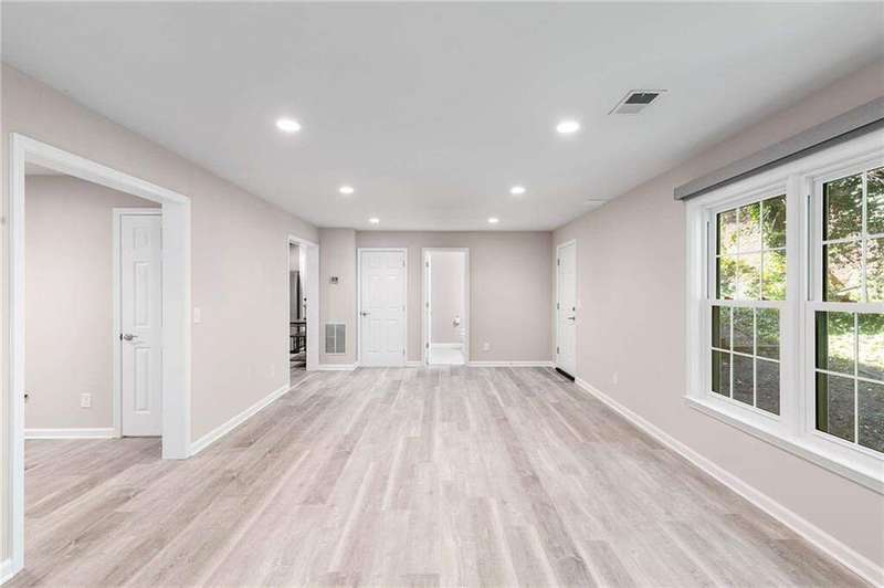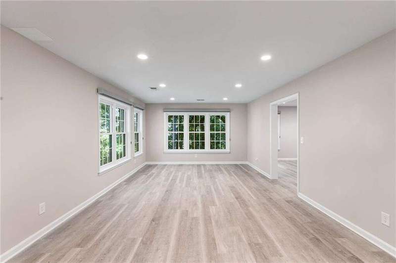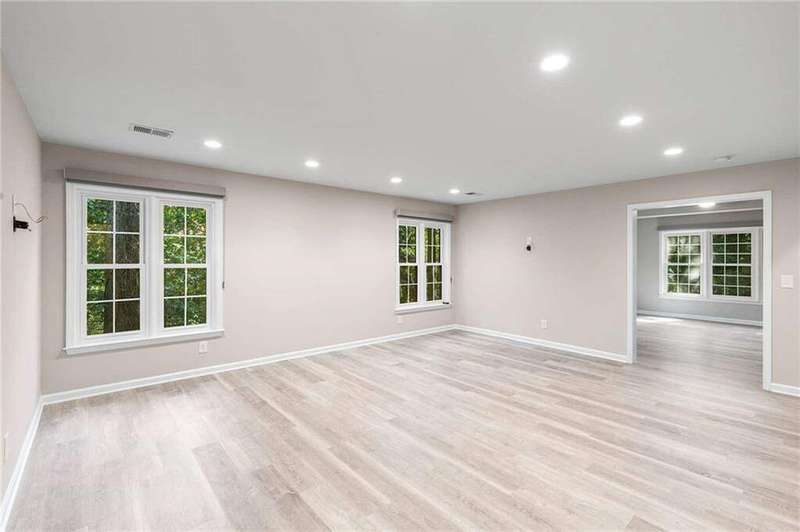 Privately set at the end of a quiet cul-de-sac in Smyrna's coveted Austin Lake swim/tennis community, this refined 4BR / 2 full & 2 half-bath traditional showcases thoughtful updates and turnkey comfort. Curb appeal is elevated by new gutters with gutter guards and updated windows throughout, while a brand-new main-level deck frames serene, wooded views. Inside, beautiful hardwood floors and fresh carpet anchor an airy living room with a cathedral ceiling that opens to a sun-splashed breakfast/sunroom. The beautifully updated kitchen blends modern finishes with generous storage and a breakfast bar ideal for everyday living and effortless entertaining. Custom blinds lend a tailored finish, and hardwired Ethernet to the living room, as well as an upstairs bedroom and the basement, supports seamless work-and-stream capability. The owner's suite on the main is a true retreat, featuring heated floors, an oversized shower, double vanity, a beautiful standalone tub, and an oversized walk-in custom closet. A main-level powder room adds convenience. Upstairs, two generous bedrooms share an updated Jack-and-Jill full bath. The terrace level is designed for versatility with 3 sides of daylight-complete with a finished media room, a convenient half bath, hardwired Ethernet, and a kitchen, perfect for game day, long-term guests, or multi-generational living,. Comfort is enhanced by newer HVAC systems, and peace of mind comes from all new water pipes replaced within the last year. Minutes to The Battery, Smyrna Market Village, parks, and major corridors-and zoned for King Springs, Griffin, and Campbell. 4222 Terrace Court SE delivers the coveted Austin Lake lifestyle with a luxury finish and comprehensive system upgrades already in place.