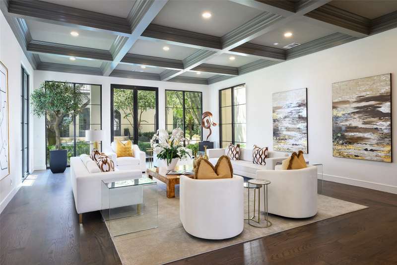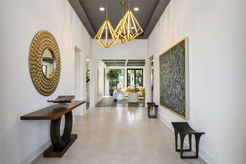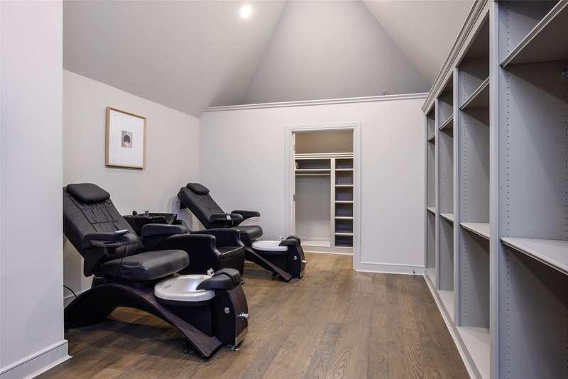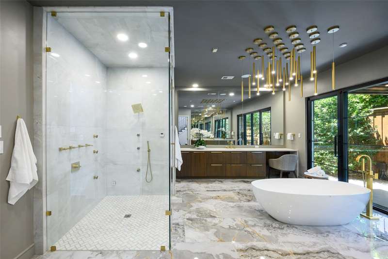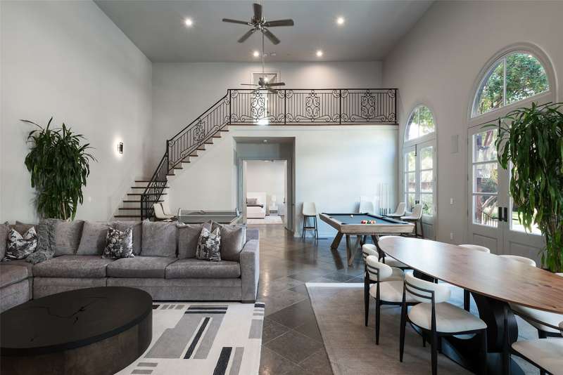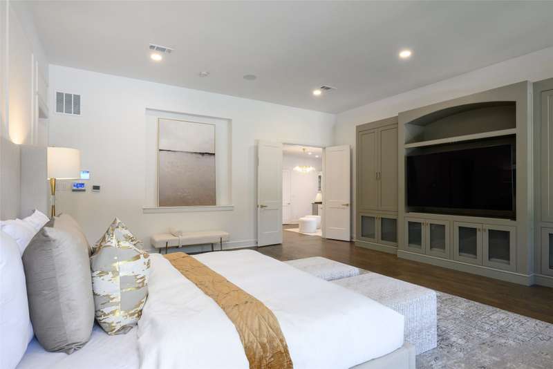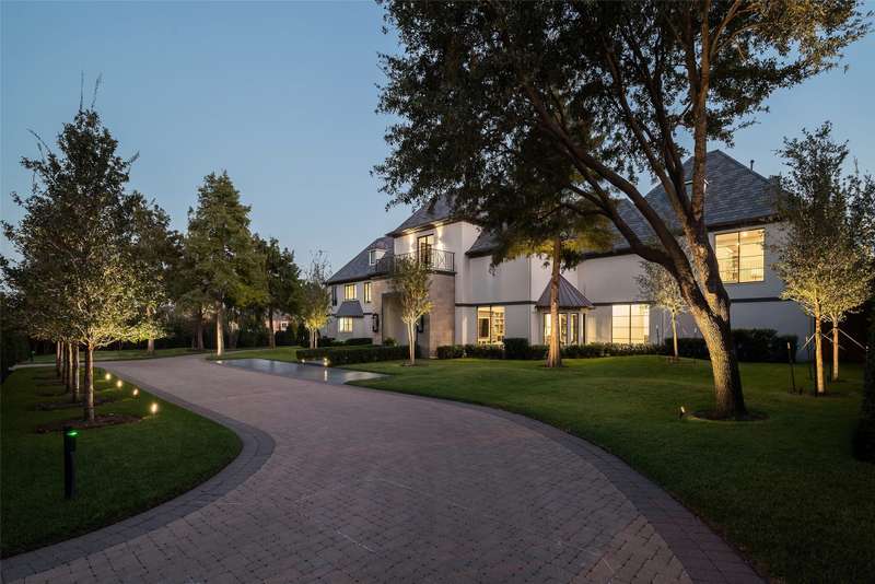 The Primary Suite has just been completely redesigned and updated. Beautifully reimagined and expanded upon in 2023-2024, this spectacular estate property is located in the sought after Strait Lane corridor of Preston Hollow. This luxury residence sits on 1.2 lushly landscaped acres gated for security and privacy, the home offers a stunningly architecturally significant 2,300 sqft pool house complete with its own living and dining areas with vaulted ceilings, two beds and two baths. A covered terrace offers a large outdoor living area with views of the 22' pool, sports court offering pickle ball as well as basketball, putting green, and grassy lawns. The main home is an entertainer's dream which remains a perfect home for an active family life. Interior spaces are flooded with natural light with expansive walls and high ceilings. First floor includes a grand foyer, formal living and dining with temperature controlled wine room, media room and family room or lounge. Gourmet kitchen includes a second catering kitchen, butler's closet and walk-in pantry. Dual level primary suite features a private outdoor spa. Four secondary bedrooms are upstairs, including accommodations and extra entertaining space. Situated at the end of Lennox Lane offering beautiful views and a dramatic approach, with quick access to Dallas' top schools, shopping and dining.