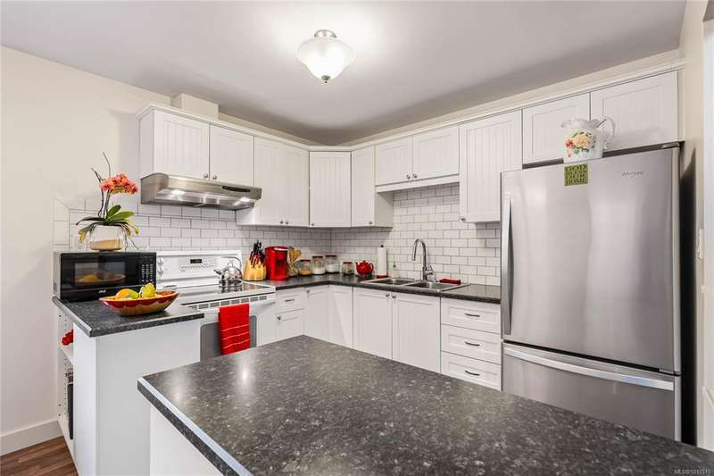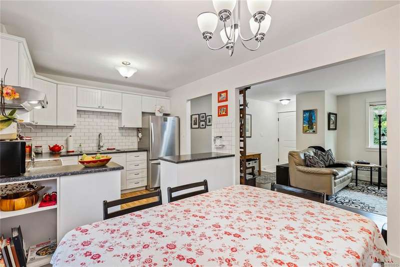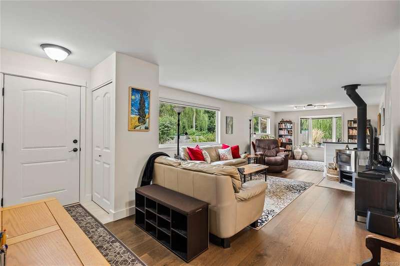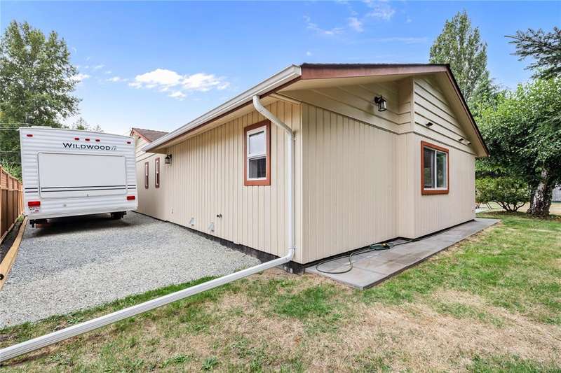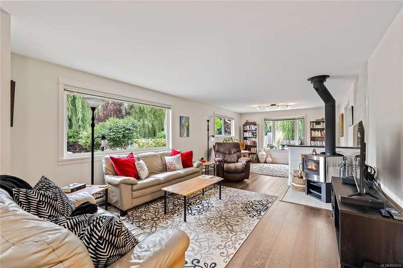 This beautifully updated, sun-filled rancher offers the perfect blend of comfort, style, and walkable convenience, all on an easy-care, level lot. With nearly 2,000 sq ft of one-level living, this spacious 4-bedroom, 2-bathroom home is ideal for families, retirees, or even B&B potential. Step inside to find airy, light-filled rooms, a pretty white kitchen, and a chic, efficient wood stove that adds warmth and charm. The dreamy XL primary suite features a private ensuite, large walk-in closet and plenty of room to relax. The spa-style main bathroom offers a soothing retreat, while clever built-in storage adds everyday ease. Out back, enjoy privacy and sunshine in the fully fenced yard (3 sides), complete with an expansive patio, which is perfect for entertaining or quiet outdoor living. Bonus features include two RV hookups, a woodshed and plenty of onsite parking. Move-in ready with nothing to do but unpack and enjoy your walk everywhere lifestyle!
