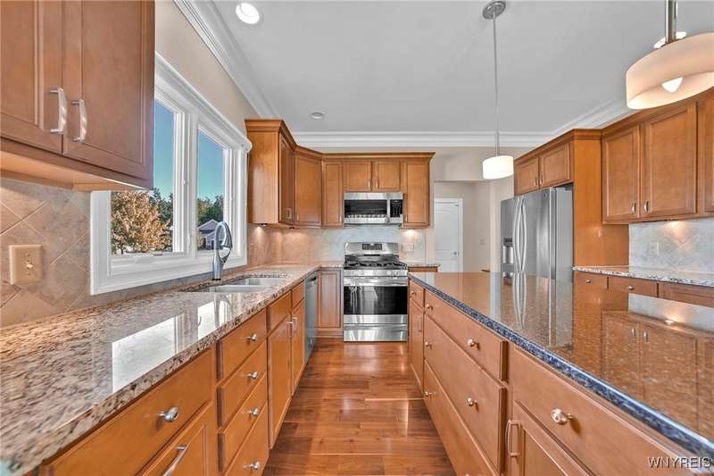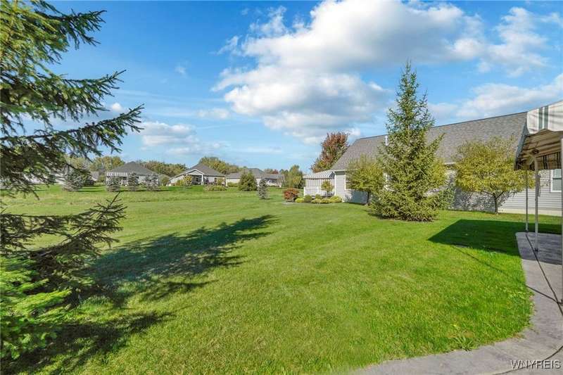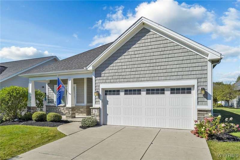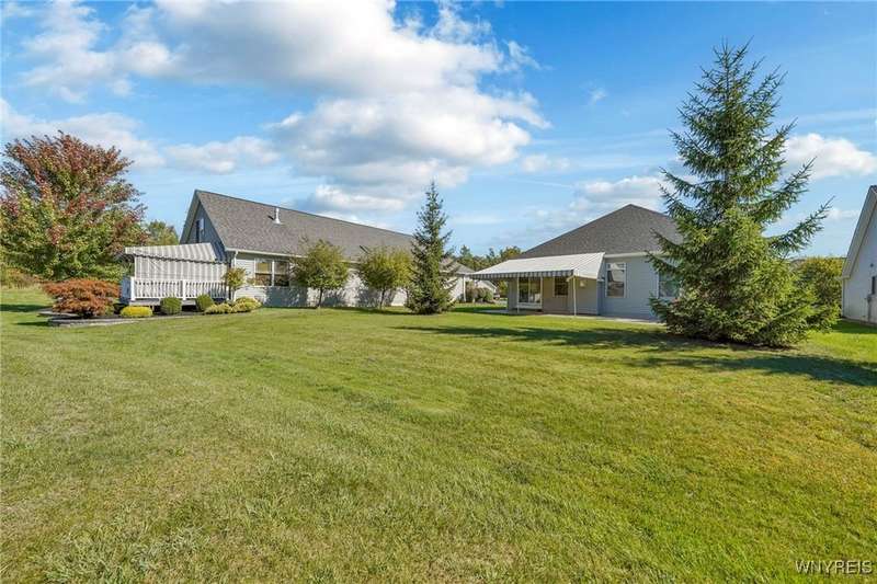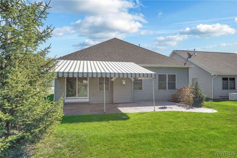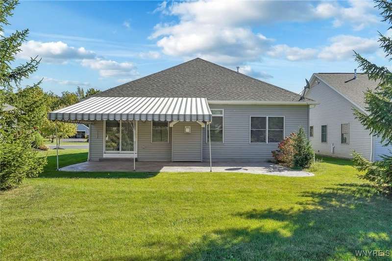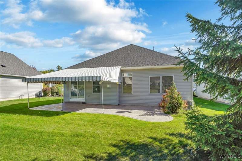 Hamburg's premier patio home development! Located within walking distance of the village of Hamburg this private cul-de-sac features a lovely pond and plenty of greenspace. With its 9'ceilings, formal foyer entry, elegant crown molding, granite kitchen and FF Laundry this 2 bedroom "Crestwood" unit is crisp and move-in ready! Perfect for the downsize folks or the work-from-home professional. Spend a few minutes under the awning enjoying the back patio and you'll feel what sets the Stonebridge Patio Homes apart. The comparatively affordable HOA includes snow removal in driveway and up to your front door, landscaping and lawn care, opening and closing of the sprinkler system, payment of water and trash. Showings being immediately, offers reviewed as they come in and a choice will be made as soon as 12 noon October 8th.