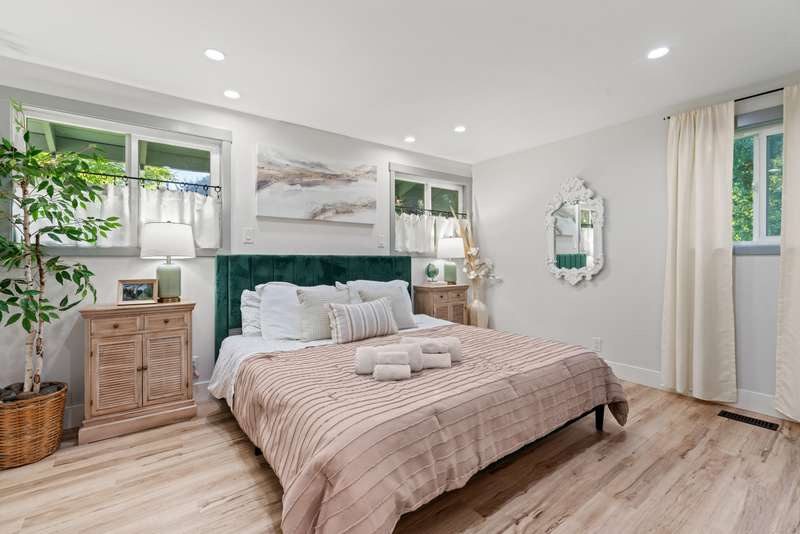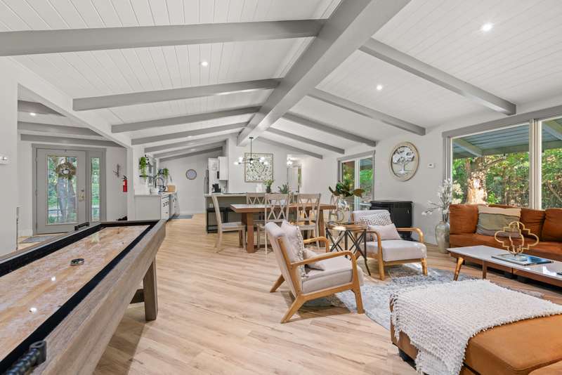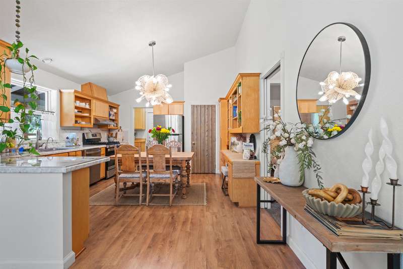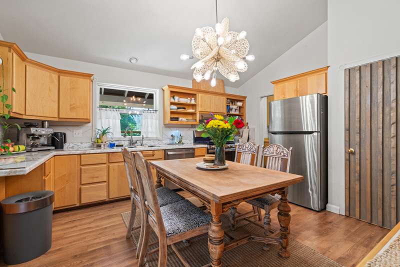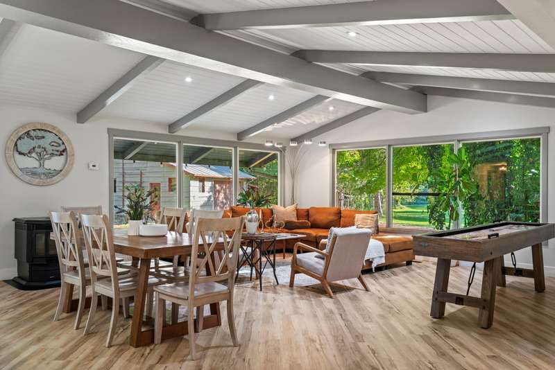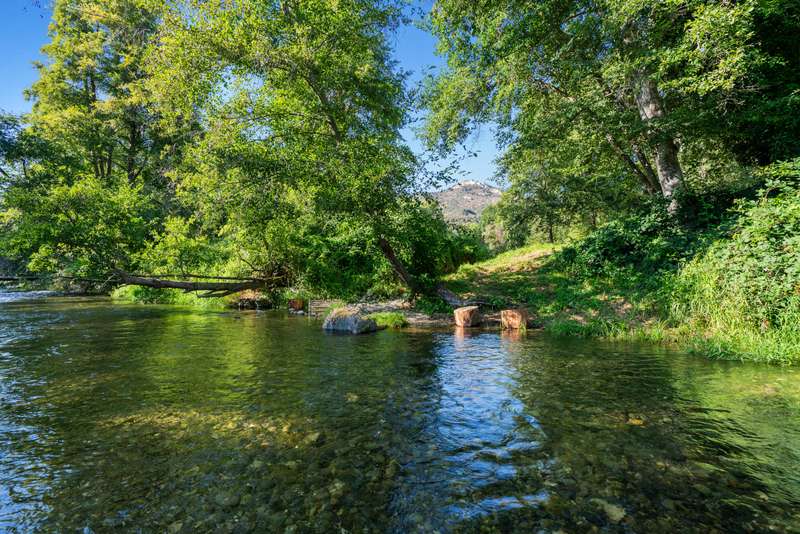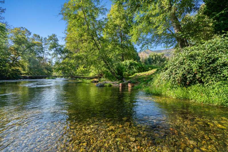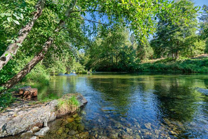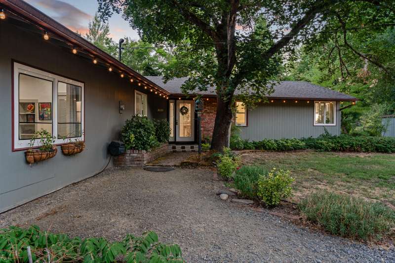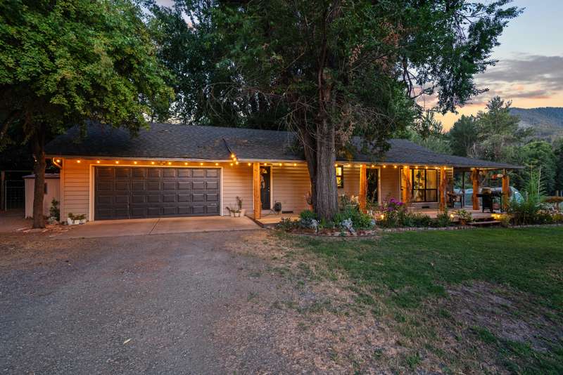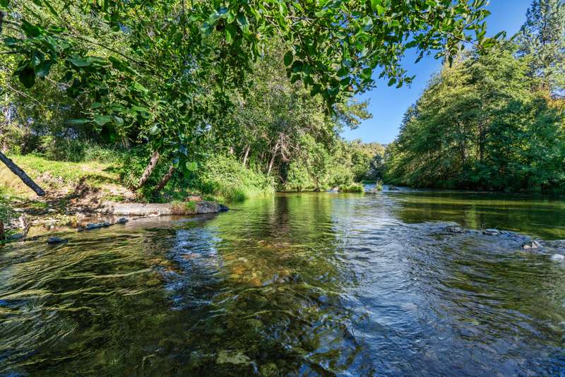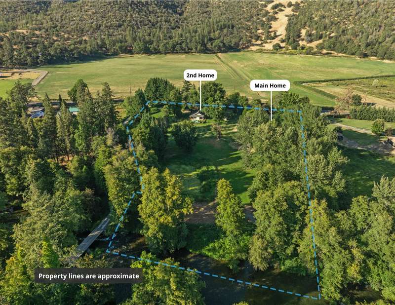 Set on 4.55± acres along the Applegate River, this park-like retreat features level lawns framed by mature trees, small pond, & +/-200 feet of river frontage - an inviting backdrop for gatherings, relaxation, & time on the water. Two legal homes, barn, & chicken coop blend lifestyle charm w/utility. The updated main home (~2,024 SF) comes fully furnished & offers a vaulted great room w/exposed beams, & newly remodeled kitchen w/large island, abundant counter space, & sleek, modern design. Three bedrooms & three baths are complemented by a versatile bonus sleeping/game room. Outdoor living is private w/a large deck, patio, & hot tub overlooking the lawns that stretch to the river. A detached two-car garage sits beside the home. The second home (~1,147 SF) features vaulted ceilings, an eat-in kitchen w/pantry & built-ins, two bedrooms, 1.5 baths (main w/separate soaking tub & shower), a two-car attached garage, & a covered deck. Minutes to Red Lily Vineyards & close to Jacksonville.