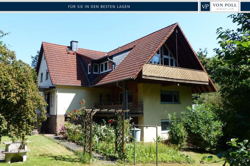 For sale is a spacious two-family house with a living space of approx. 230 m² and a plot area of approx. 1198 m². Built in 1954, the property presents itself in a well-kept condition, based on the last modernization, which was carried out in 1996. The property is ideal for families who value a comprehensive use of space and, with its eight rooms, offers a wide range of possible uses. The house is divided into ground floor, second floor and basement and has six bedrooms and two bathrooms. The room layout is particularly interesting thanks to the split-level design and allows the living areas to be arranged in a variety of ways. On the first floor there is an inviting entrance area, the hallway, a functional kitchen, a dining room and a spacious living room. Two bedrooms offer plenty of space for guests or family members. From here, two balconies lead outside, offering a beautiful view over the surrounding property. The first floor is rounded off by a bathroom. The upper floor offers another living unit with a hallway, kitchen and a practical pantry. The bathroom on this level is ideal for a larger family or rental parties. The existing office is suitable for professional purposes or as a place to retire. Three additional bedrooms and a dressing room offer a wide range of possible uses. Particularly noteworthy is the spacious attic studio, which offers access to a further balcony and is ideal as a retreat or for creative activities. The basement of the property comprises several cellar rooms, a boiler room, a utility room and a hobby room that provides access to the spacious garden. The garden area also offers a permanently installed barbecue area, which invites you to linger and socialize. Three garages complete the offer and provide ample parking space for vehicles or additional storage space. The two-family home offers numerous advantages, including the generous room layout, the various possible uses and a large plot that allows for a variety of outdoor activities. It is ideal for families or several generations and also offers an attractive opportunity for partial rental. This property is an ideal opportunity for buyers looking for a well-maintained home with potential for personal customization. For further information and to arrange a viewing appointment, please do not hesitate to contact us.
