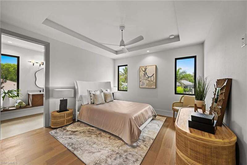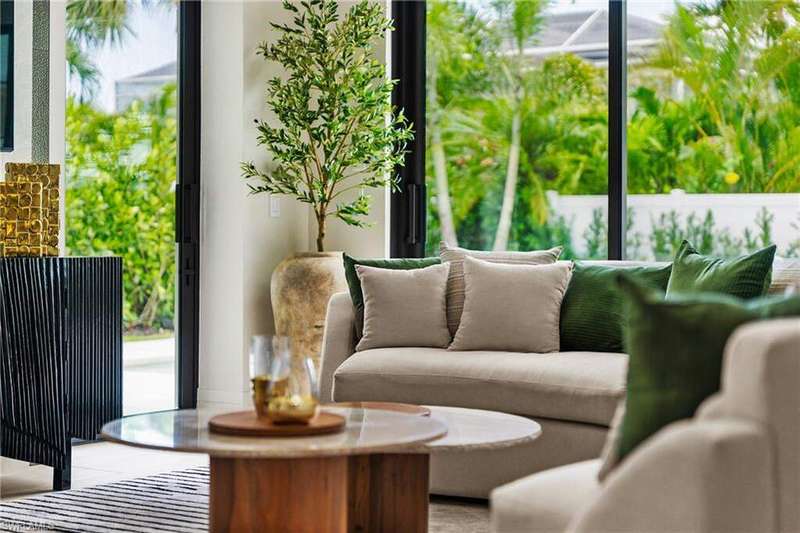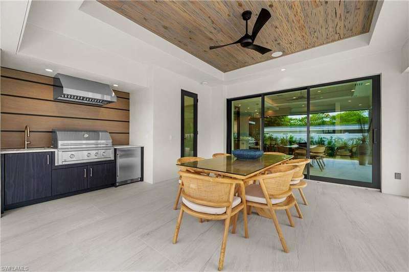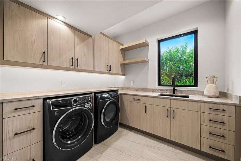 Renowned award winning custom home builder Sea Castle Development partnered with architect Ashmore Design to bring together a distinct offering in Lake Park unlike any other. Effortlessly blending elegance with livability, this extraordinary residence offers refined comfort across 3,766 square feet of sun-filled living space. This nature inspired home features an open-concept floor plan, soaring ceilings, and curated designer finishes throughout every inch. The chef's kitchen is outfitted with a top-tier Thermador appliance package, while the summer kitchen boasts premium XO appliances-ideal for seamless indoor-outdoor entertaining. With natural elements present throughout the home, the backyard oasis lures you with its charm. Featuring multiple entertaining areas, one being shaded by a motorized pergola & the other fitted with electric screens & shutters - there is more than enough space for any type of gathering. The first-floor primary suite delivers comfort and convenience, while upstairs, a bedroom and two additional en-suites surround the spacious loft and a private balcony. Additional highlights include an elevator, hurricane impact windows and doors, engineered white oak Real Wood flooring, stunning designer tile work, sonos sound system throughout, propane heated saltwater pool / spa, & 24kw generator with automatic transfer switch. Offered fully furnished, this exceptional home is move-in ready and ideally located just minutes from Naples' white-sand beaches, shopping and world class dining. Ready for immediate occupancy.