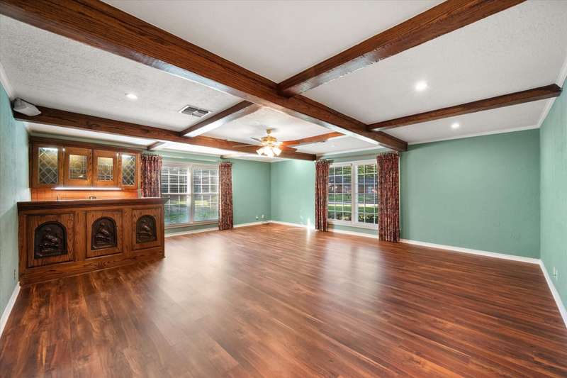 This inviting 4-bedroom, 3-bathroom home offers the perfect combination of comfort, space, and thoughtful details throughout. From the moment you walk in, youll notice the warm and welcoming atmosphere. The cozy den features a wood-burning fireplace, creating a perfect spot to relax on chilly evenings, while the living room includes a wet bar that makes entertaining guests a breeze. A formal dining room with large windows allows natural light to flood the space, making it ideal for both everyday meals and special occasions. The generously sized kitchen offers ample counter space and storage, with an adjoining breakfast room thats perfect for casual dining and morning coffee. The primary suite is a true retreat, complete with its own ensuite bathroom and a custom walk-in closet designed with organization in mind. The additional bedrooms are spacious, with the second bedroom offering built-ins that add character and functionality. Outdoor living is just as enjoyable, with a large deck overlooking the backyardperfect for hosting gatherings, barbecues, or simply enjoying a quiet evening. A sprinkler system keeps the yard green and easy to maintain, while the garage includes a dedicated workshop space for hobbies, projects, or extra storage. With a layout designed for both daily living and entertaining, this home provides the space and features to fit a variety of lifestyles. Whether youre looking for cozy family nights, room to host friends, or a backyard thats ready for relaxation, this property has it all.