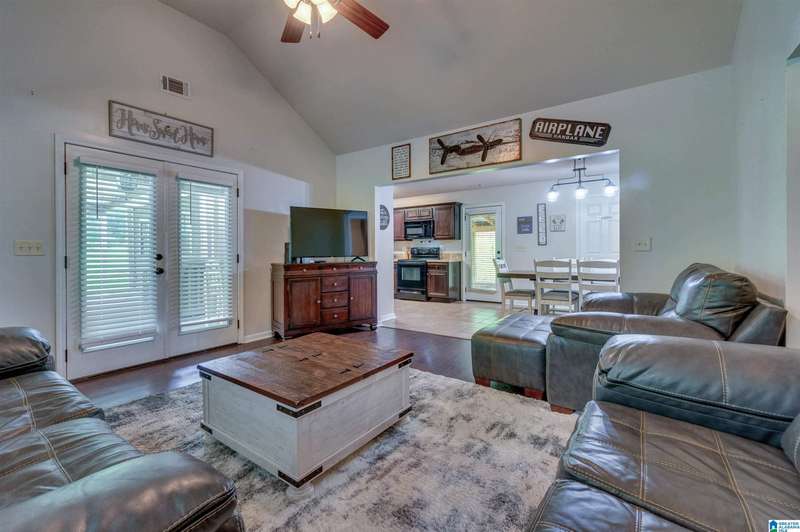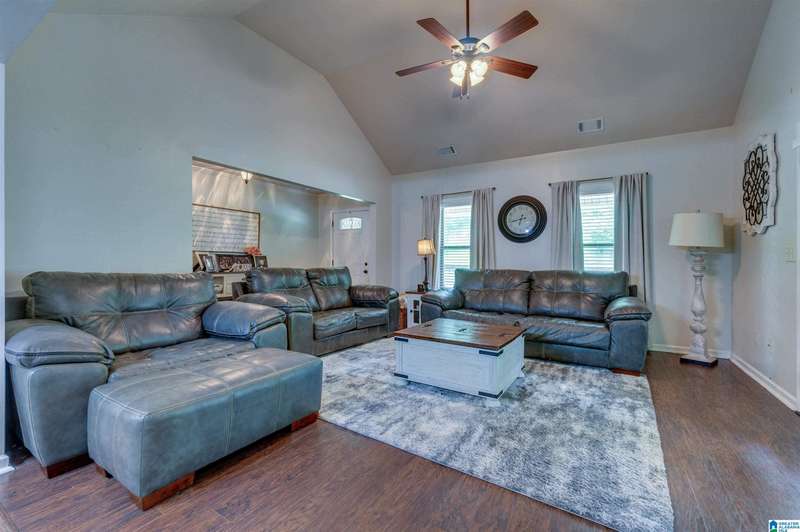 Nestled in the heart of Thorsby, Alabama, 52 Julia Cir is a beautiful home that offers 3 bedrooms and 2 bathrooms, featuring laminate vinyl flooring and carpeted bedrooms. The master suite is spacious, complete with a walk-in closet and a master bathroom with dual vanities. The exterior boasts a covered L-shaped front porch, perfect for outdoor relaxation, while the fenced-in backyard includes two storage buildings, one with electricity.