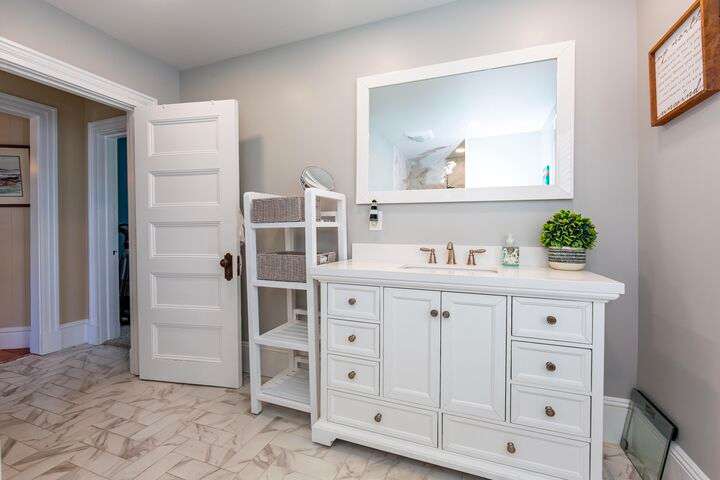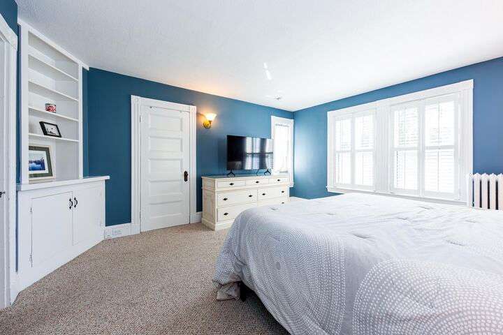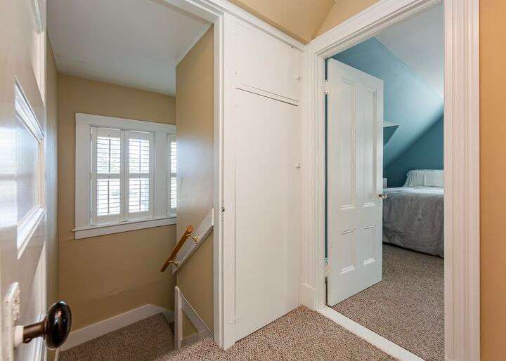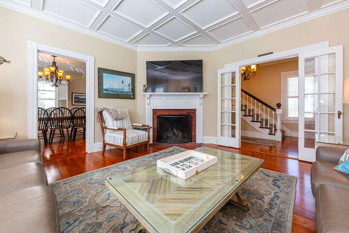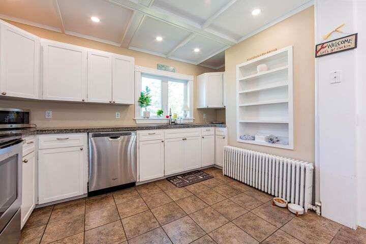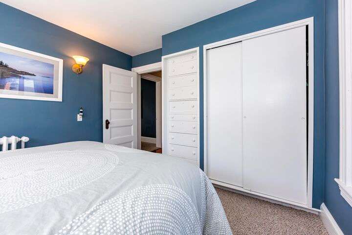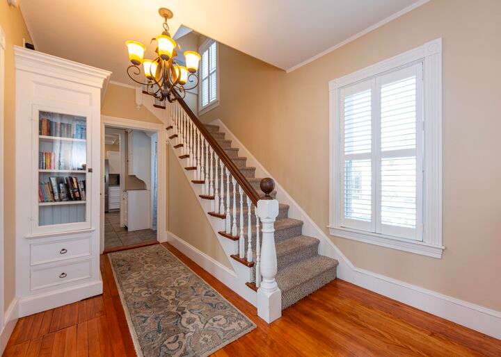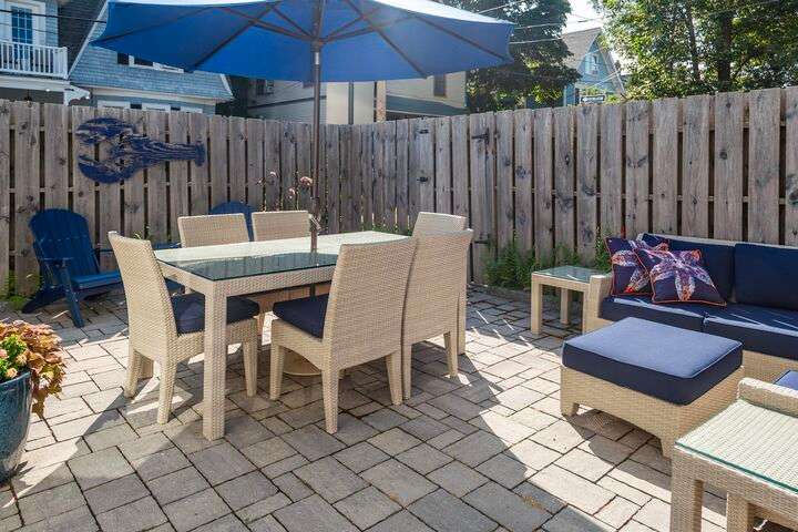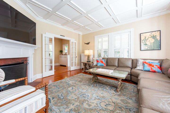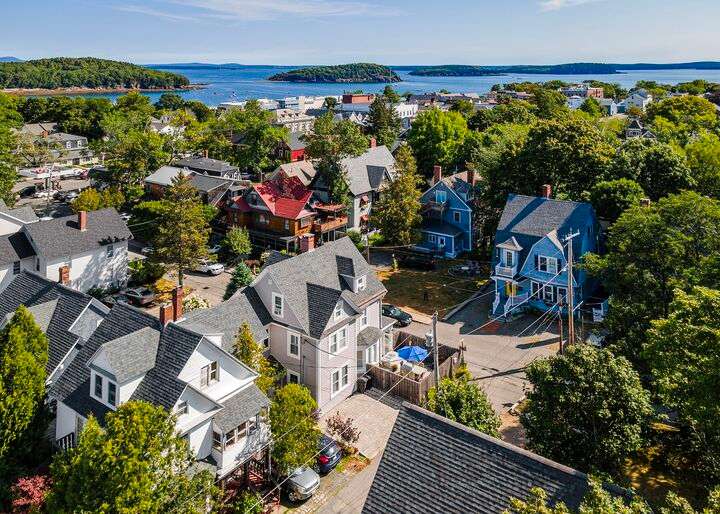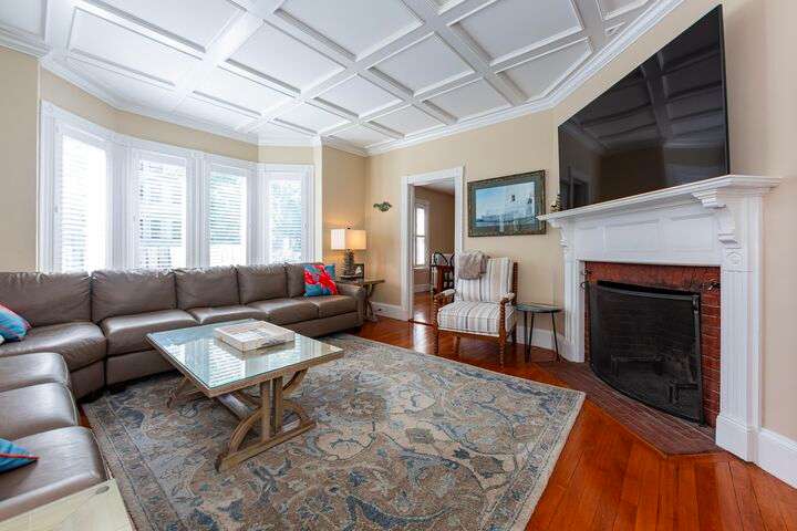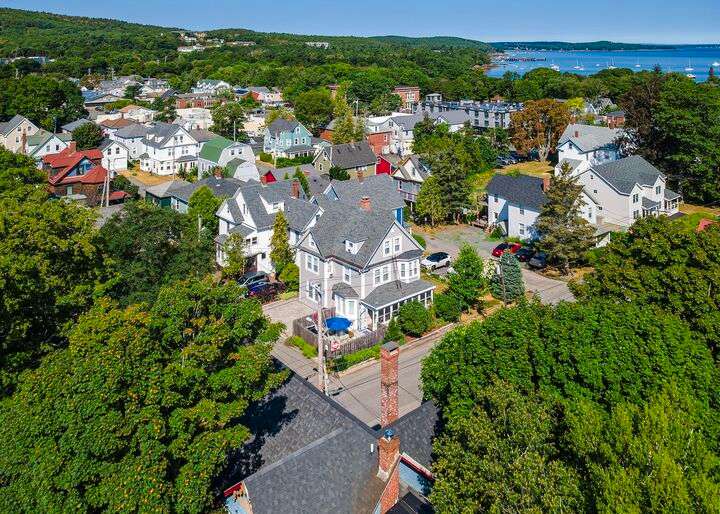 Located in the heart of the village, this stately 5-bedroom, 2.5-bath home blends the timeless character of its early 1900s origins with thoughtful modern updates for comfort and efficiency. Inside, you'll find gorgeous wood floors, a wood-burning fireplace, and refined woodwork, all enhanced by coffered ceilings and fresh paint. The inviting enclosed front porch is the perfect spot to relax after a day exploring Acadia. The second floor offers three bedrooms and a beautifully renovated full bath and laundry room, while the third floor provides two spacious bedrooms and another updated full bath—plenty of room for family and guests. The enclosed back patio creates a private outdoor retreat, ideal for gathering with friends. Recent improvements include a new roof, updated bathrooms, plaster replacement, plantation shutters throughout, outdoor landscaping hardscaping and more, making this home truly turnkey. Offering two parking spaces. Enjoy the ultimate convenience of downtown living—leave the car parked and stroll to shops, dining, the waterfront, and all that Bar Harbor provides. Offered furnished with a few exceptions.