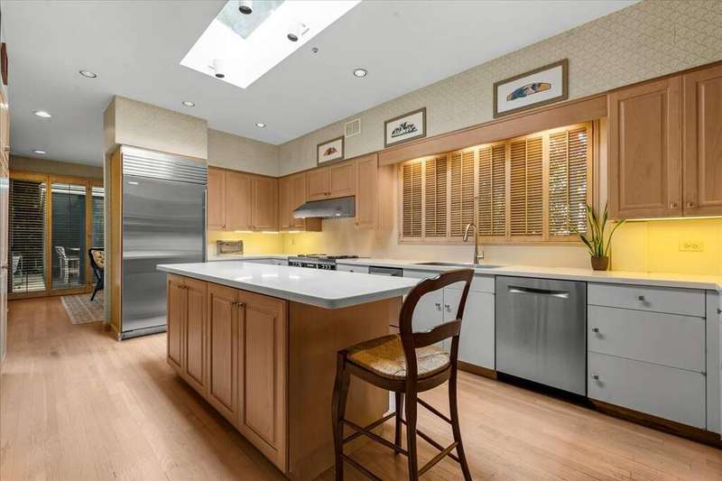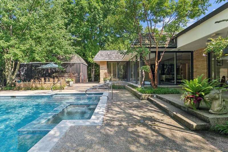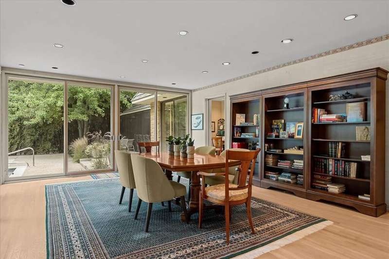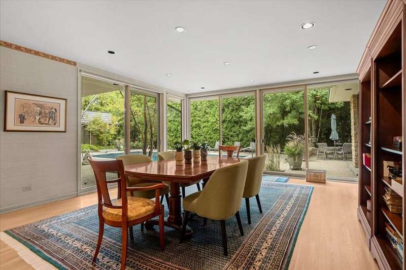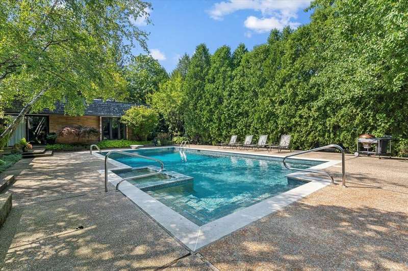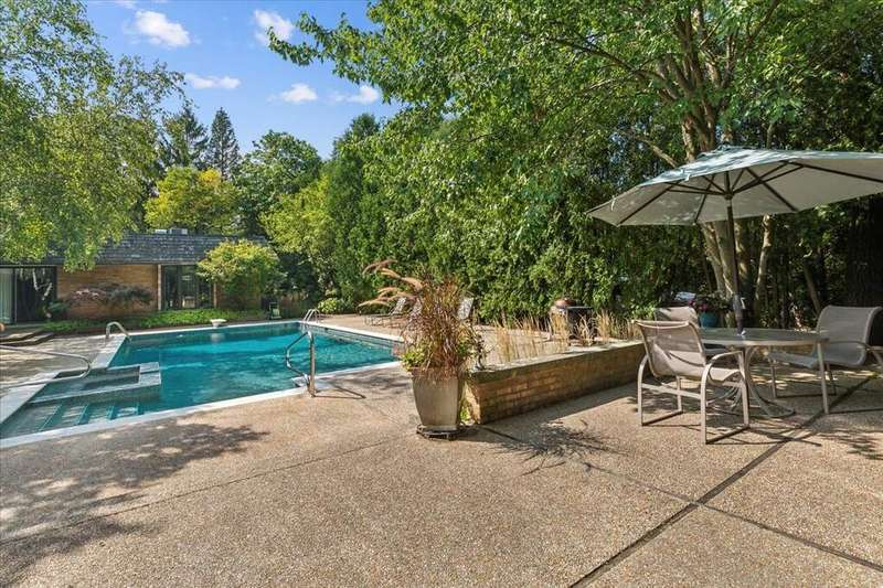 Welcome to this rare and sought-after ranch nestled on a beautifully landscaped 1/2-acre lot on an intimate, tree-lined street in east Glencoe- just steps from the lake with private beach access rights. This impressive residence features an open floor plan with generous proportions and exceptional flow - perfect for everyday living and gracious entertaining. From the moment you step into the expansive foyer you're welcomed by a sun-drenched Living Room with a wall of windows framing views of the lushly landscaped backyard and beautiful pool with a built-in hot tub. Thoughtful architectural details include high ceilings, skylights and a two-sided flue-less gas fireplace shared by the Living Room and Family Room. The Dining Room, Breakfast Room and Primary Bedroom all offer serene views and direct access to the backyard creating a seamless indoor-outdoor connection. The heart of the home is the oversized Kitchen, outfitted with stainless steel appliances, a large center island and abundant cabinetry. Adjacent, the spacious Breakfast Room opens to a screened outdoor kitchen and patio area- an ideal setup for al fresco dining and summer entertaining. A true standout, the exceptionally large Butler's pantry offers extensive storage and prep space, adding to the home's already impressive functionality. Generous closets and storage are found throughout. All bedrooms have an en-suite bath. 2025 - New Composite Roof on house and Pool house & New Washer & Dryer; - 2023 - New Driveway and Front Landscaping, Pool Heater and 2 Twin Furnaces for main part of the house; - 2022 New Sub-Zero Refrigerator and 75 gallon Hot Water Heater. The Pool was resurfaced and re-tiled about 8 years ago. The washer and dryer are in the 4th bedroom and probably could be closed off if someone wanted to do that. The room is spacious, has a closet and attached full bath. The property is being SOLD AS IS. With its ideal layout and unbeatable location just steps from the lake, this special home is a rare opportunity in East Glencoe.