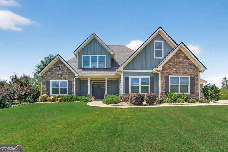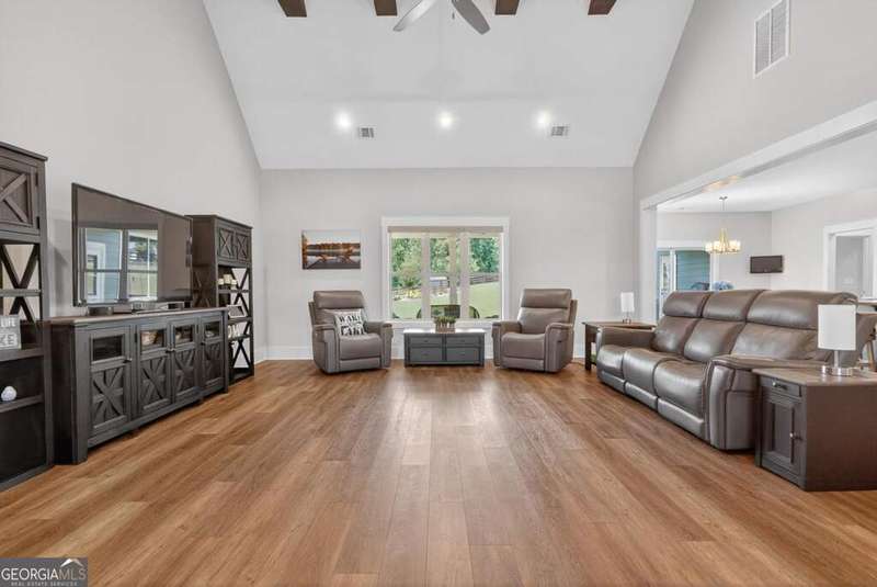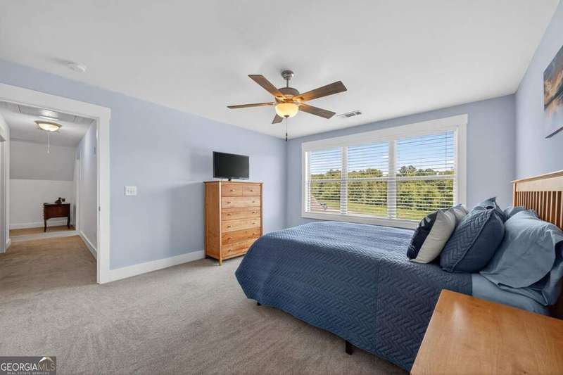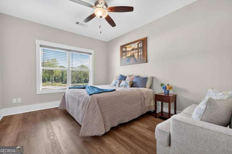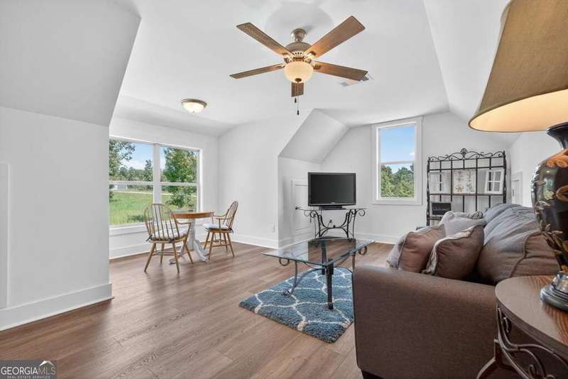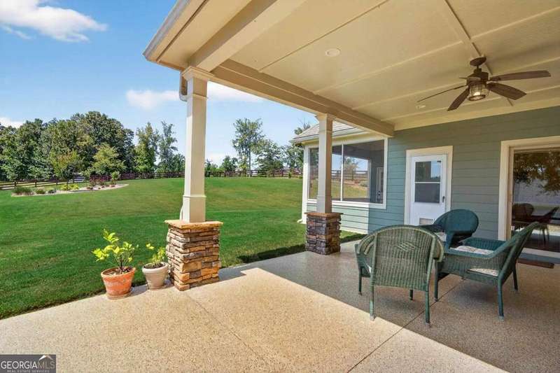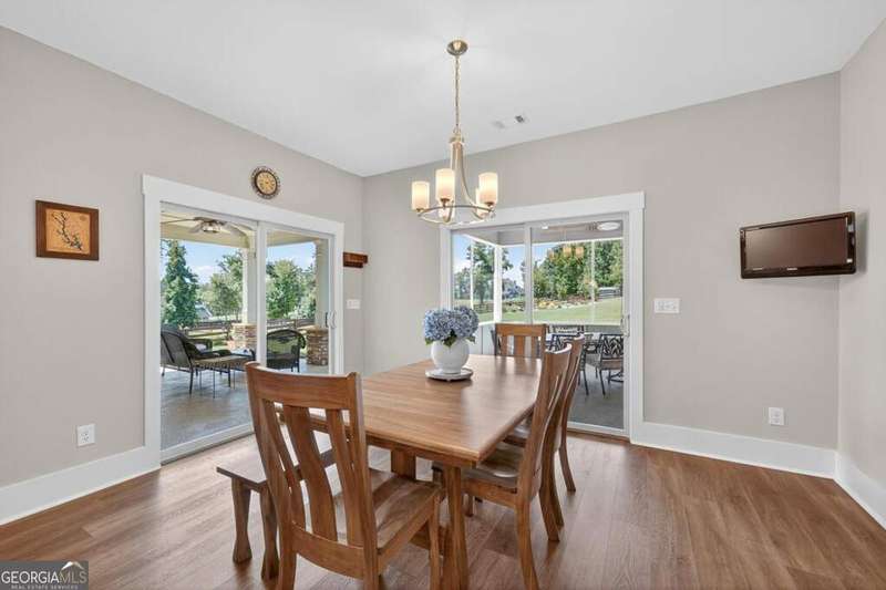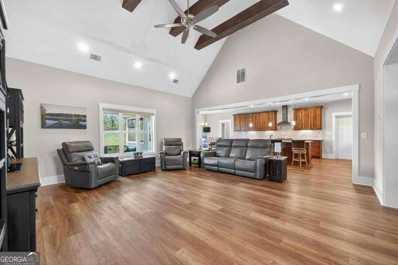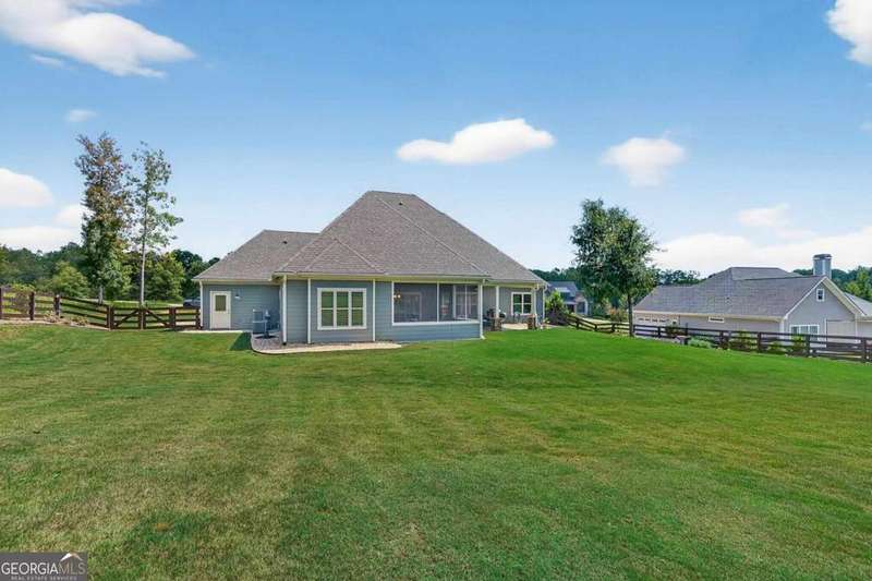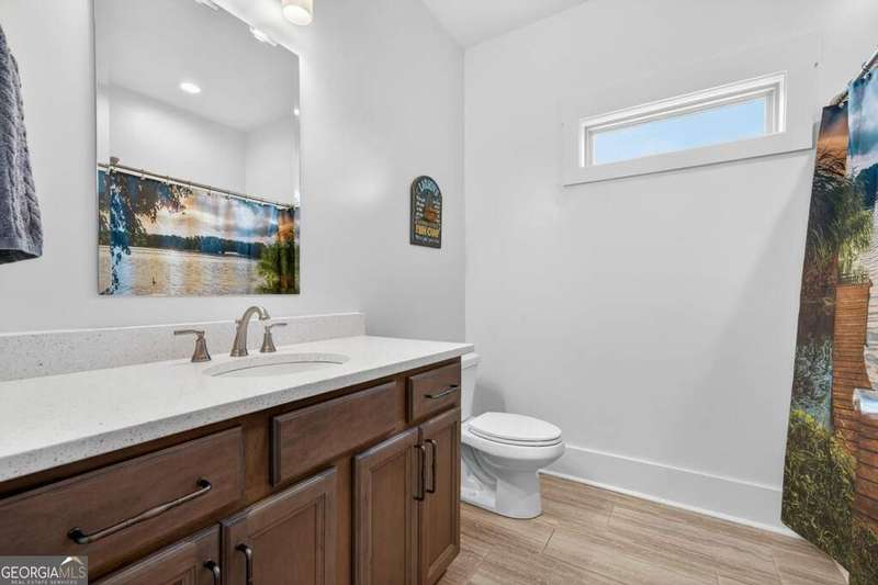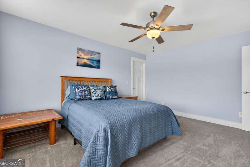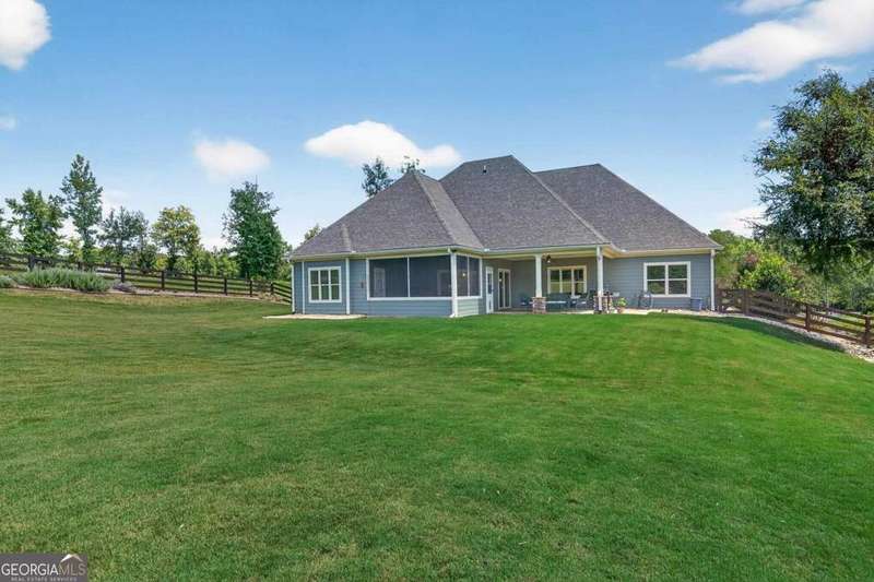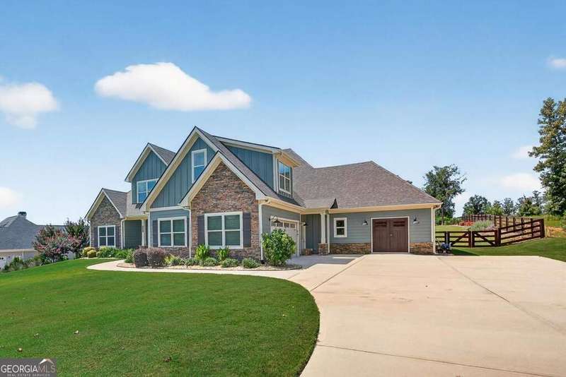 Discover Your Dream Home at Lake Oconee! Experience unparalleled craftsmanship and thoughtful design in this stunning 2021 custom-built home, nestled on a generous 1.23-acre lot within the gated Bayside community. Privately situated yet close to Lake Oconee's vibrant amenities, this residence boasts seasonal lake views and a deeded boat slip, providing a perfect balance of privacy and access to outdoor adventures. Step inside the home to a spacious great room featuring vaulted ceilings adorned with decorative beams and expansive windows that fill the space with natural light. The open-concept layout seamlessly connects the great room to the gourmet kitchen, where a magnificent 10-foot island with a farmhouse sink takes center stage. Rich hickory cabinetry offers ample storage, complemented by elegant quartzite countertops and a vented range hood for functional beauty. A well-appointed walk-in pantry enhances everyday convenience. The main-level primary suite is a serene retreat, complete with vaulted ceilings, direct access to a screened porch, and a generous walk-in closet. The luxurious ensuite bathroom features a large walk-in shower, a stylish quartz-topped double sink vanity, and porcelain tile flooring. Two additional spacious bedrooms and a full bath are also located on the main floor. Ascend to the upper level, where a private suite awaits, offering flexibility for guests or a dedicated workspace. This suite includes a bedroom, full bath, living area, and a kitchenette for added convenience. Additional storage is easily accessible through the walk-in attic. The two-car garage, finished with low-maintenance epoxy flooring, connects to a versatile flex space accessible via carriage doors; ideal for a golf cart, gym equipment, or even a pet-washing station with a utility sink. The fully landscaped yard features a large fenced area, storage shed, and two outdoor living spaces. Enjoy dining al fresco on your screened porch or relaxing with a book or glass of wine on the back patio. Both spaces are great for entertaining! As a Bayside resident, you'll enjoy a maintenance-free deeded boat slip (#14) with new composite decking, access to a private boat ramp, and a lakeside common area complete with a gazebo, fire pit, picnic tables, putting greens, and boat cleaning facilities. This exceptional home is situated just minutes from Lake Oconee Academy, St. Mary's Hospital, and I-20, offering the perfect blend of luxury and low-maintenance lake living.