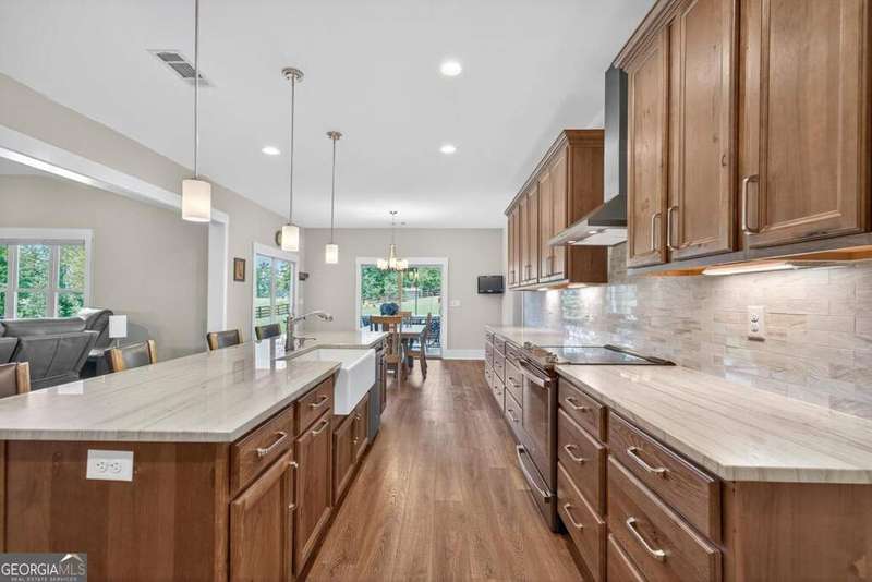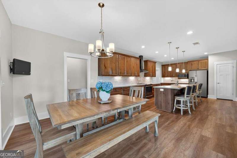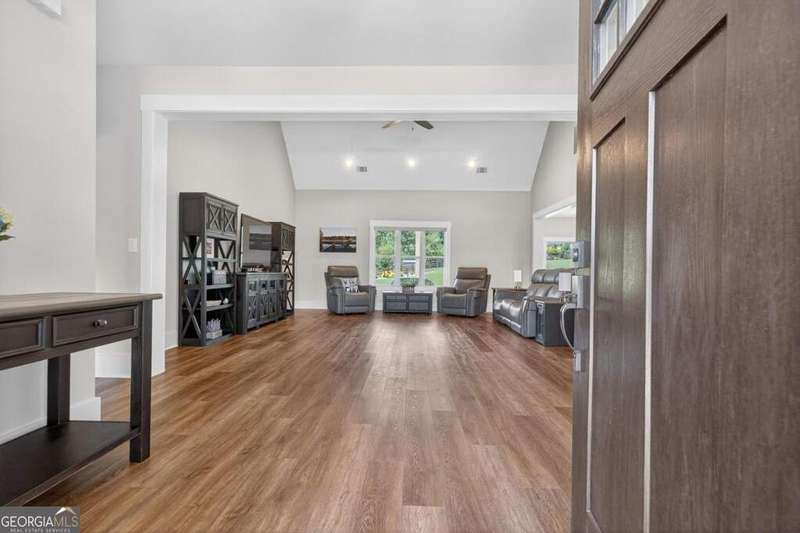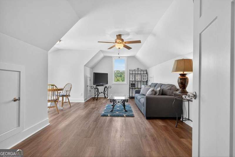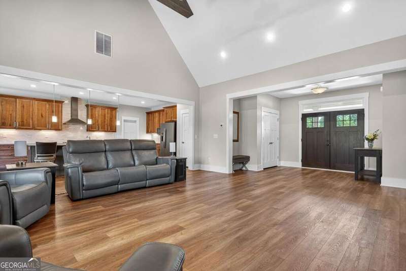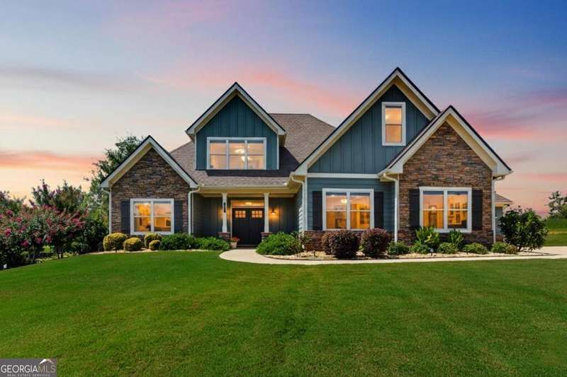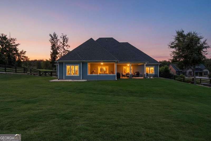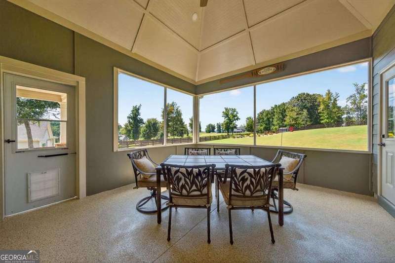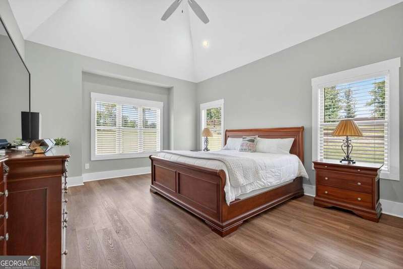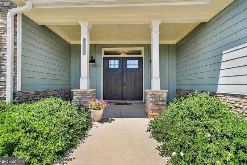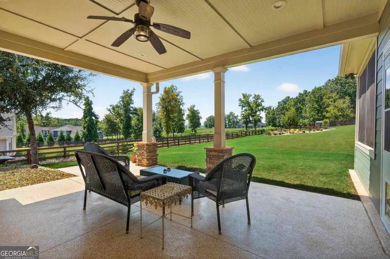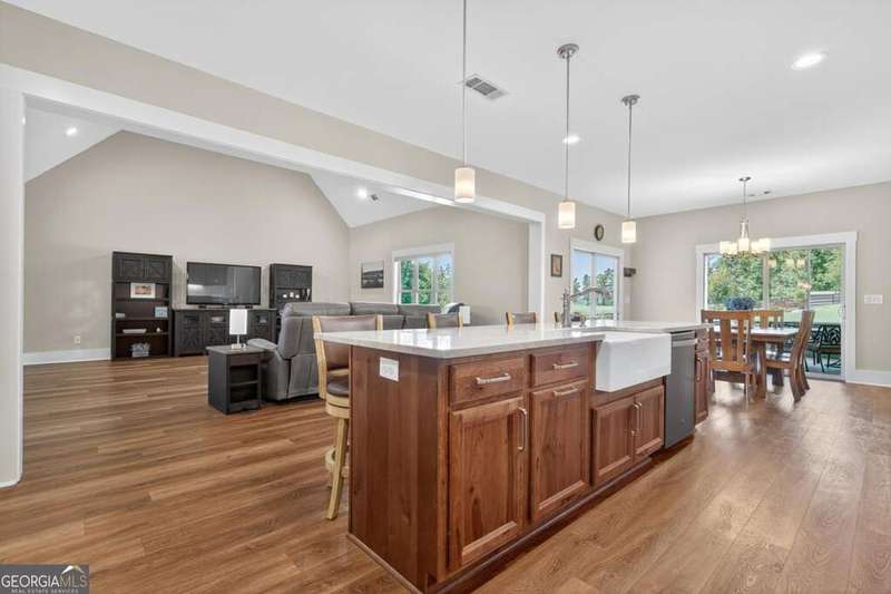 Discover Your Dream Home at Lake Oconee! Experience unparalleled craftsmanship and thoughtful design in this stunning 2021 custom-built home, nestled on a generous 1.23-acre lot within the gated Bayside community. Privately situated yet close to Lake Oconee's vibrant amenities, this residence boasts seasonal lake views and a deeded boat slip, providing a perfect balance of privacy and access to outdoor adventures. Step inside the home to a spacious great room featuring vaulted ceilings adorned with decorative beams and expansive windows that fill the space with natural light. The open-concept layout seamlessly connects the great room to the gourmet kitchen, where a magnificent 10-foot island with a farmhouse sink takes center stage. Rich hickory cabinetry offers ample storage, complemented by elegant quartzite countertops and a vented range hood for functional beauty. A well-appointed walk-in pantry enhances everyday convenience. The main-level primary suite is a serene retreat, complete with vaulted ceilings, direct access to a screened porch, and a generous walk-in closet. The luxurious ensuite bathroom features a large walk-in shower, a stylish quartz-topped double sink vanity, and porcelain tile flooring. Two additional spacious bedrooms and a full bath are also located on the main floor. Ascend to the upper level, where a private suite awaits, offering flexibility for guests or a dedicated workspace. This suite includes a bedroom, full bath, living area, and a kitchenette for added convenience. Additional storage is easily accessible through the walk-in attic. The two-car garage, finished with low-maintenance epoxy flooring, connects to a versatile flex space accessible via carriage doors; ideal for a golf cart, gym equipment, or even a pet-washing station with a utility sink. The fully landscaped yard features a large fenced area, storage shed, and two outdoor living spaces. Enjoy dining al fresco on your screened porch or relaxing with a book or glass of wine on the back patio. Both spaces are great for entertaining! As a Bayside resident, you'll enjoy a maintenance-free deeded boat slip (#14) with new composite decking, access to a private boat ramp, and a lakeside common area complete with a gazebo, fire pit, picnic tables, putting greens, and boat cleaning facilities. This exceptional home is situated just minutes from Lake Oconee Academy, St. Mary's Hospital, and I-20, offering the perfect blend of luxury and low-maintenance lake living.