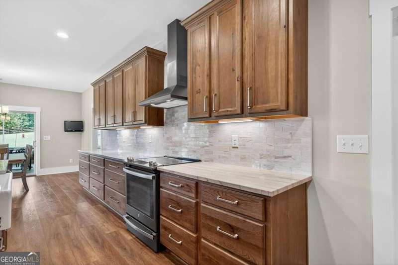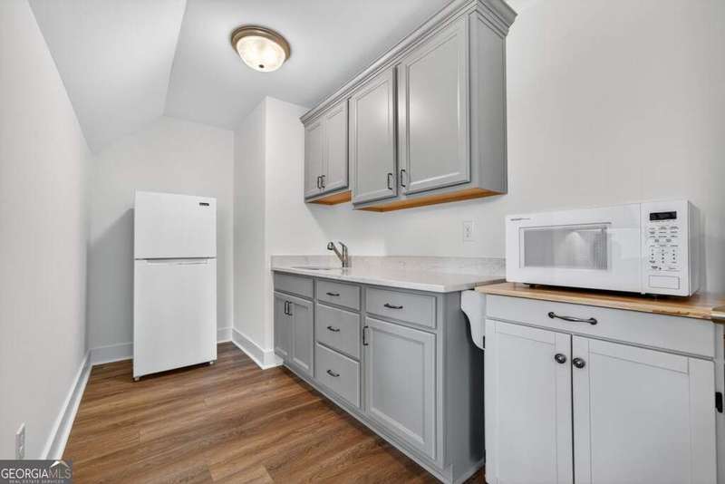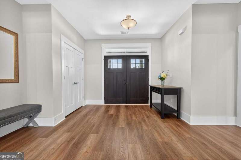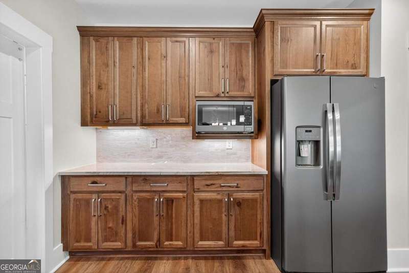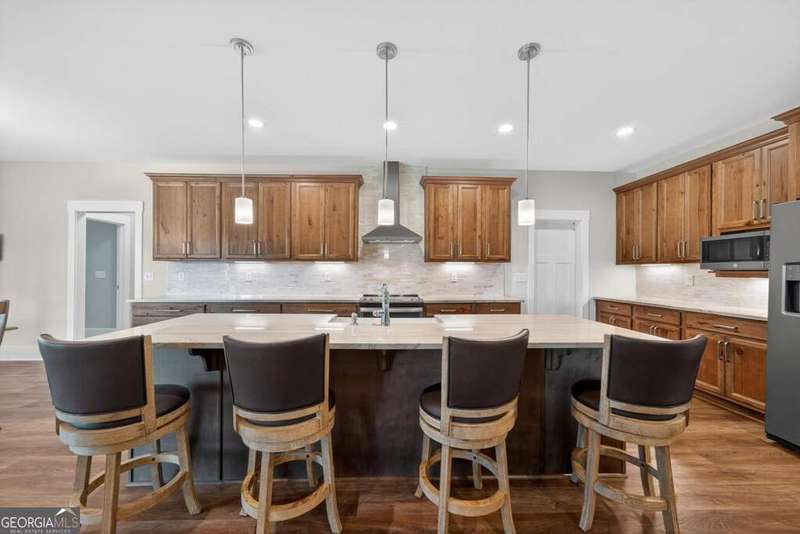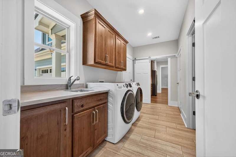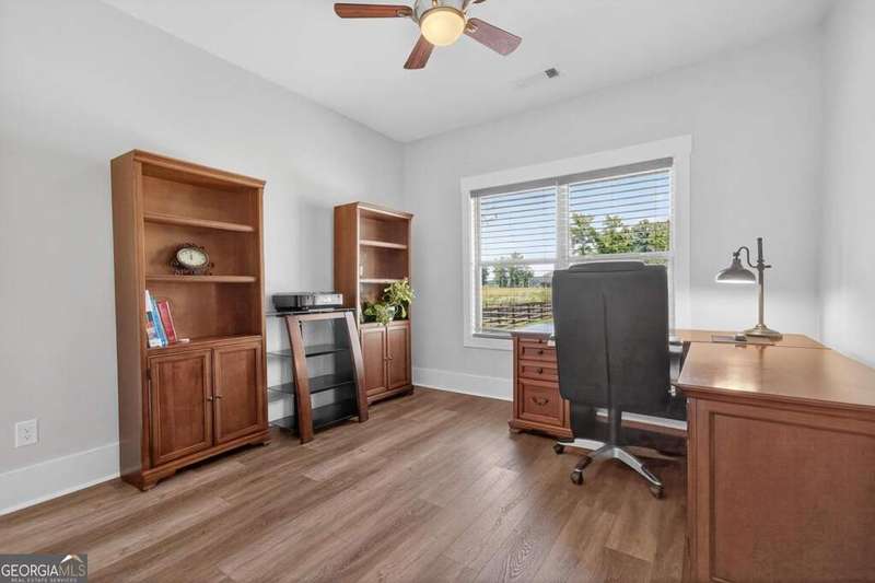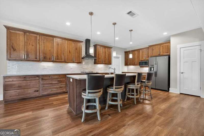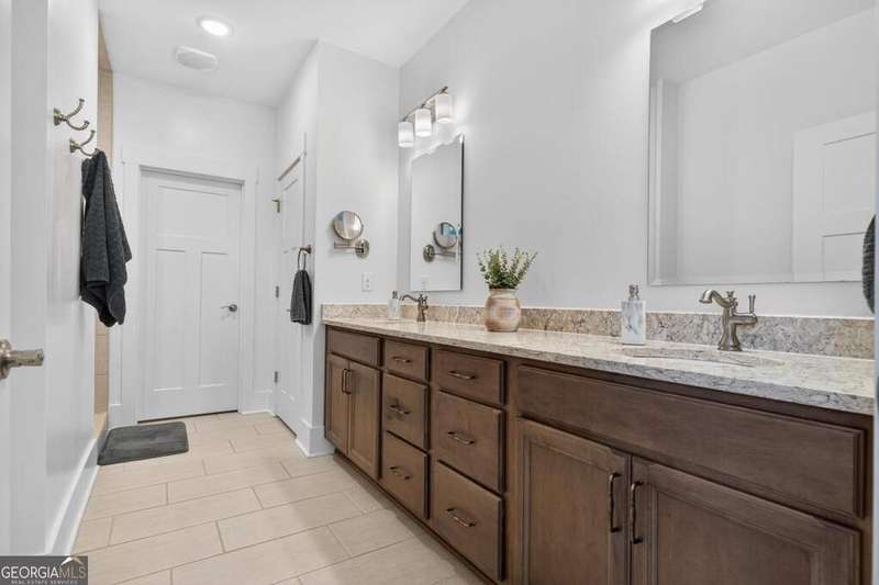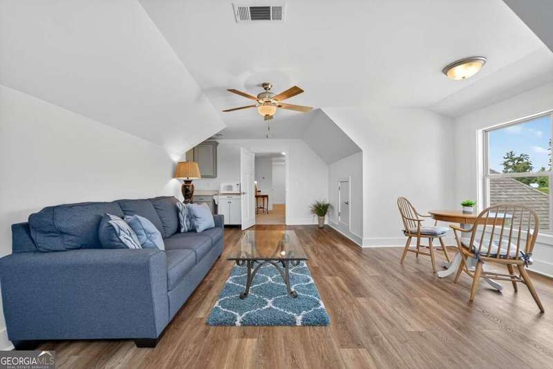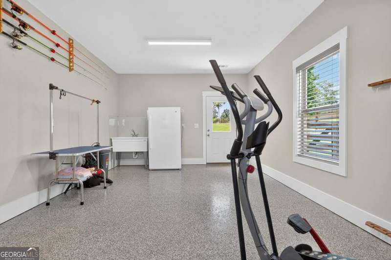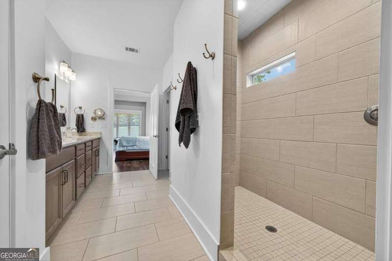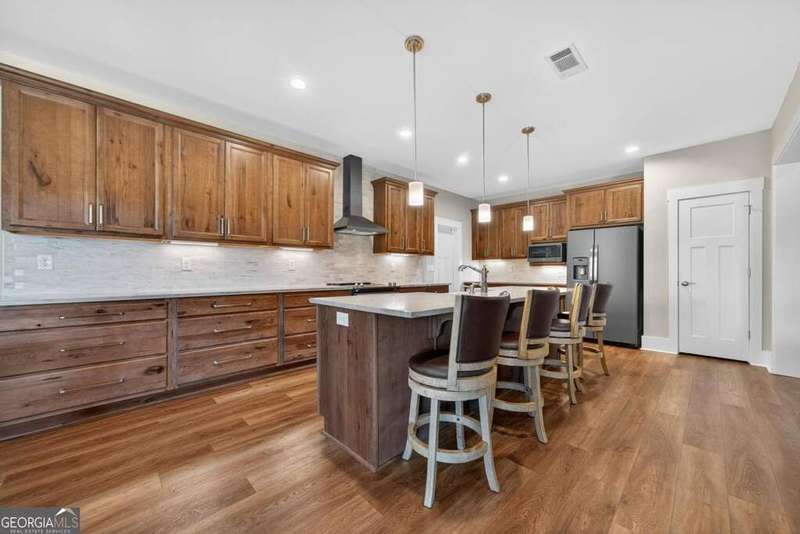 Discover Your Dream Home at Lake Oconee! Experience unparalleled craftsmanship and thoughtful design in this stunning 2021 custom-built home, nestled on a generous 1.23-acre lot within the gated Bayside community. Privately situated yet close to Lake Oconee's vibrant amenities, this residence boasts seasonal lake views and a deeded boat slip, providing a perfect balance of privacy and access to outdoor adventures. Step inside the home to a spacious great room featuring vaulted ceilings adorned with decorative beams and expansive windows that fill the space with natural light. The open-concept layout seamlessly connects the great room to the gourmet kitchen, where a magnificent 10-foot island with a farmhouse sink takes center stage. Rich hickory cabinetry offers ample storage, complemented by elegant quartzite countertops and a vented range hood for functional beauty. A well-appointed walk-in pantry enhances everyday convenience. The main-level primary suite is a serene retreat, complete with vaulted ceilings, direct access to a screened porch, and a generous walk-in closet. The luxurious ensuite bathroom features a large walk-in shower, a stylish quartz-topped double sink vanity, and porcelain tile flooring. Two additional spacious bedrooms and a full bath are also located on the main floor. Ascend to the upper level, where a private suite awaits, offering flexibility for guests or a dedicated workspace. This suite includes a bedroom, full bath, living area, and a kitchenette for added convenience. Additional storage is easily accessible through the walk-in attic. The two-car garage, finished with low-maintenance epoxy flooring, connects to a versatile flex space accessible via carriage doors; ideal for a golf cart, gym equipment, or even a pet-washing station with a utility sink. The fully landscaped yard features a large fenced area, storage shed, and two outdoor living spaces. Enjoy dining al fresco on your screened porch or relaxing with a book or glass of wine on the back patio. Both spaces are great for entertaining! As a Bayside resident, you'll enjoy a maintenance-free deeded boat slip (#14) with new composite decking, access to a private boat ramp, and a lakeside common area complete with a gazebo, fire pit, picnic tables, putting greens, and boat cleaning facilities. This exceptional home is situated just minutes from Lake Oconee Academy, St. Mary's Hospital, and I-20, offering the perfect blend of luxury and low-maintenance lake living.