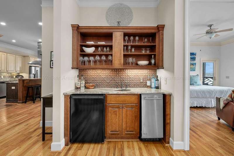 Welcome to The Preserve! Zero steps to your boat dock on a large no-wake slough provides huge water views. Custom built Southern Living home boasts 5000 sf with 6 beds and 4.5 baths. Stunning gourmet kitchen, two primary bedrooms and baths along with two more sizeable bedrooms and a hall bath on the main level. An inviting deck with screen porches at each end provide the ultimate in lake life.