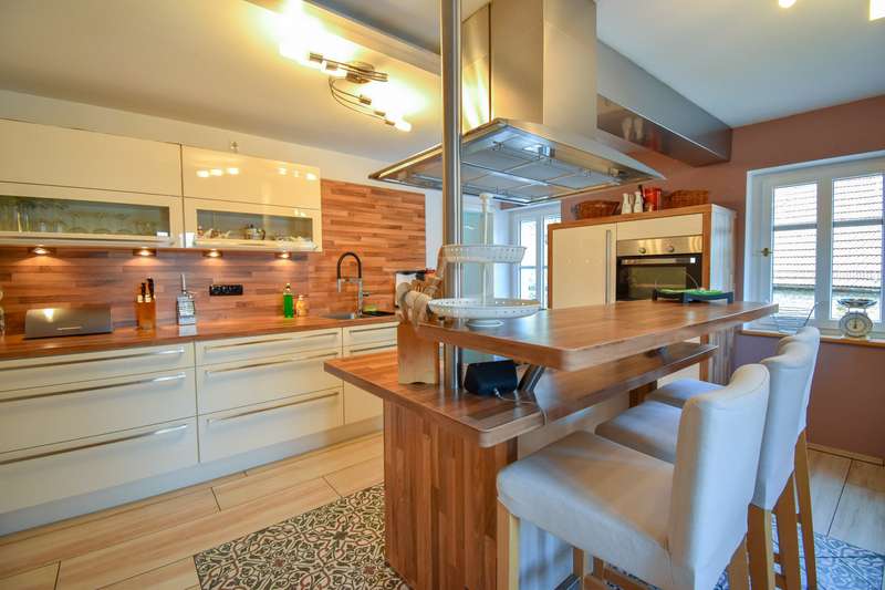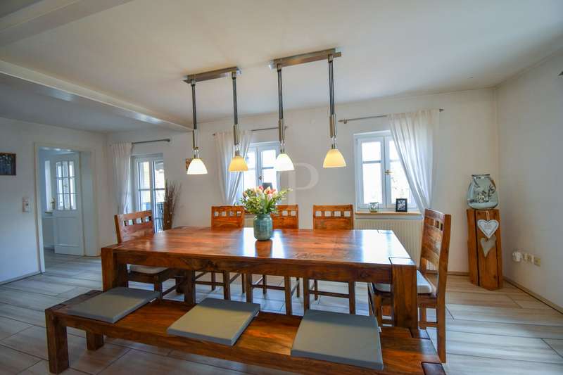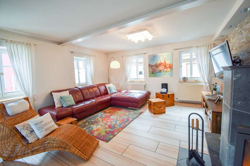 Charming detached house with granny apartment in Obernbreit - stylishly renovated with old building flair In a quiet location in Obernbreit, this lovingly renovated detached house with granny apartment awaits you with its special old building charm and high-quality furnishings. With around 211 square meters of living space, the house offers generous space for families, couples or even use as a multi-generational home. The plot covers around 178 square meters and is easy to maintain. The original year of construction of the house is not known, but the property was extensively renovated and then further modernized by the owner. A new gas heating system was installed in 2021. In 2022, the windows were replaced and the floors were renovated. The bathrooms are particularly stylish - including the guest WC, which was extensively renovated in 2023 with great attention to detail. The open-plan living and dining area with fireplace forms the heart of the house. The combination of historical flair, modern elements and high-quality materials creates an inviting atmosphere with a special feeling of living. Thanks to the careful refurbishment, no further renovations are required - the house is ready for immediate occupancy. A special highlight is the separate granny apartment with its own entrance. It has one bedroom, a bathroom with shower and a practical kitchenette. This makes it ideal for guests, older family members or for renting out. Unique opportunity This property combines history, quality and comfort - a feel-good home with a special charm. See for yourself during a viewing on site.