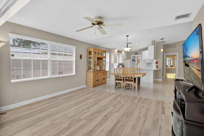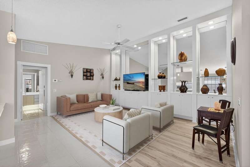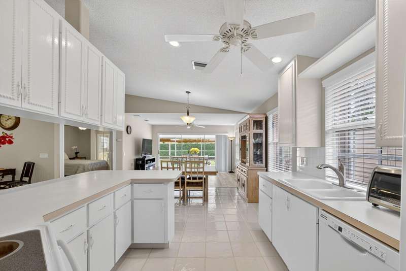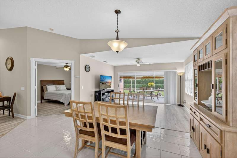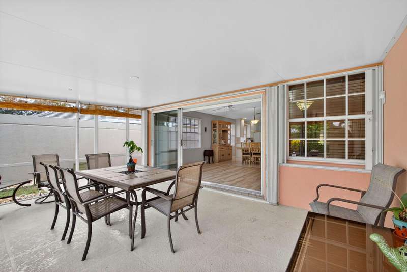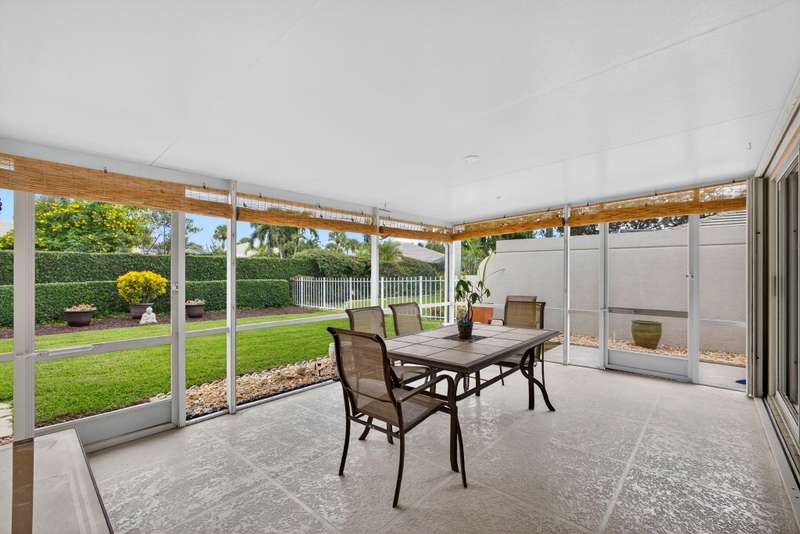 Immaculate & Spacious Extended Capri Model Home Featuring 2 Bedrooms, 2 Baths, and a 2-Car Garage. This Light-Filled Residence Offers a Desirable Split Floor Plan and an Inviting Oversized Screened-In Patio Overlooking a Beautifully Manicured Backyard Perfect for Relaxation or Entertaining. Recent Upgrades Include Complete Replacement of All Polybutylene Pipes (2024), a New AC System with Dual UV Lights (2025) Relocated to the Garage & All New Duct work (2024) & Insulation (2025) New Luxury Vinyl Flooring (2025), and a New Water Heater (2024). Located very close to Pool, Tennis and Pickleball Courts. Truly Move-In Ready with Modern Comfort and Peace of Mind! Close to Dining, Shopping, Golf, Beaches and PBI Airport.